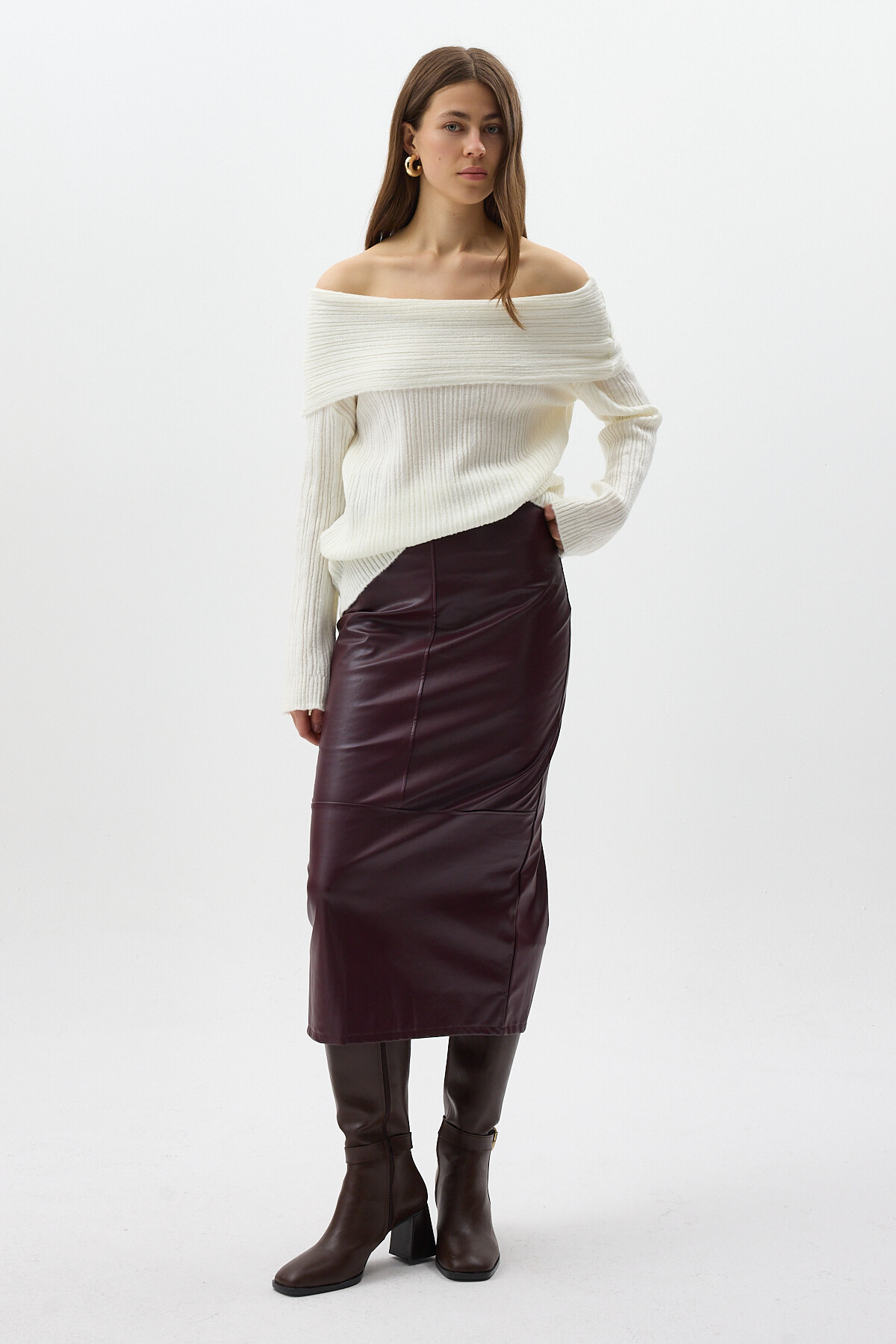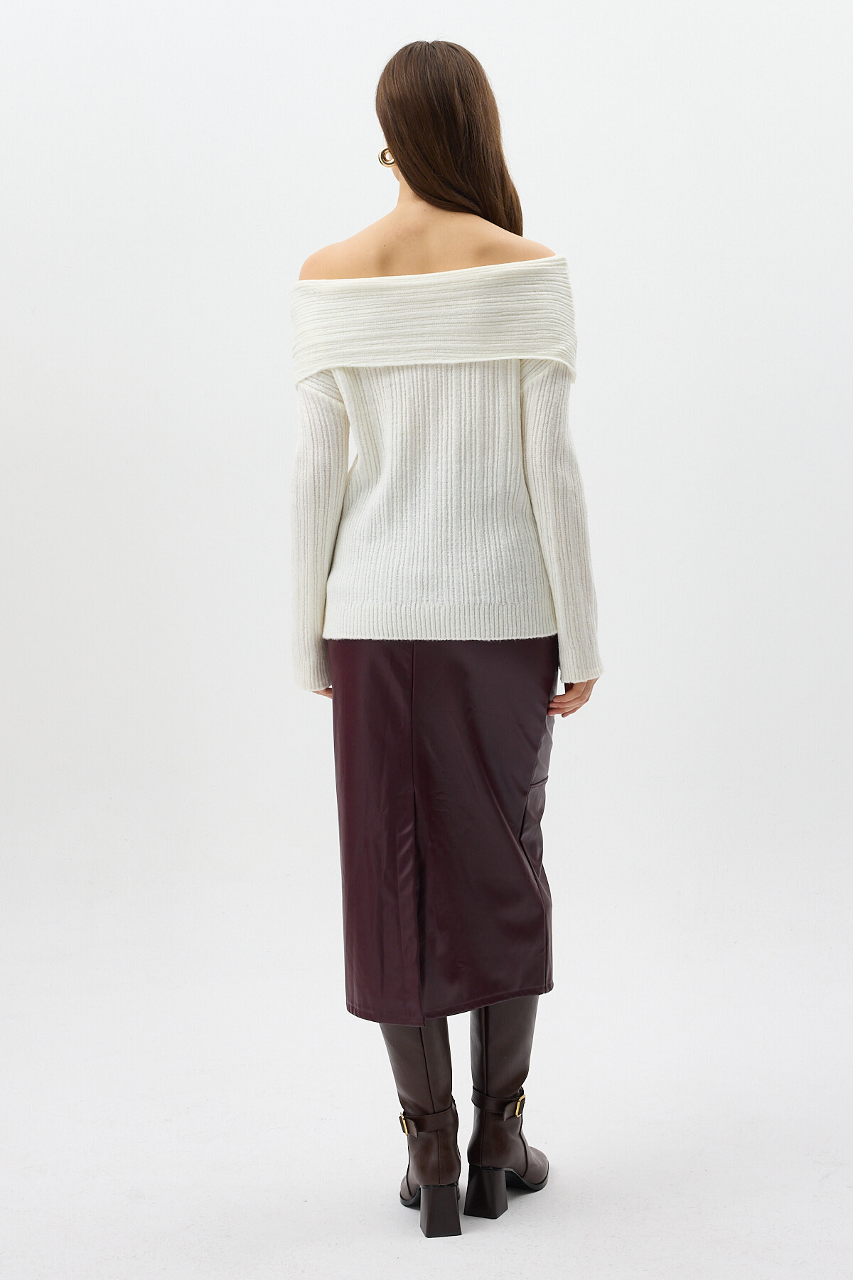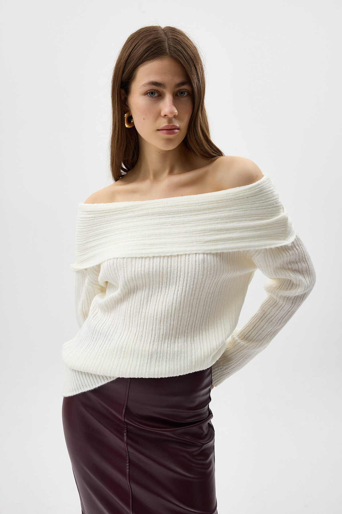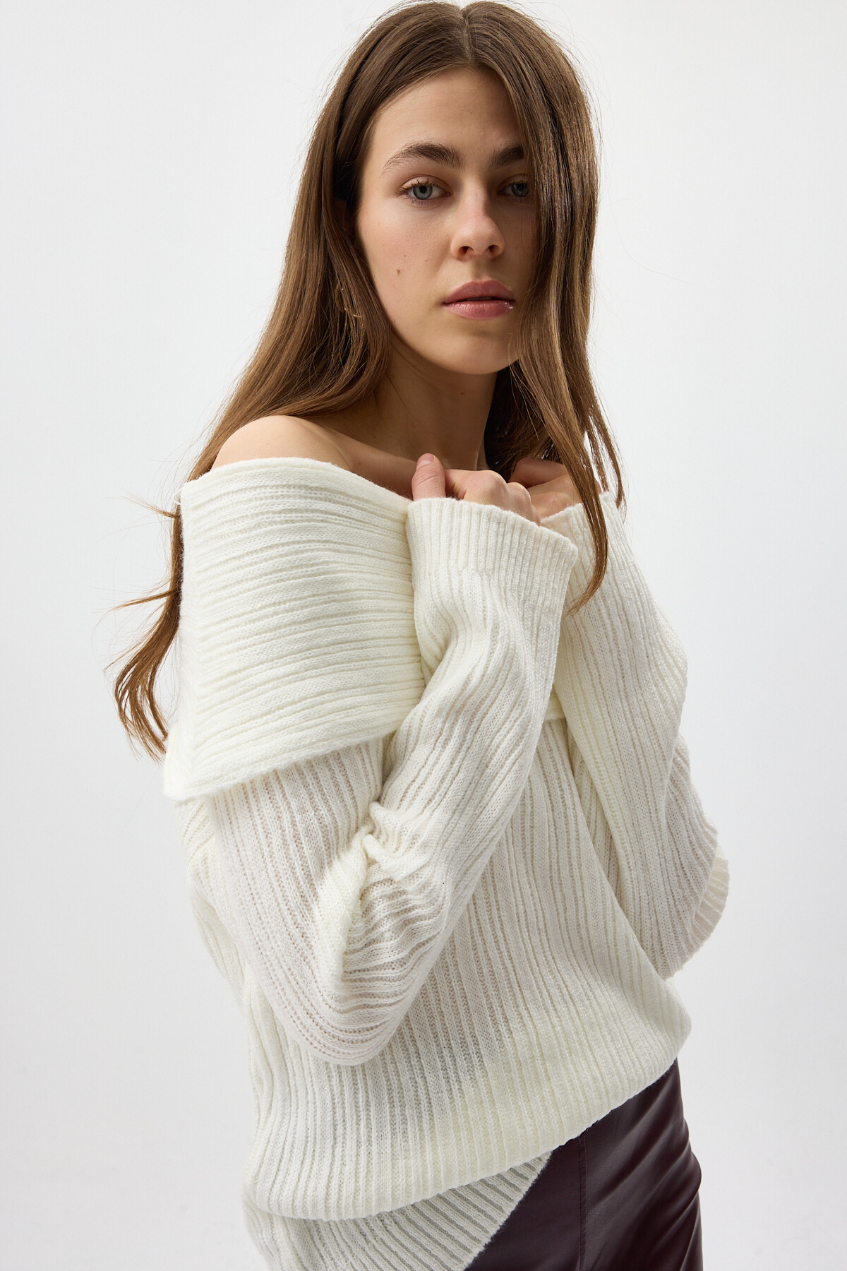 Ekru Fitilli Kayık Yaka Kadın Kazak 2324