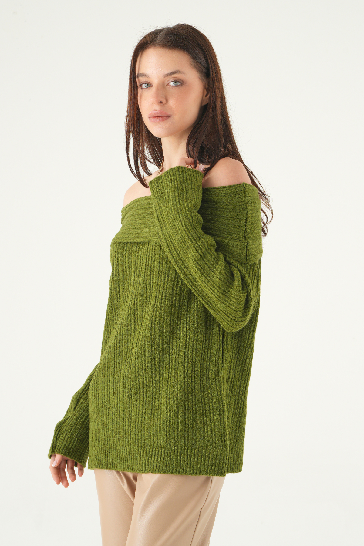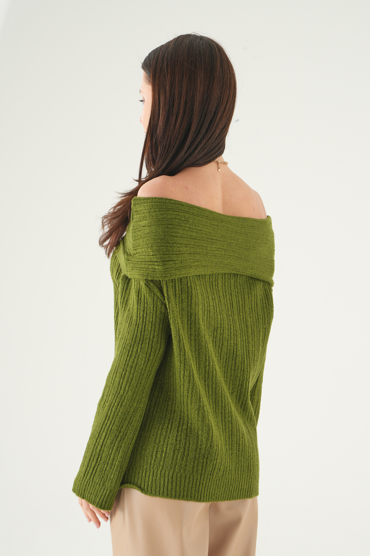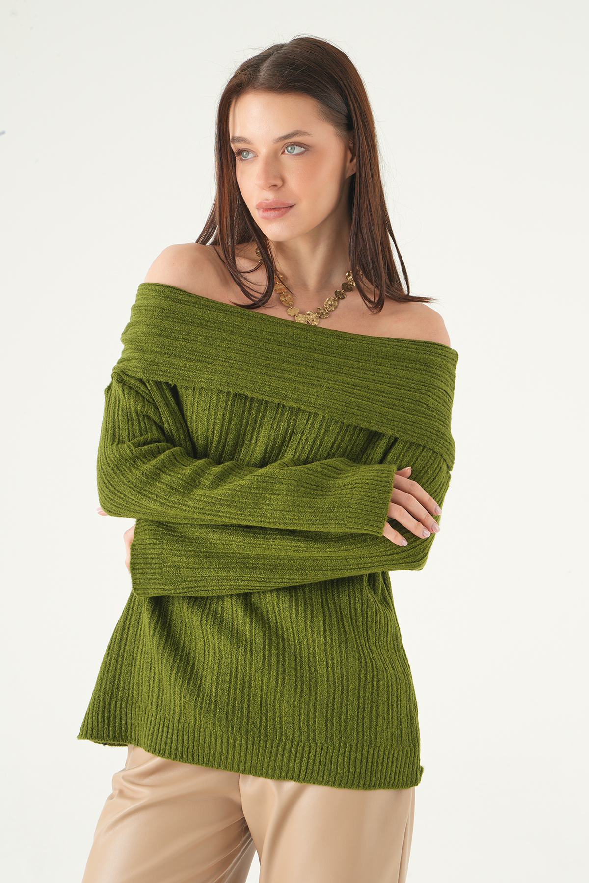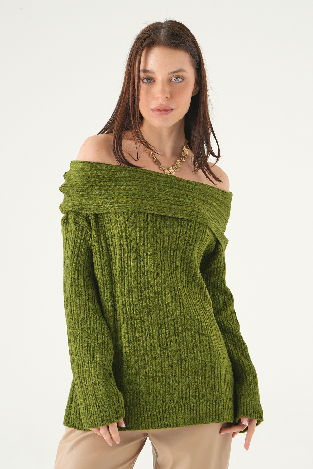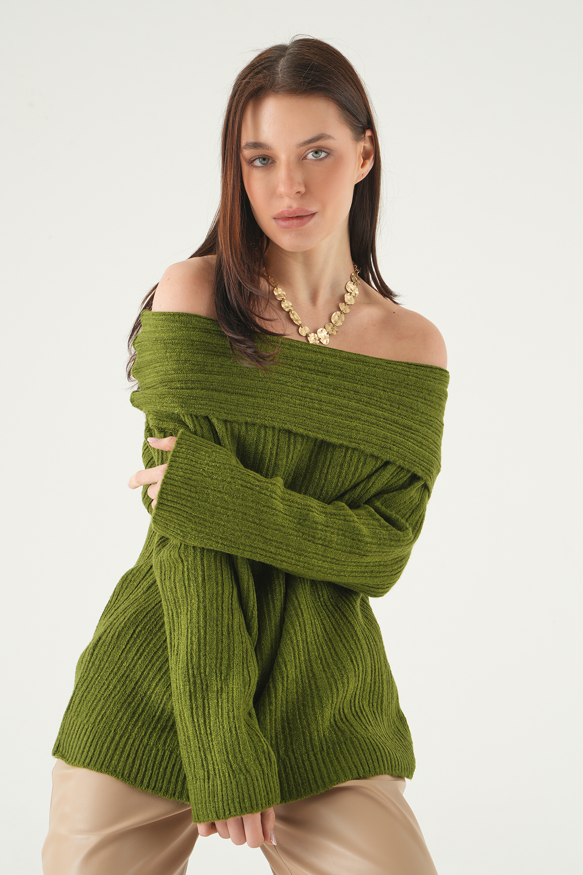 Haki Kayık Yaka Uzun Kol Kazak 2324