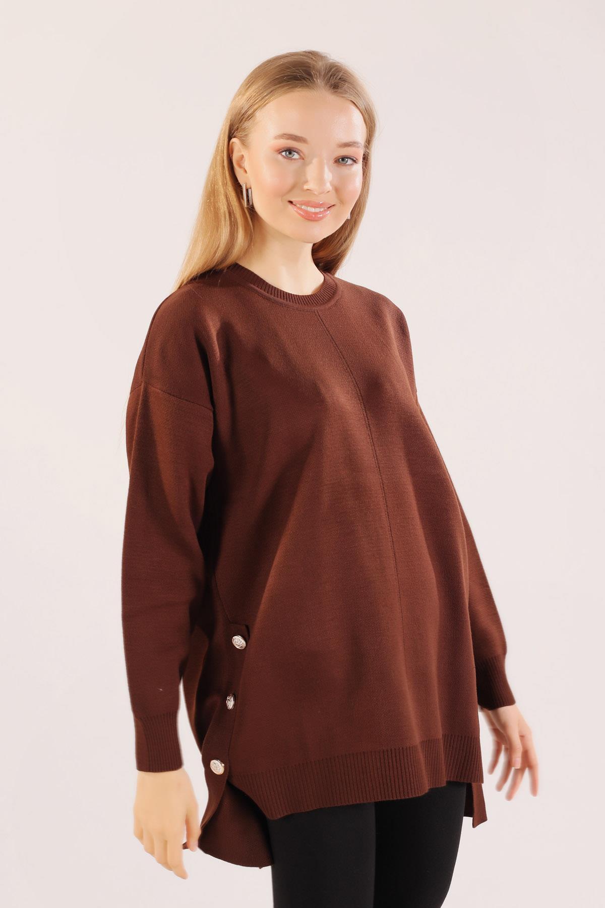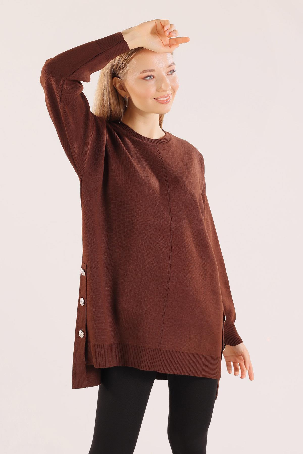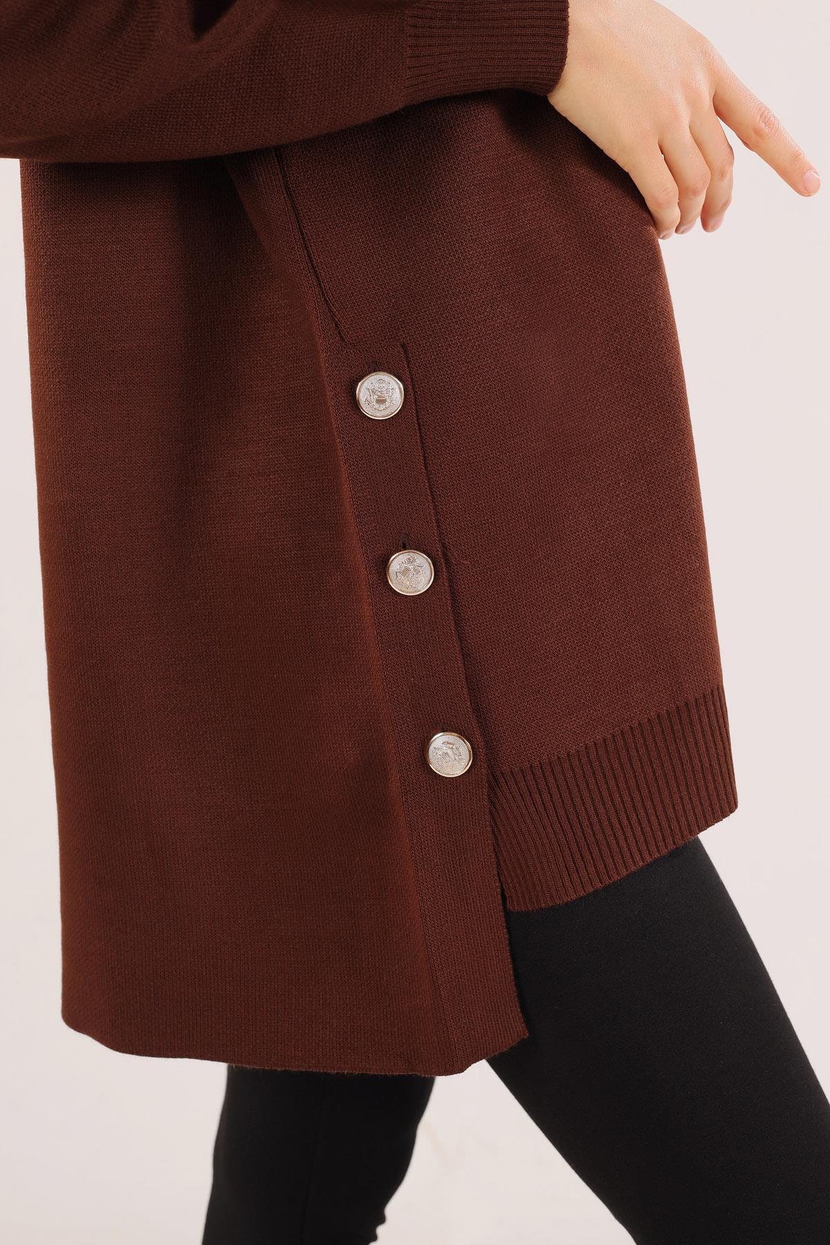 Acı Kahve Etek Düğme Detay Kazak 23247
