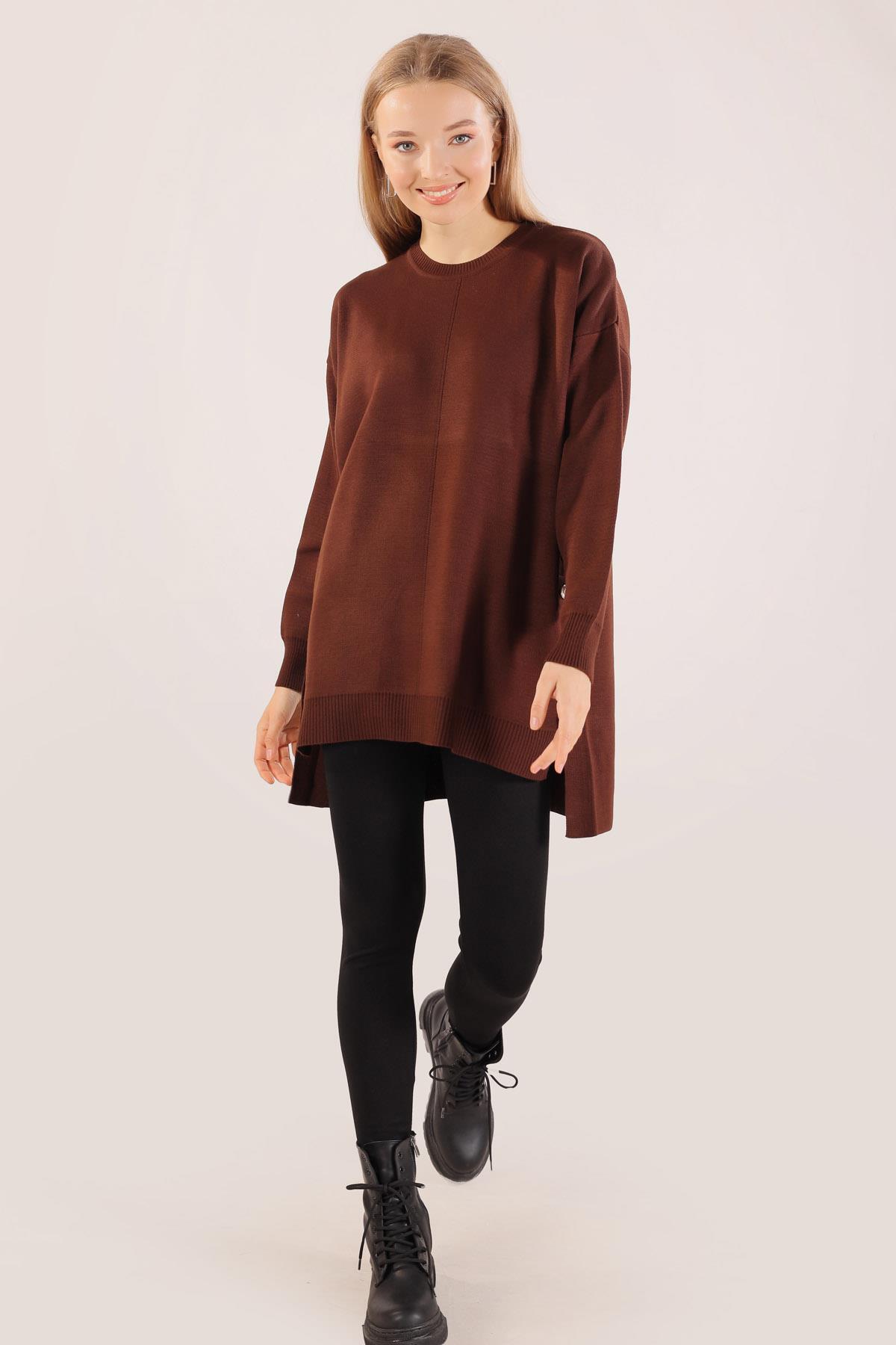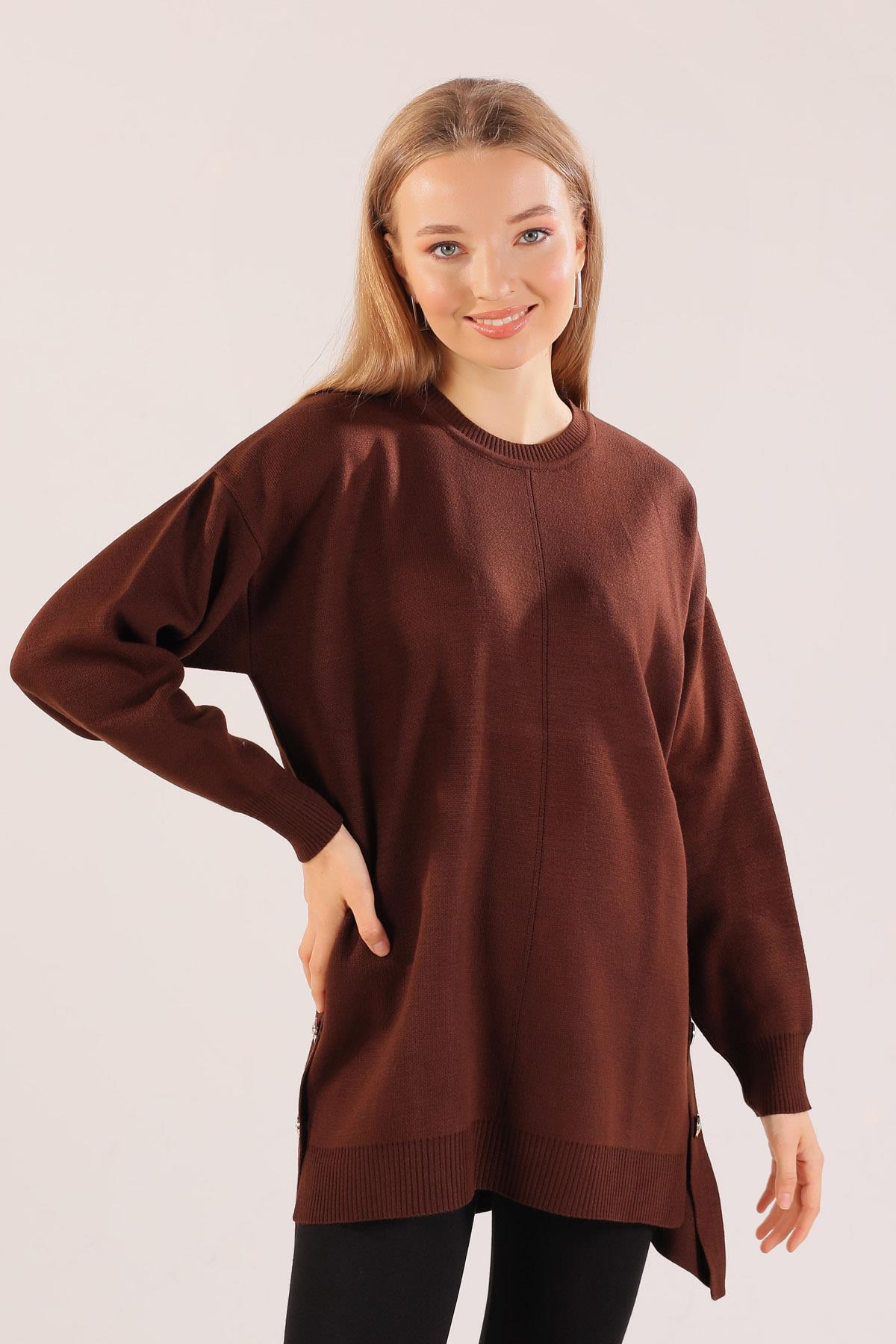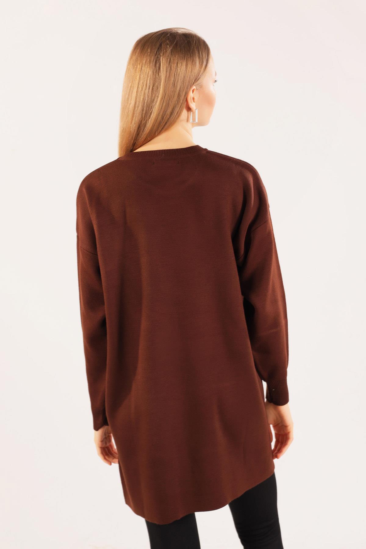 Acı Kahve Etek Düğme Detay Kazak 23247