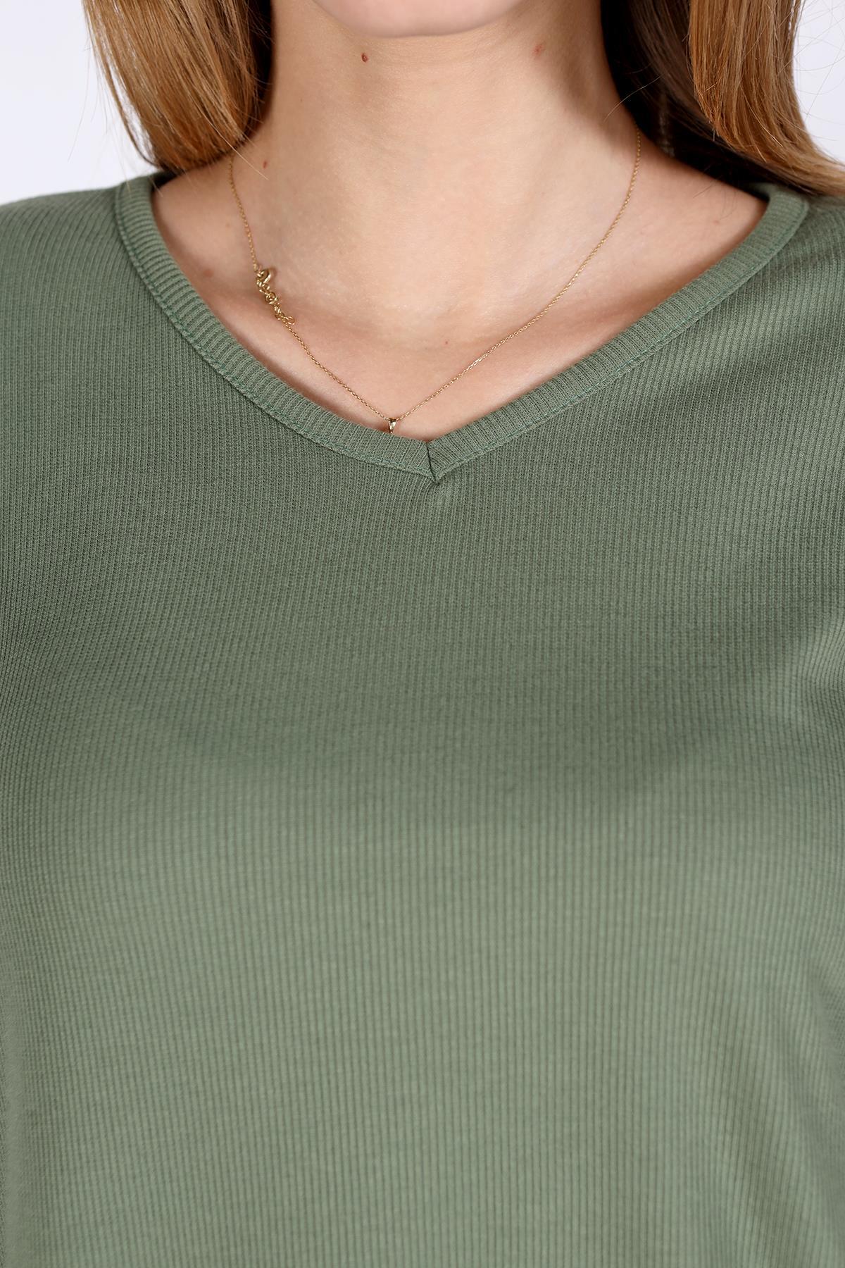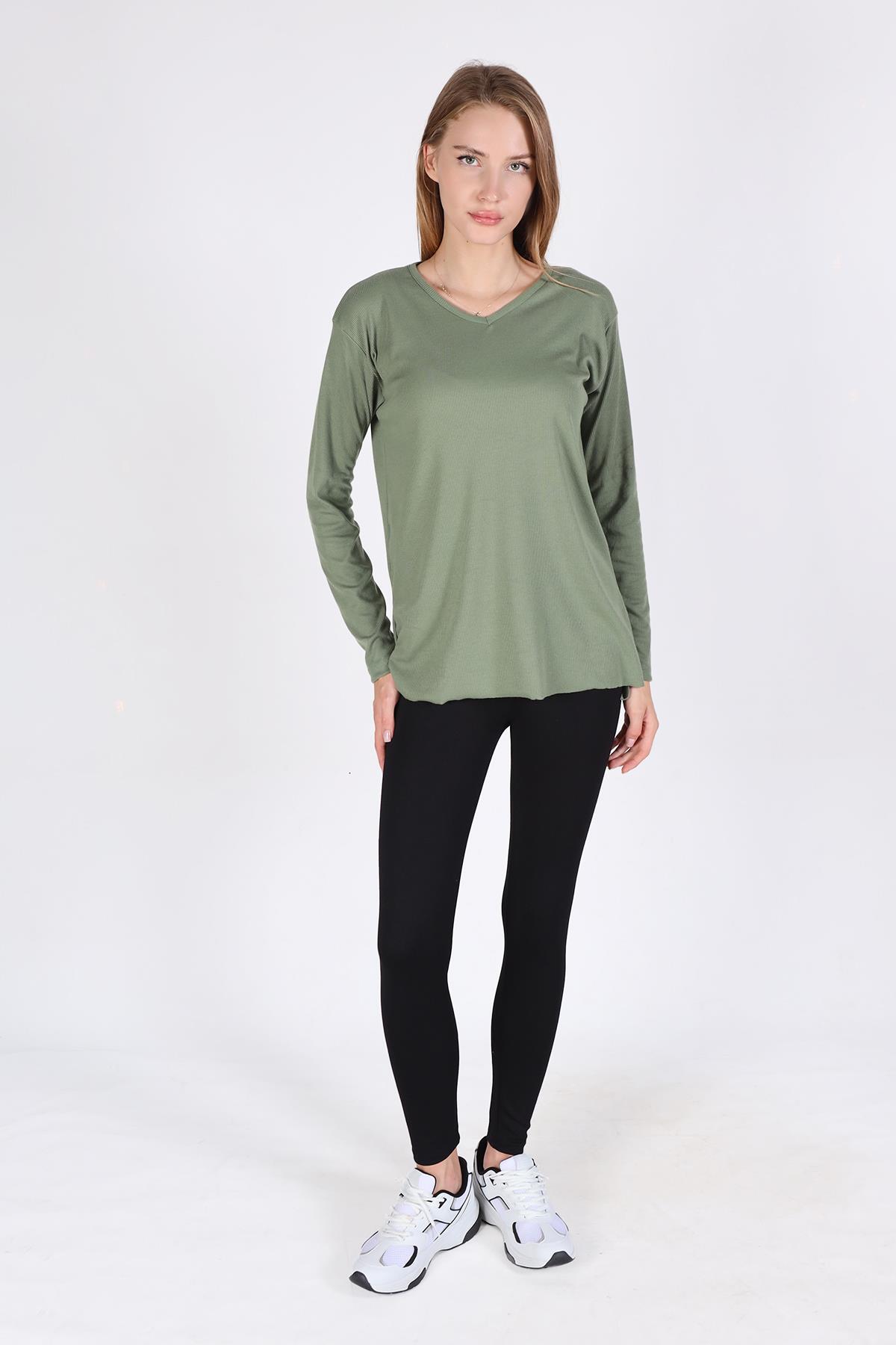 Haki V Yaka Uzun Kol Kaşkorse Tunik 2325