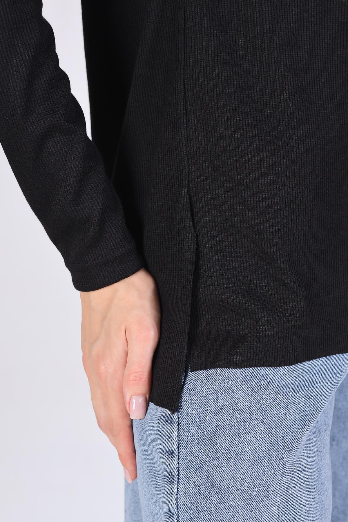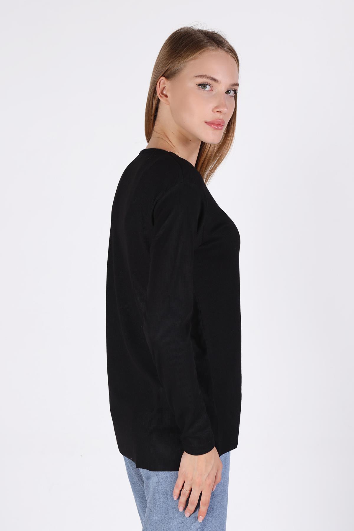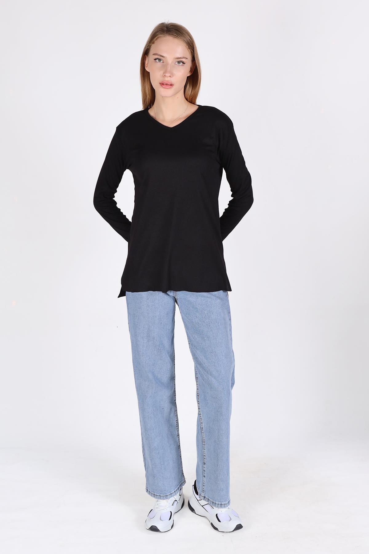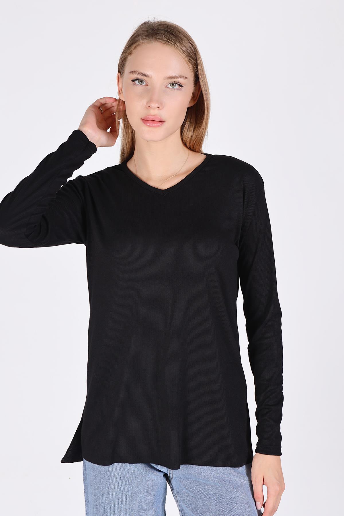 Siyah V Yaka Uzun Kol Kaşkorse Tunik 2325