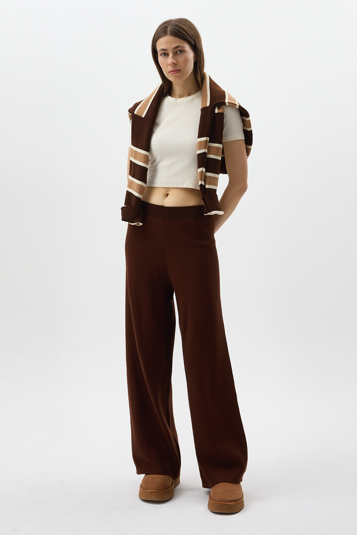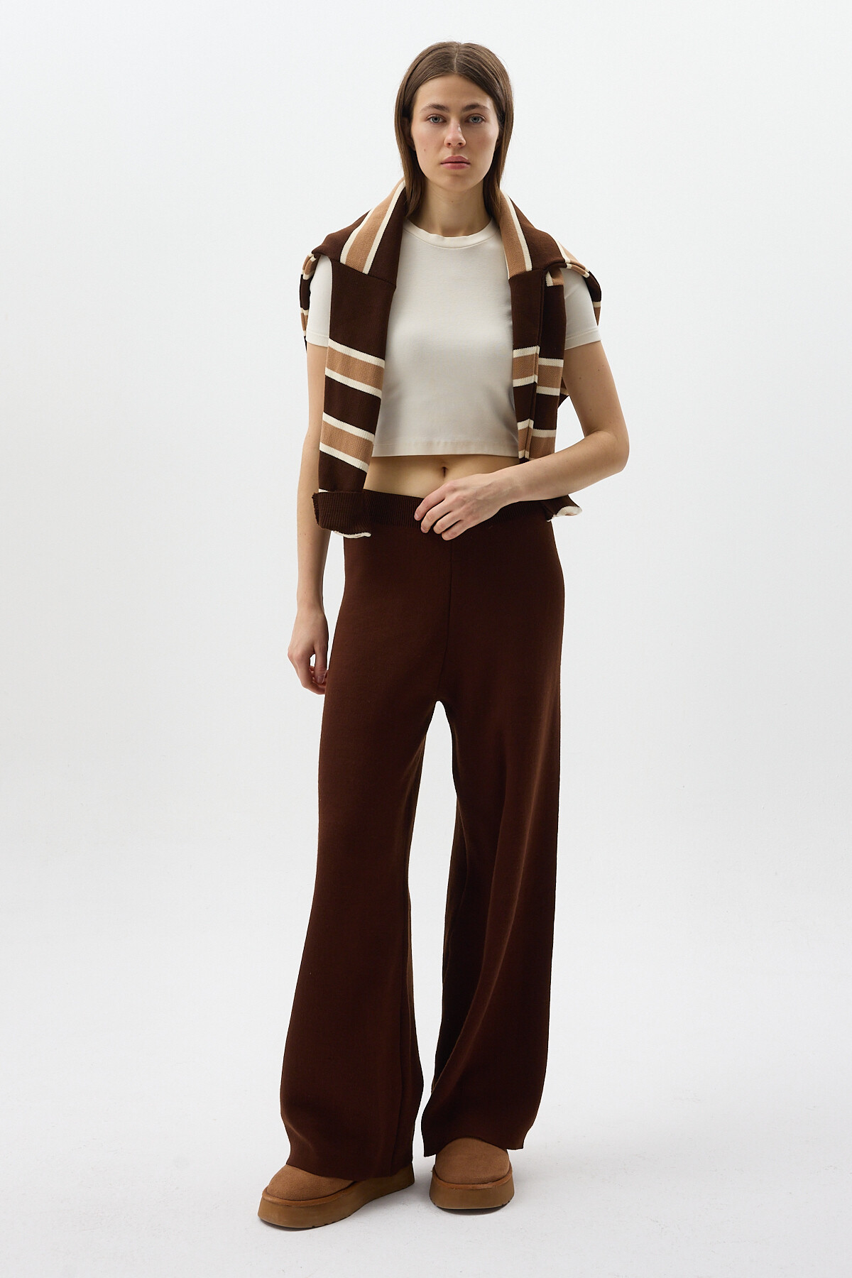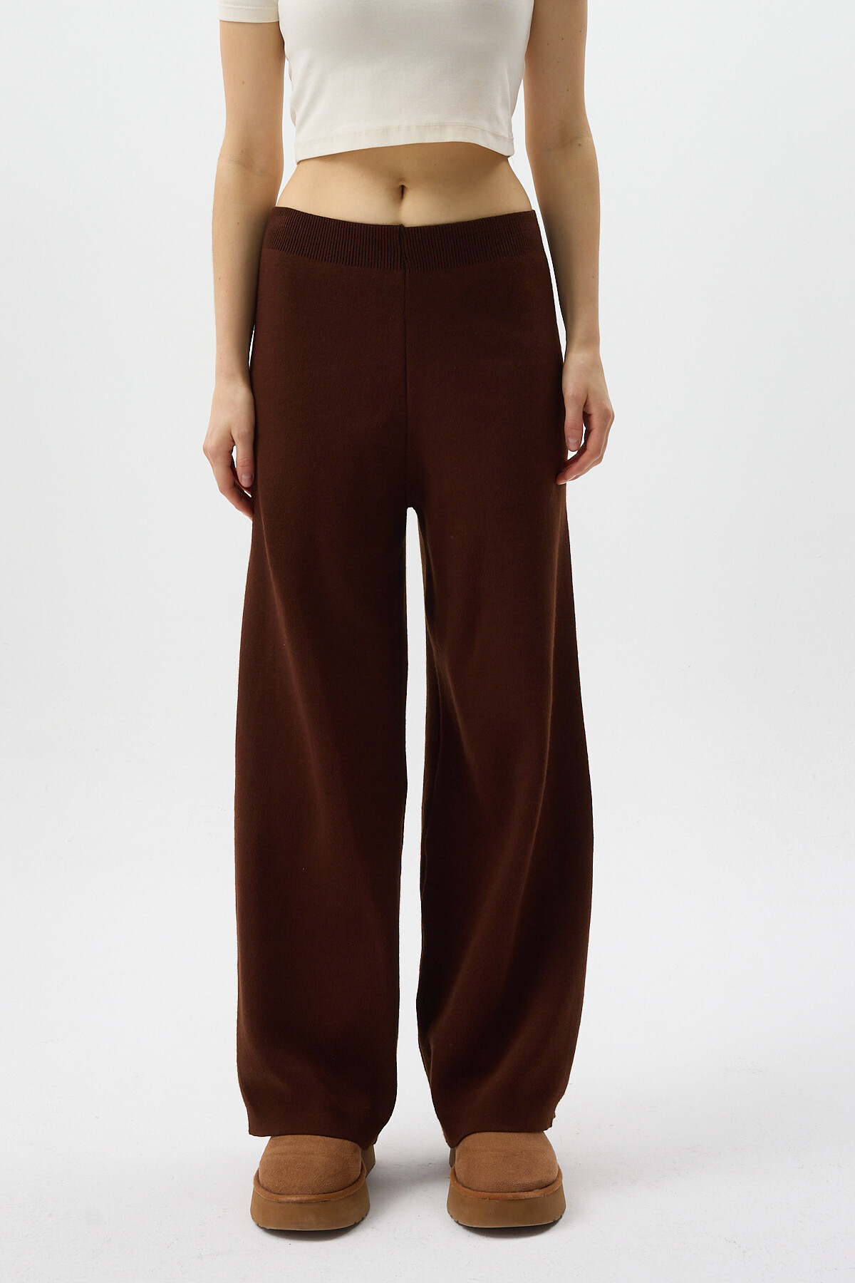 Acı Kahve Geniş Paça Triko Kadın Pantolon 23274