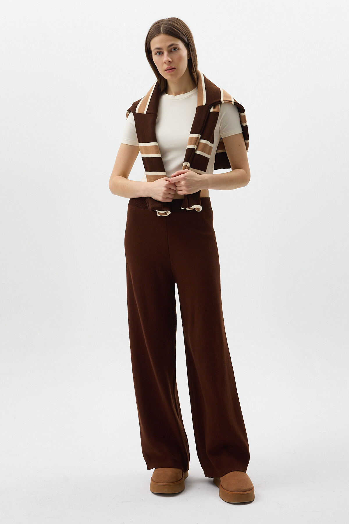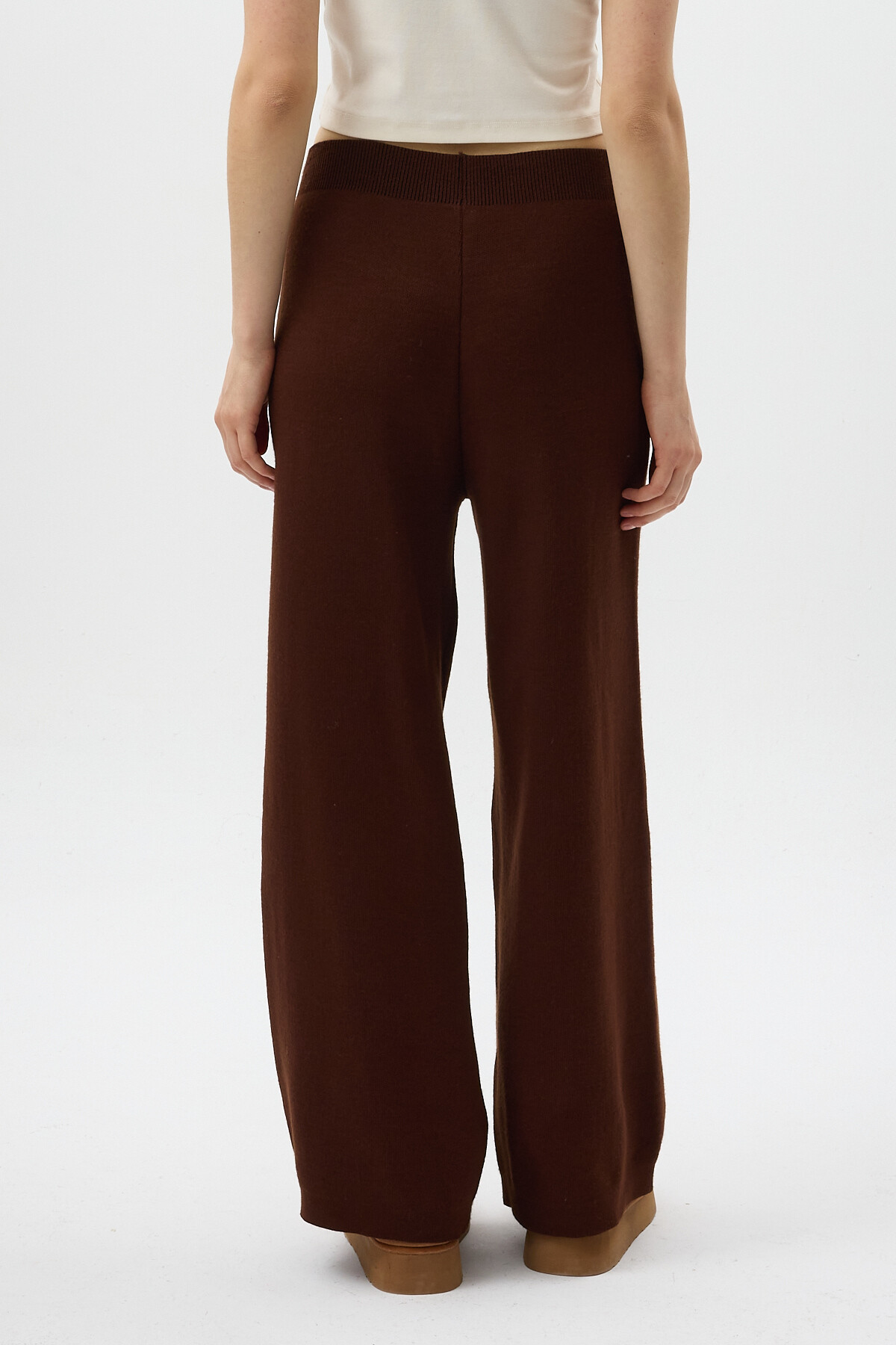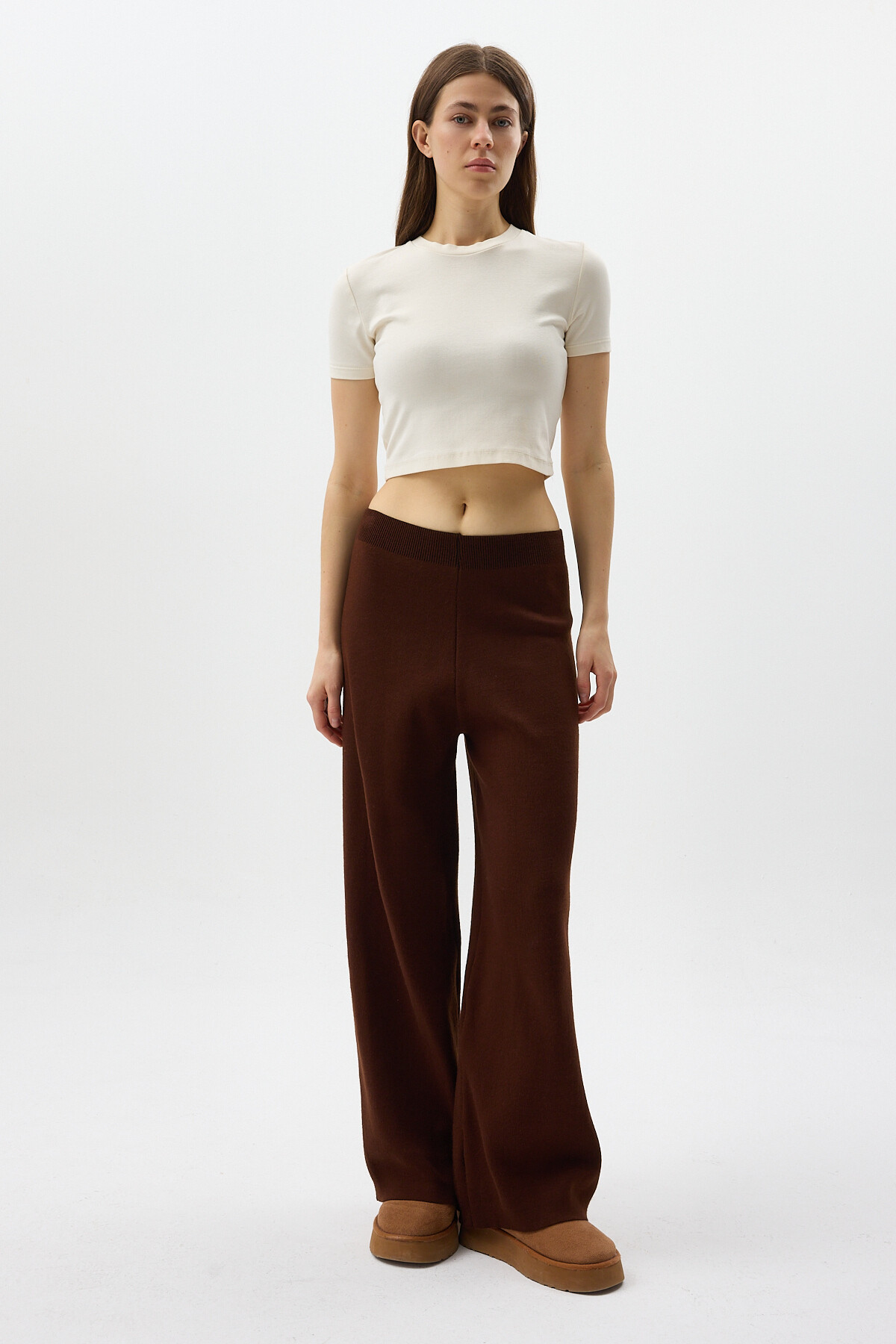 Acı Kahve Geniş Paça Triko Kadın Pantolon 23274
