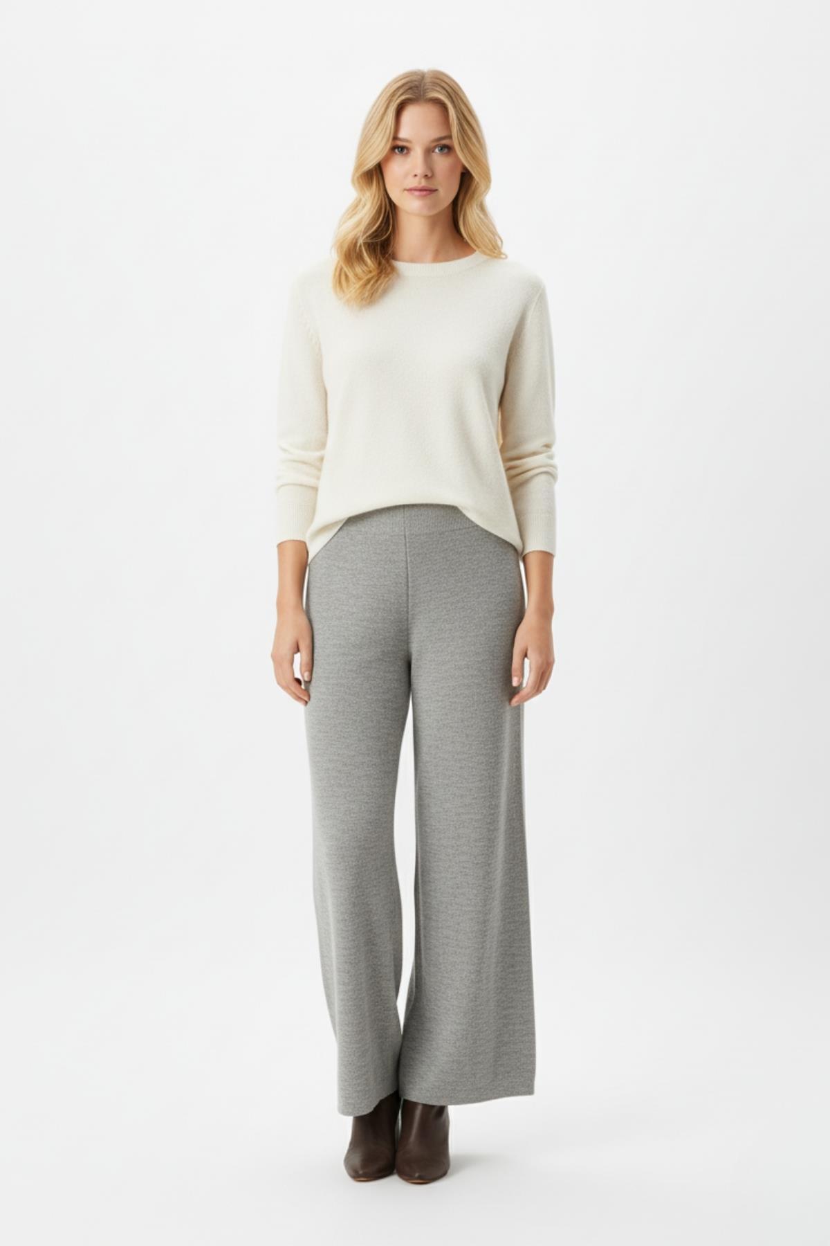 23274 Geniş Paça Triko Pantolon Koyu Bej
