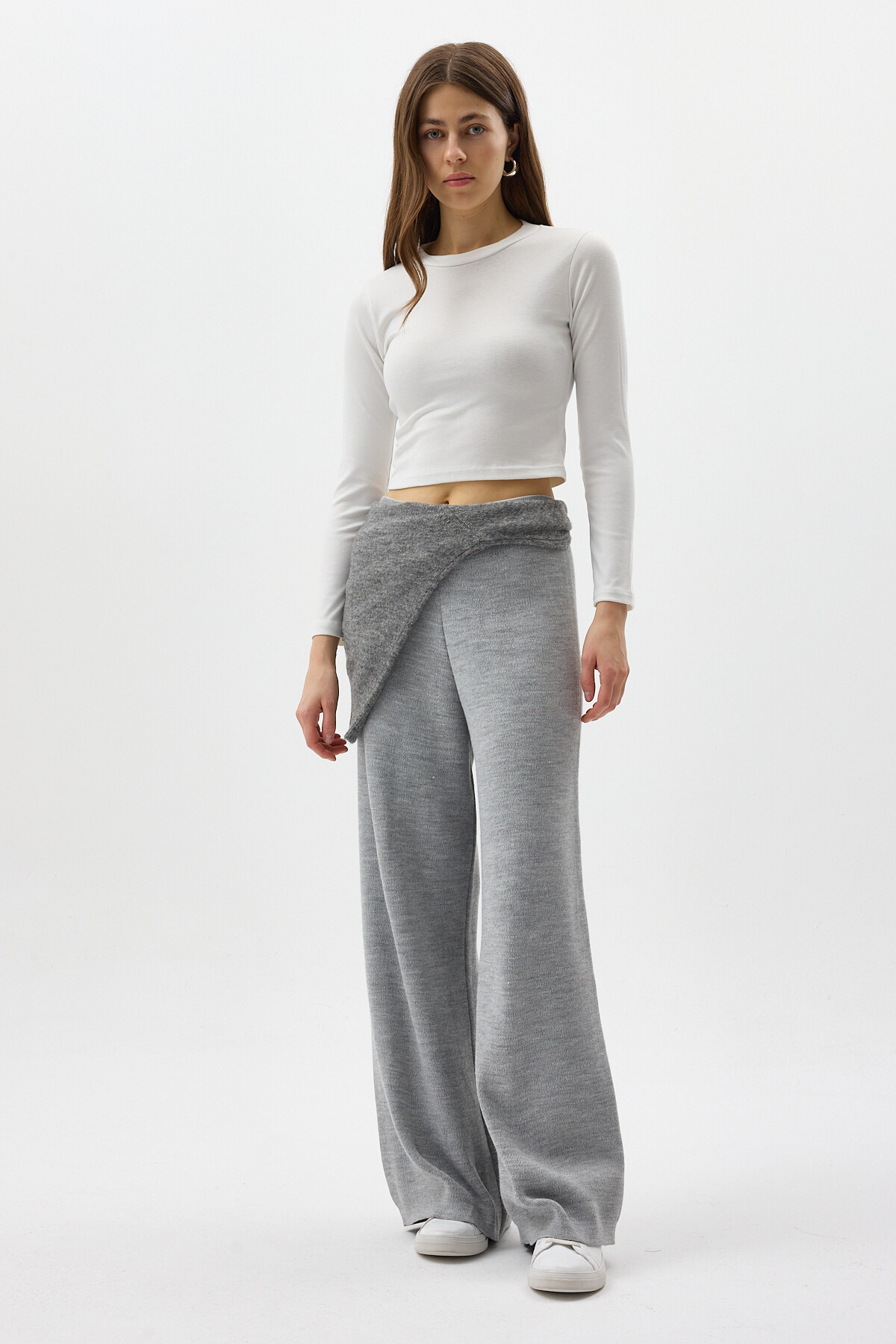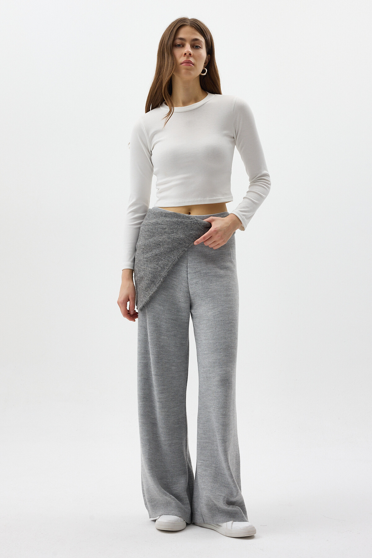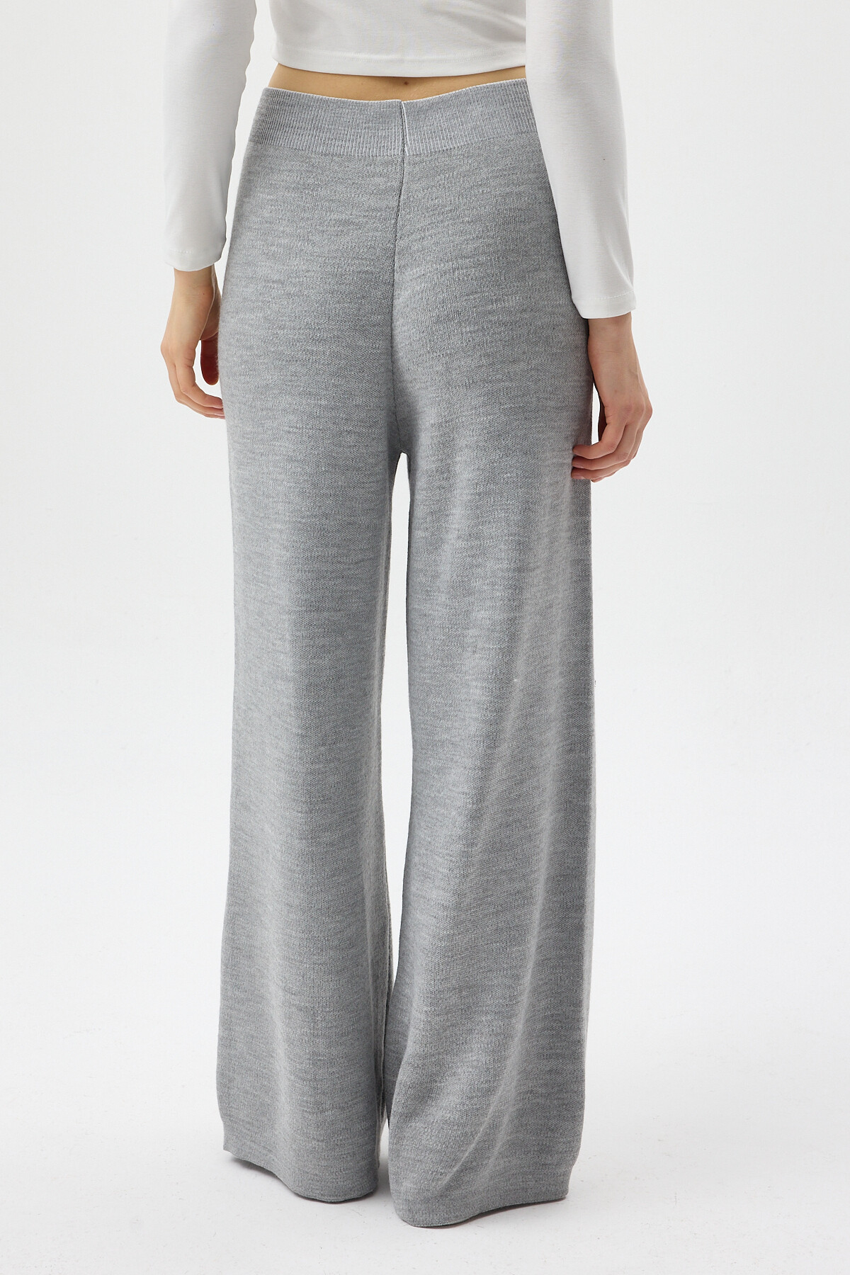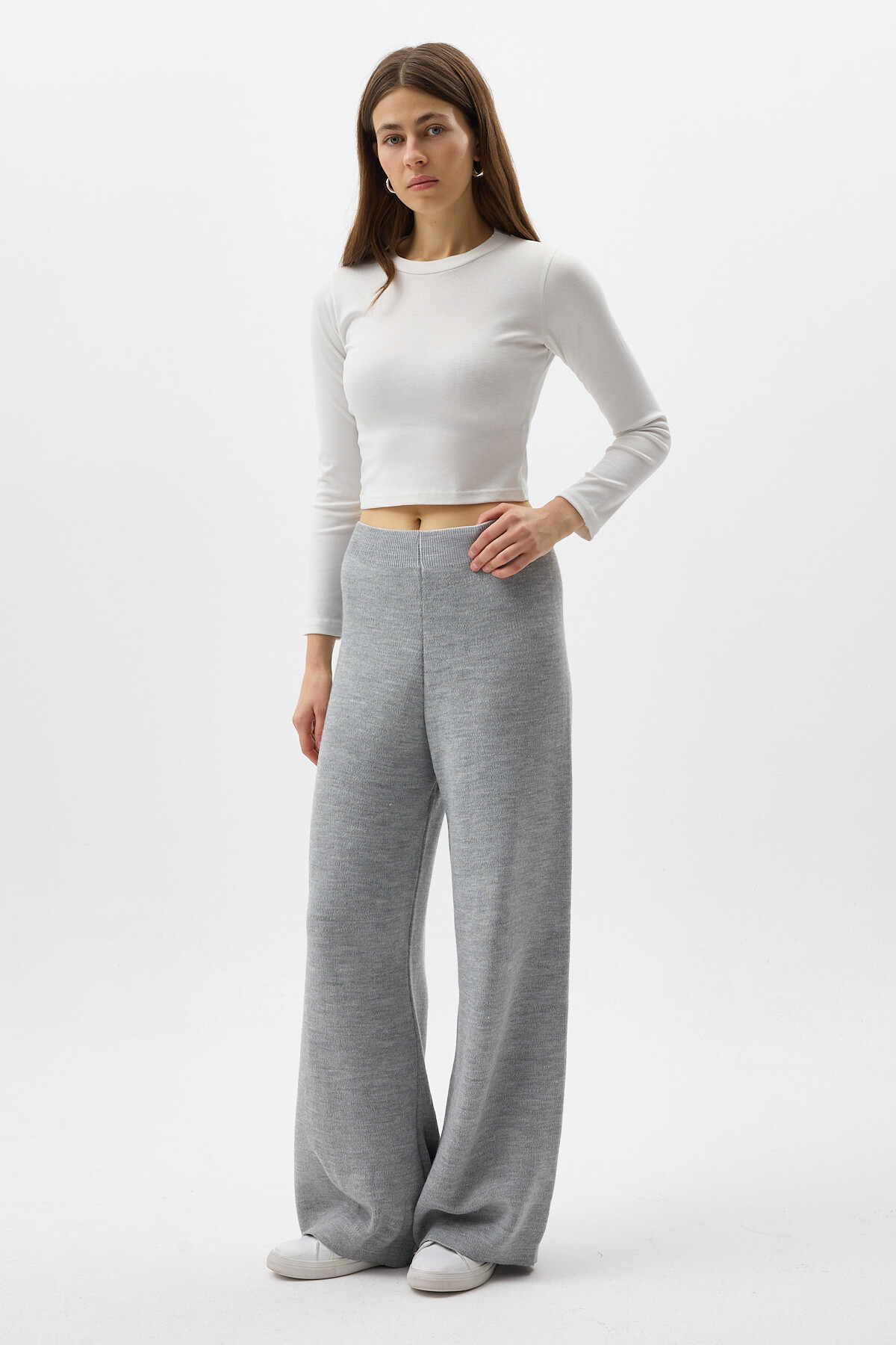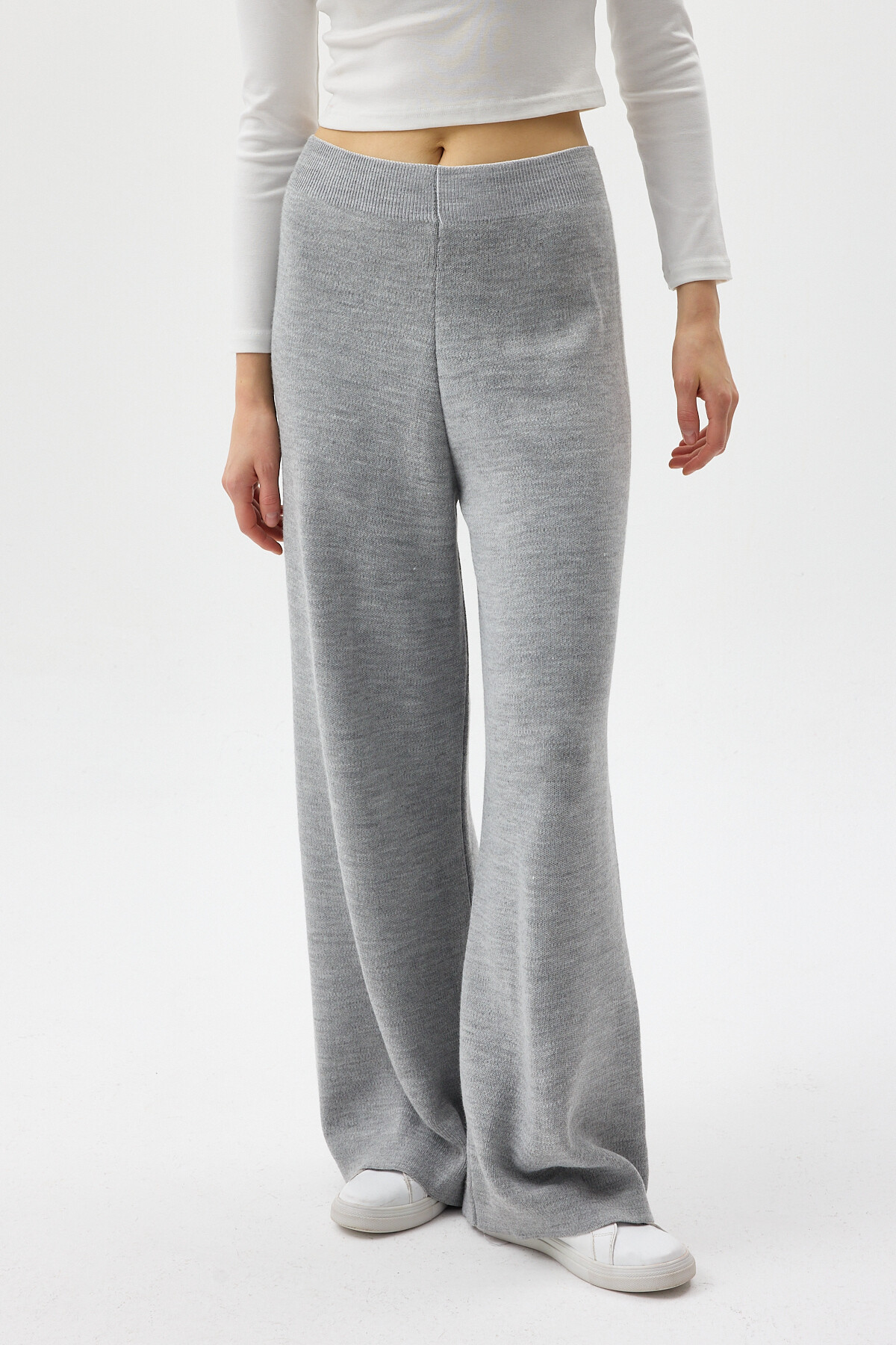 Gri Geniş Paça Triko Kadın Pantolon 23274