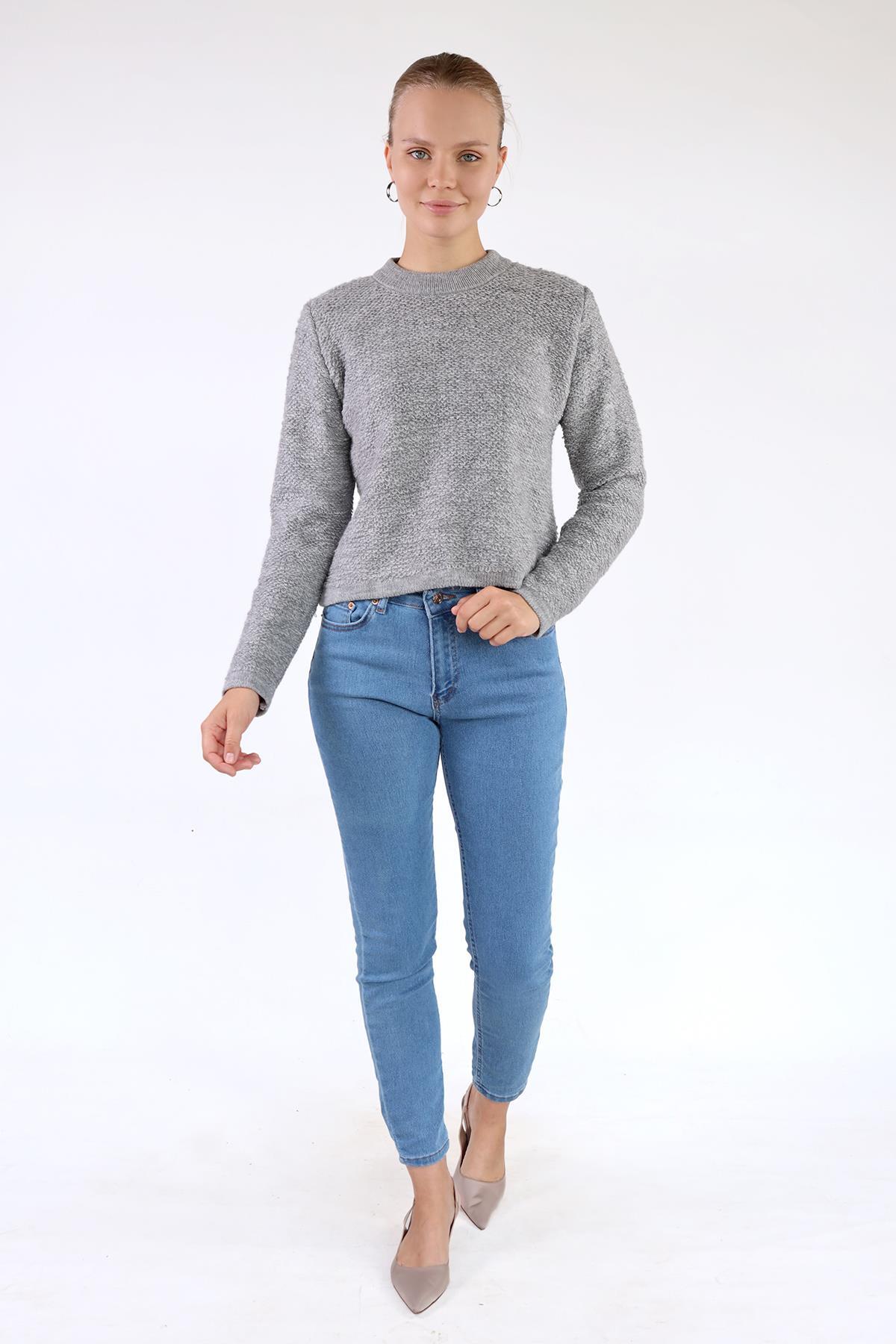 23341 Bisiklet Yaka Kazak Gri