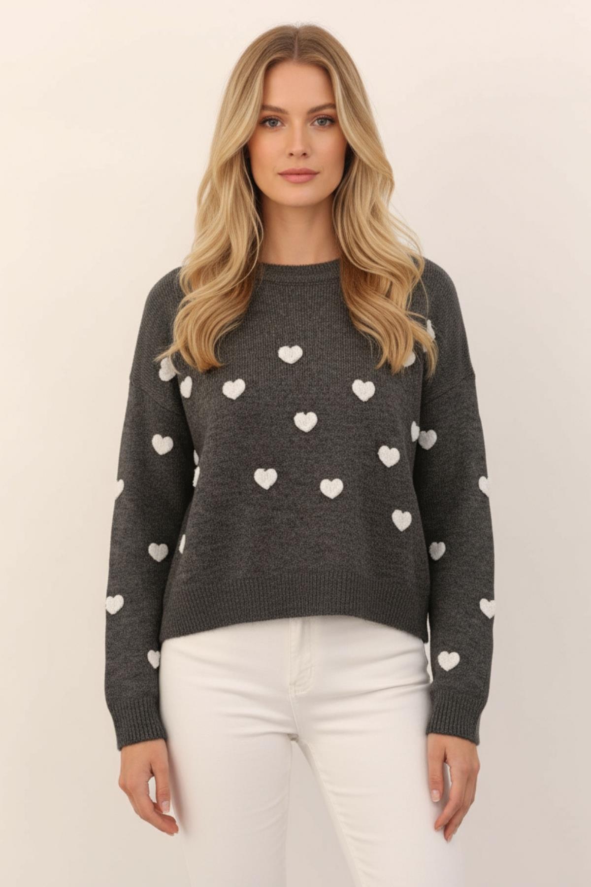 2337 Kalp Nakışlı Kısa Kazak Antrasit