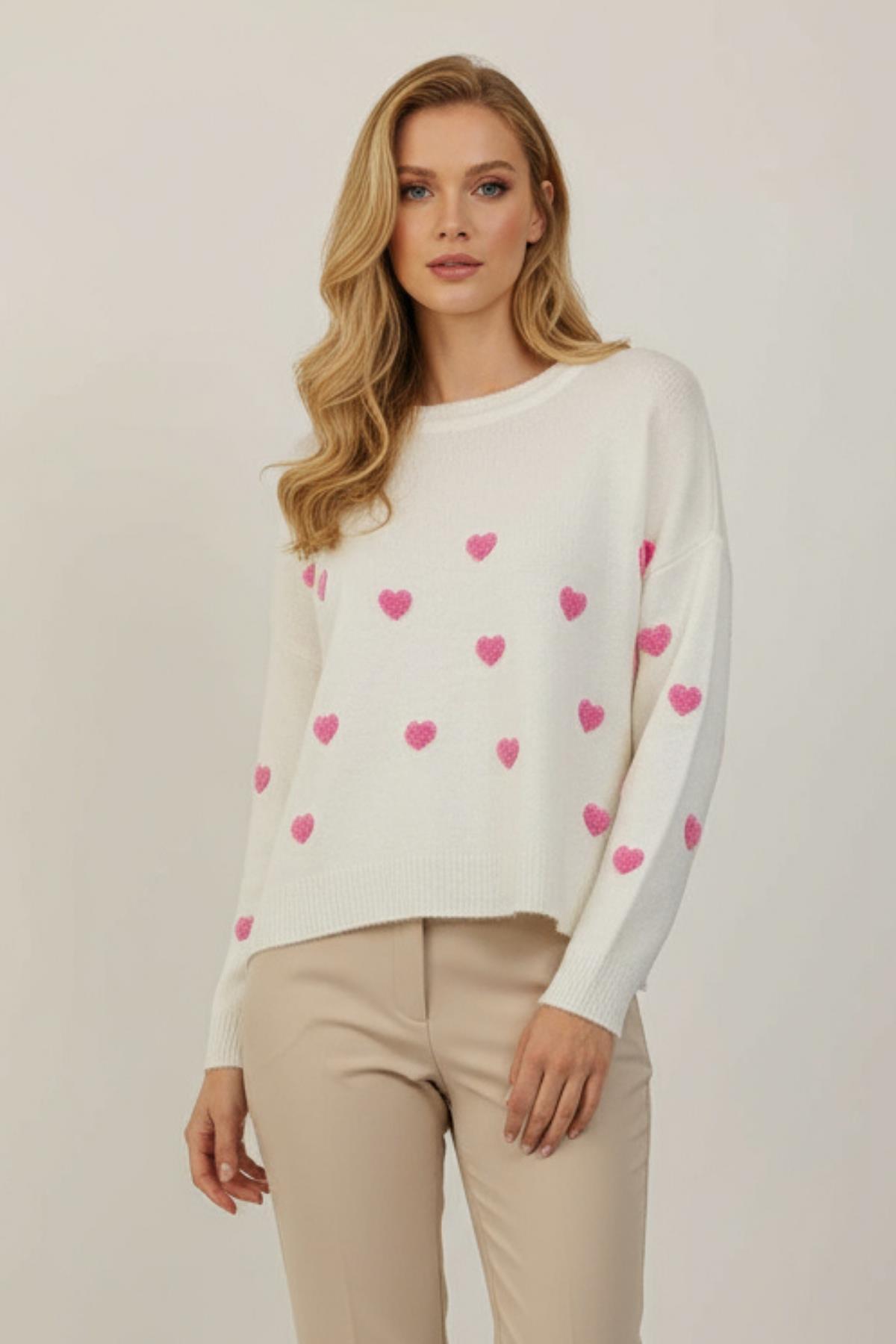 2337 Kalp Nakışlı Kısa Kazak Natural