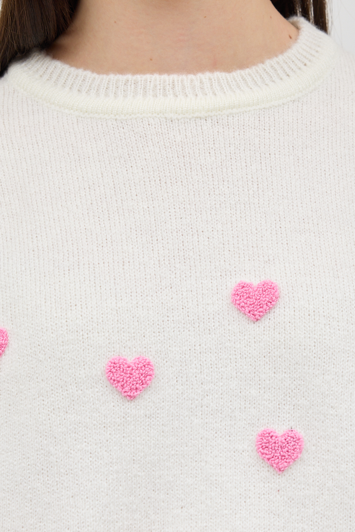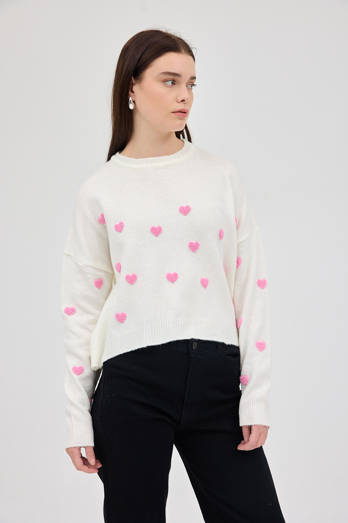 Natural Kalp Nakışlı Bisiklet Yaka Crop Kazak 2337