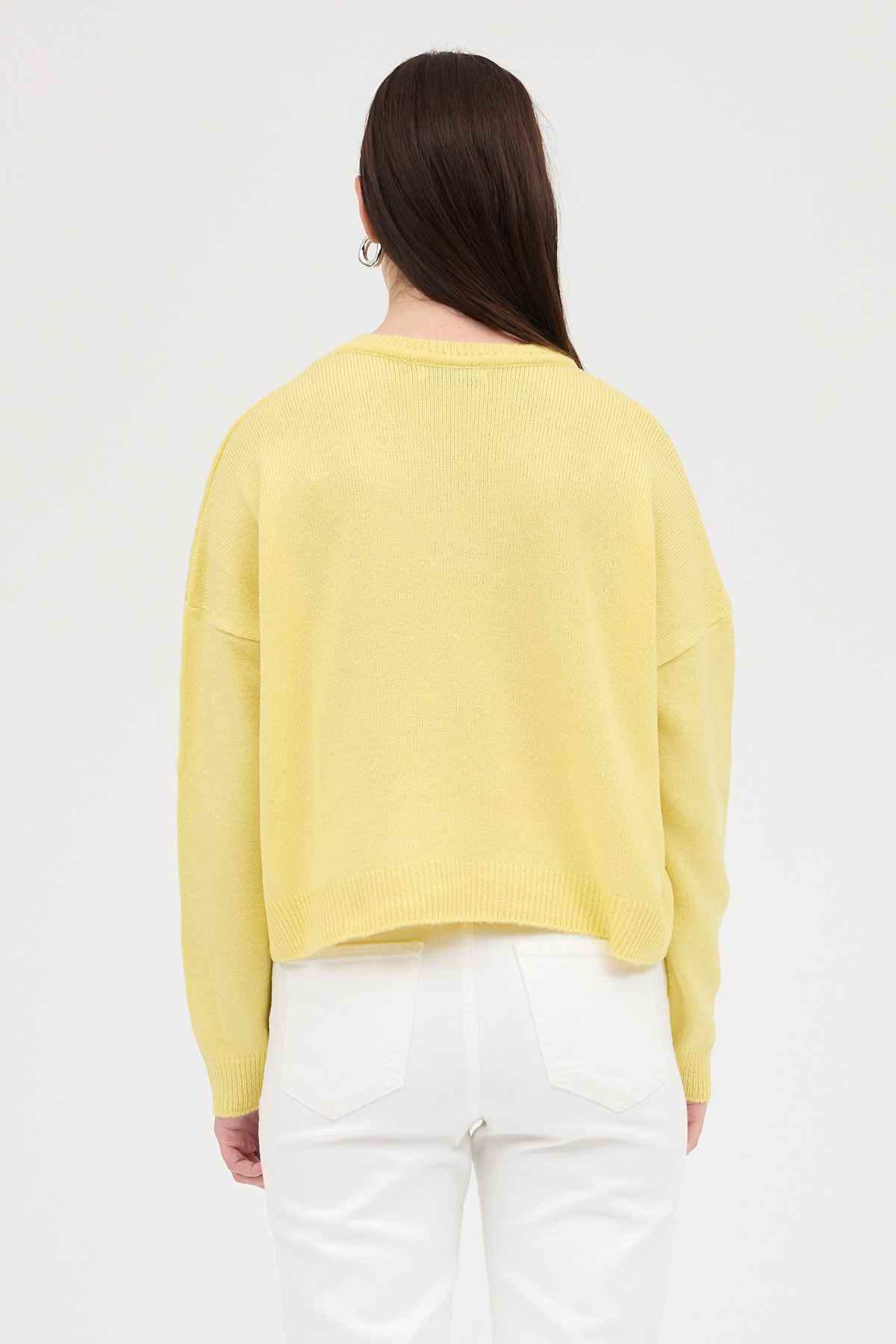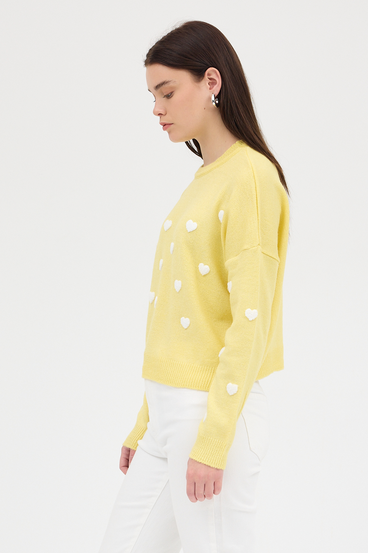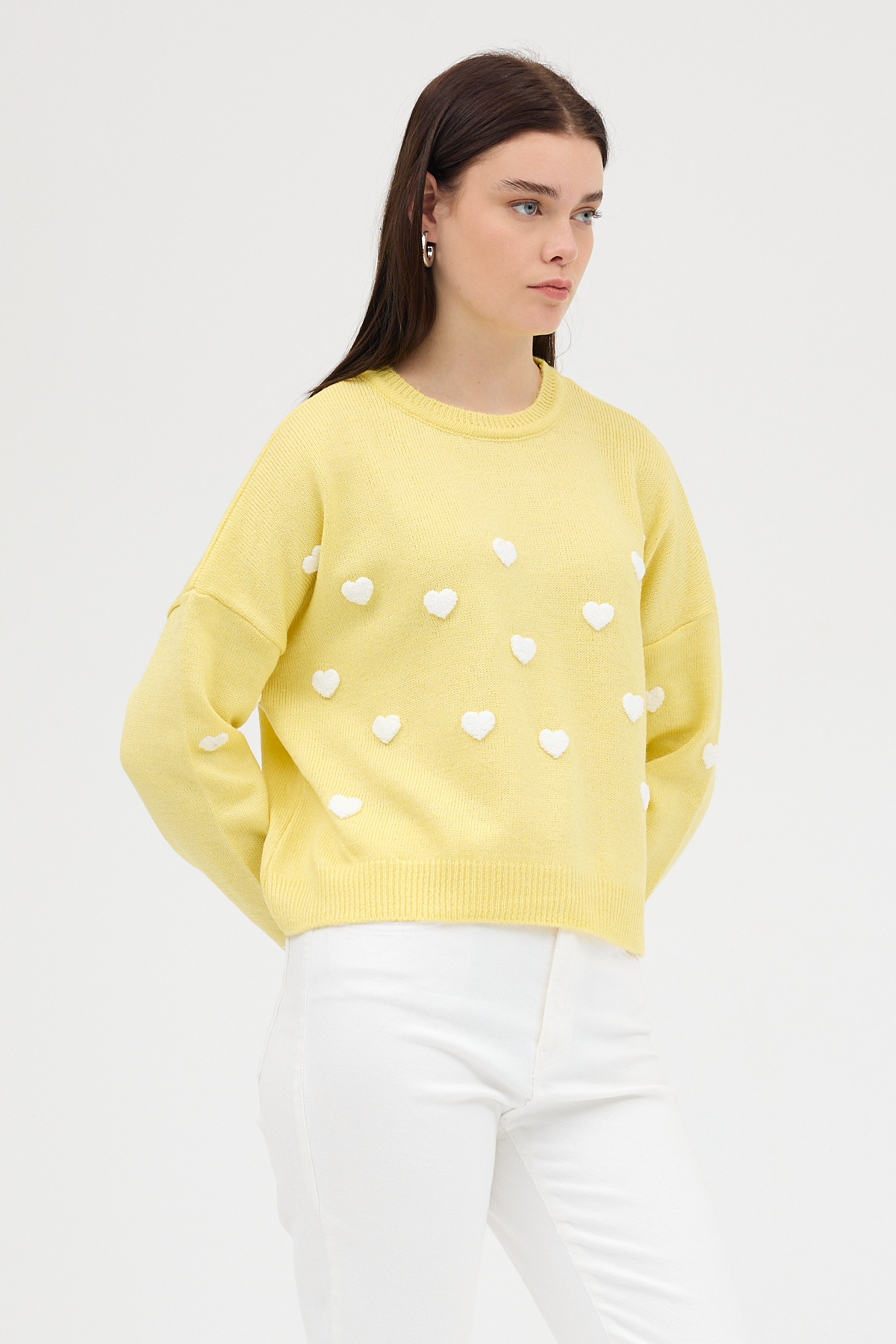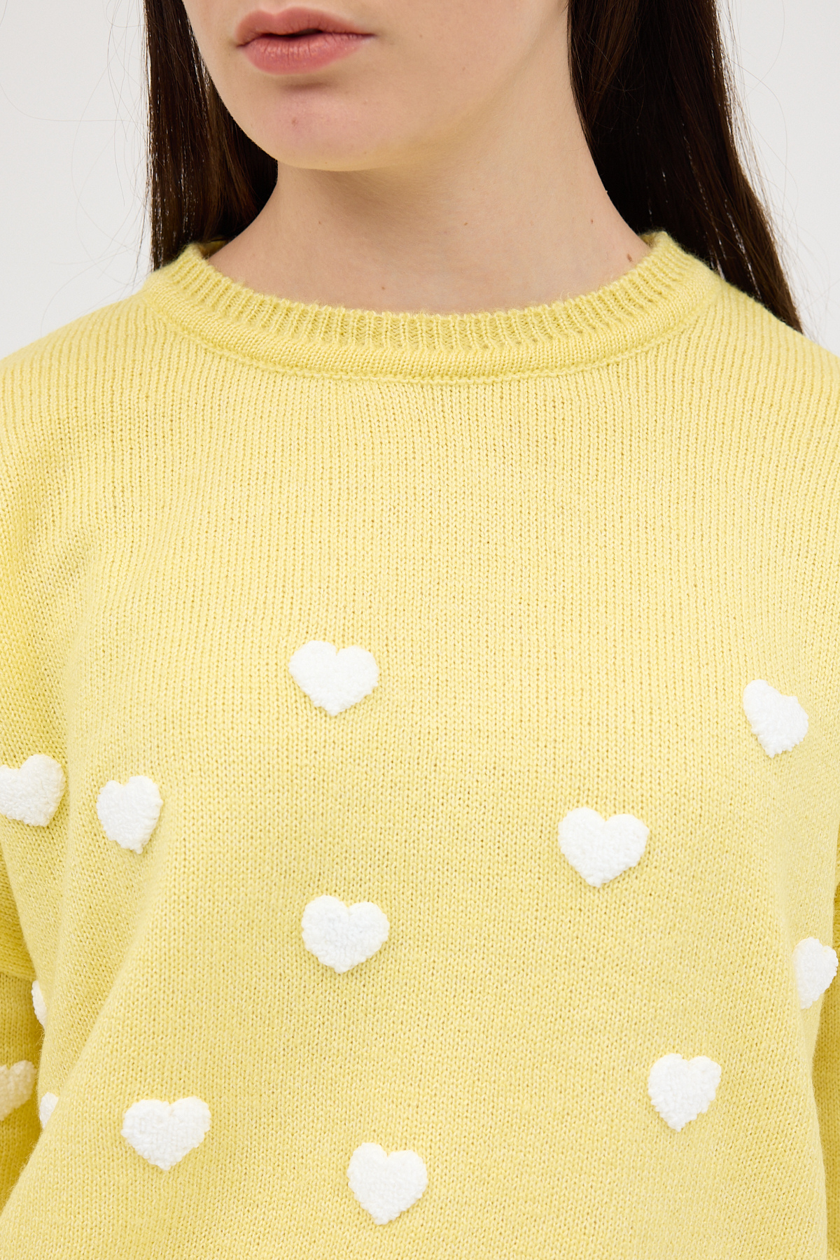 Sarı Kalp Nakışlı Bisiklet Yaka Crop Kazak 2337
