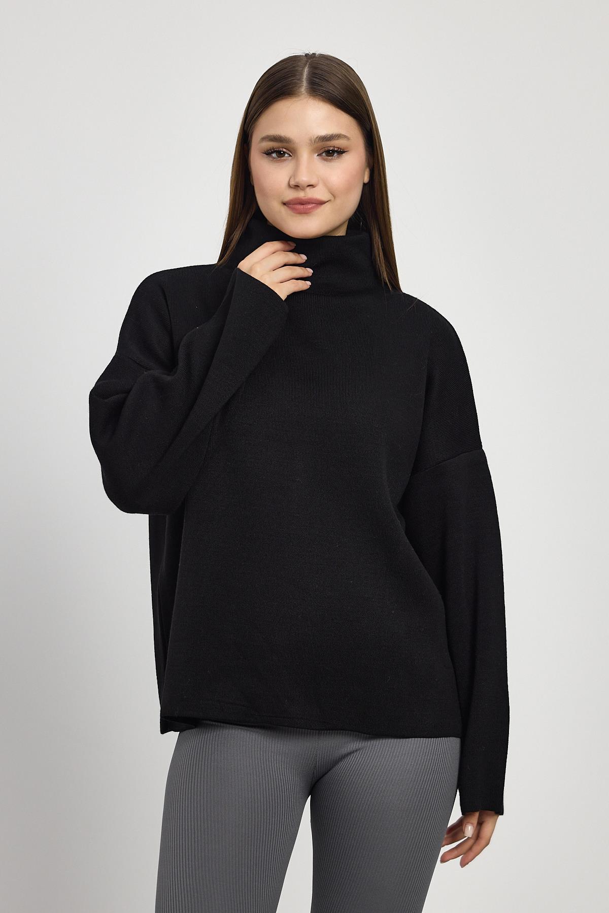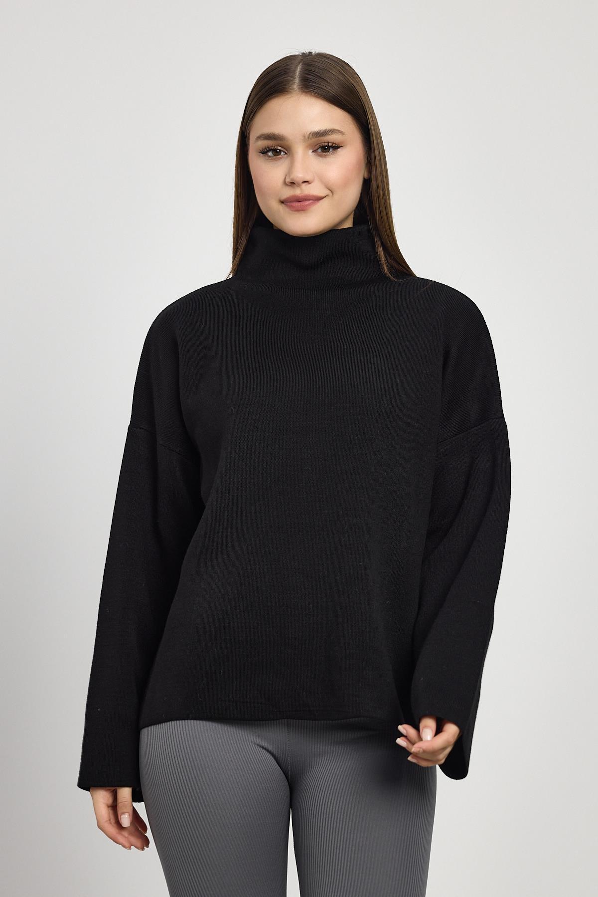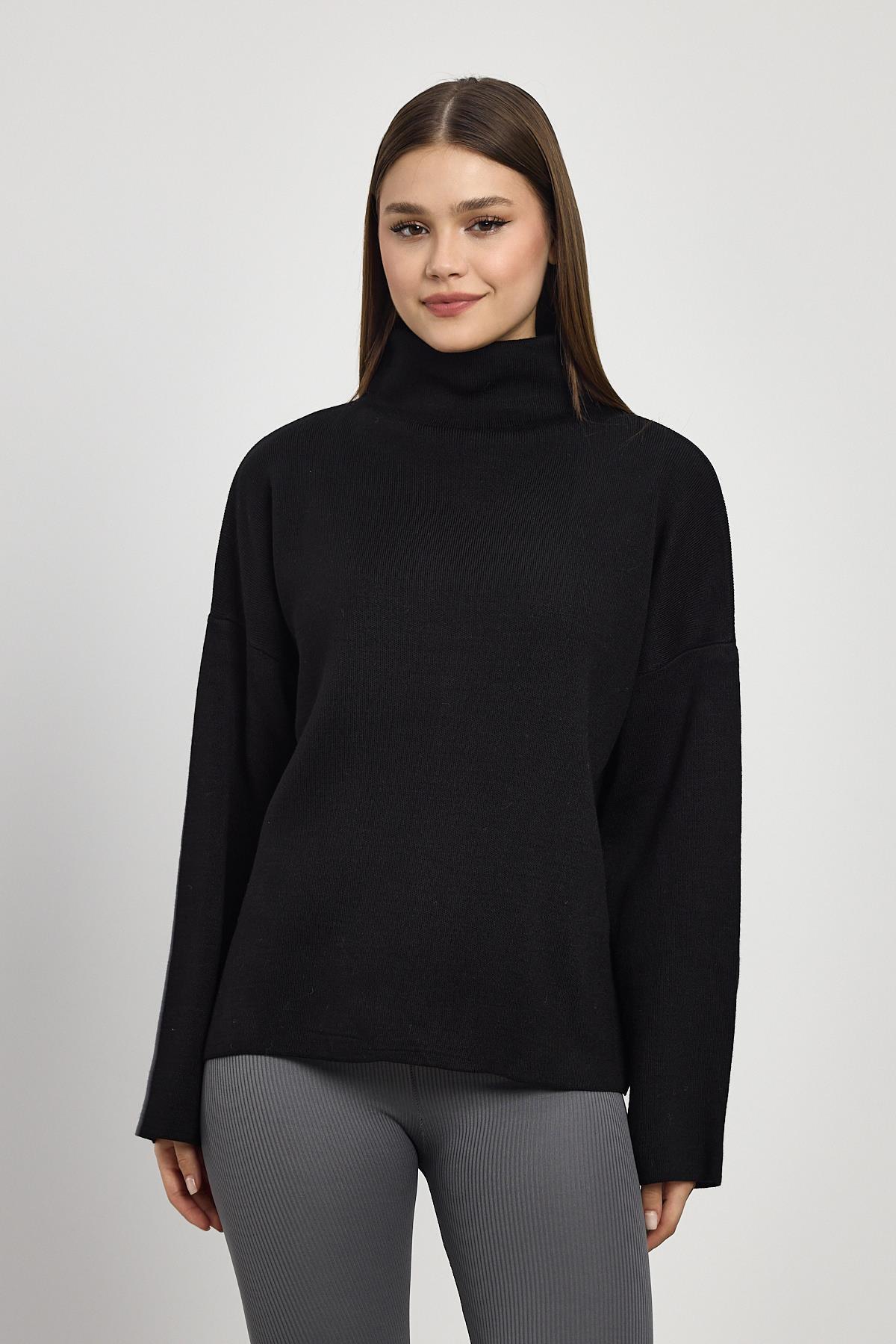 Siyah Tam Boğaz Triko Kazak 23374