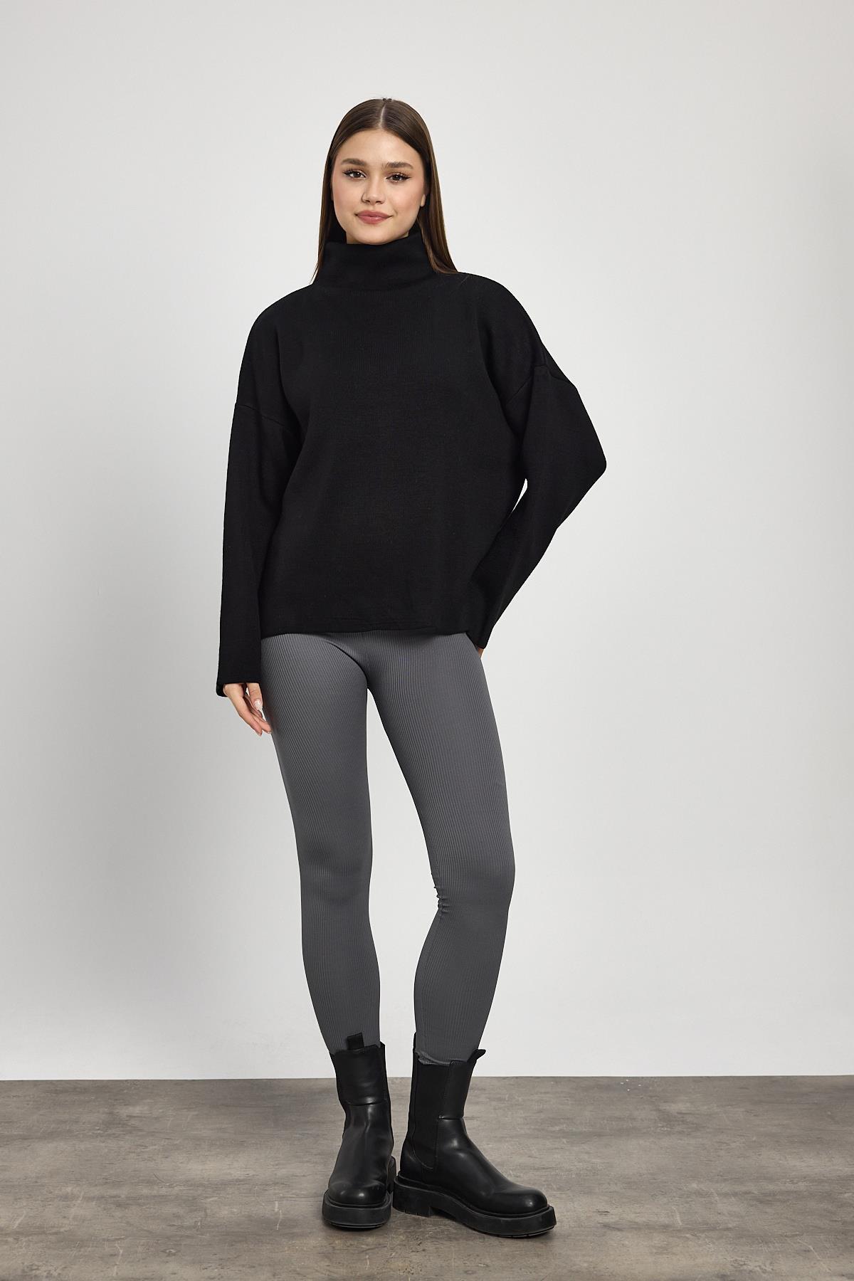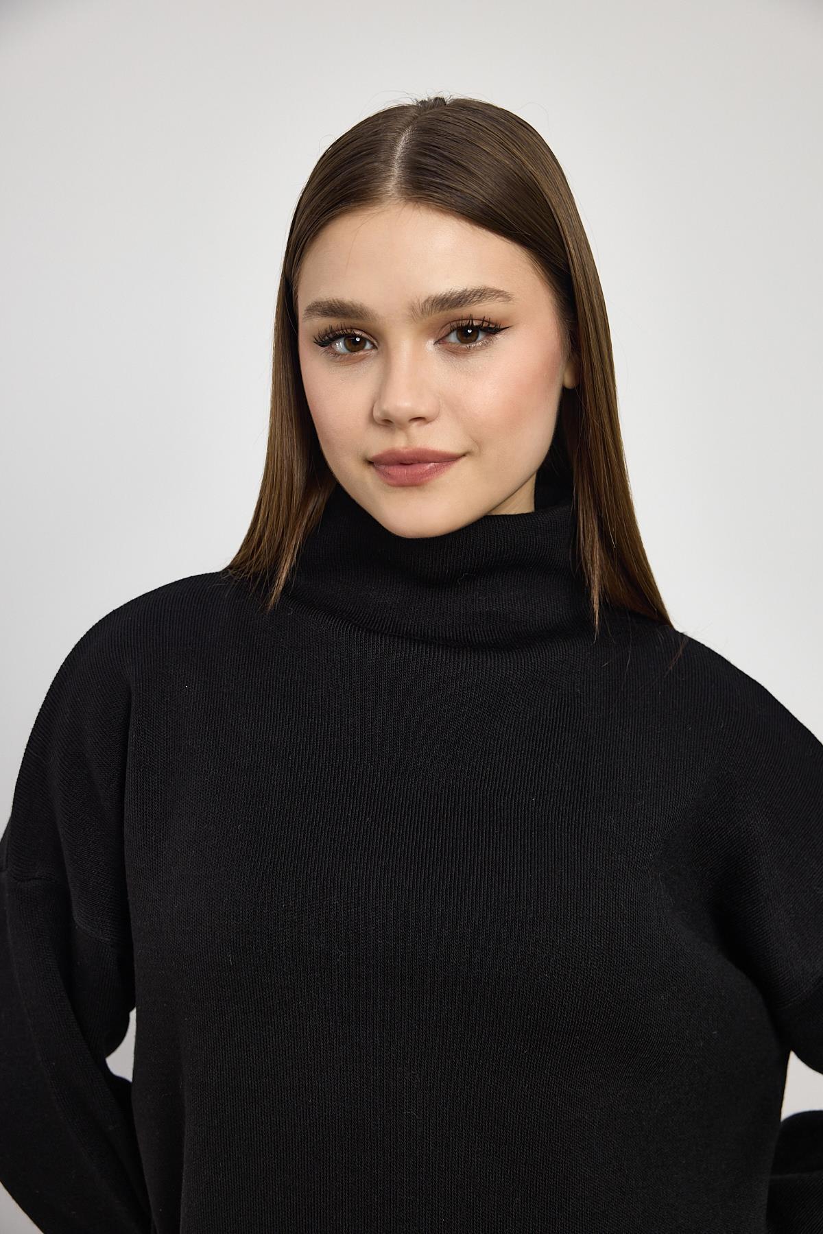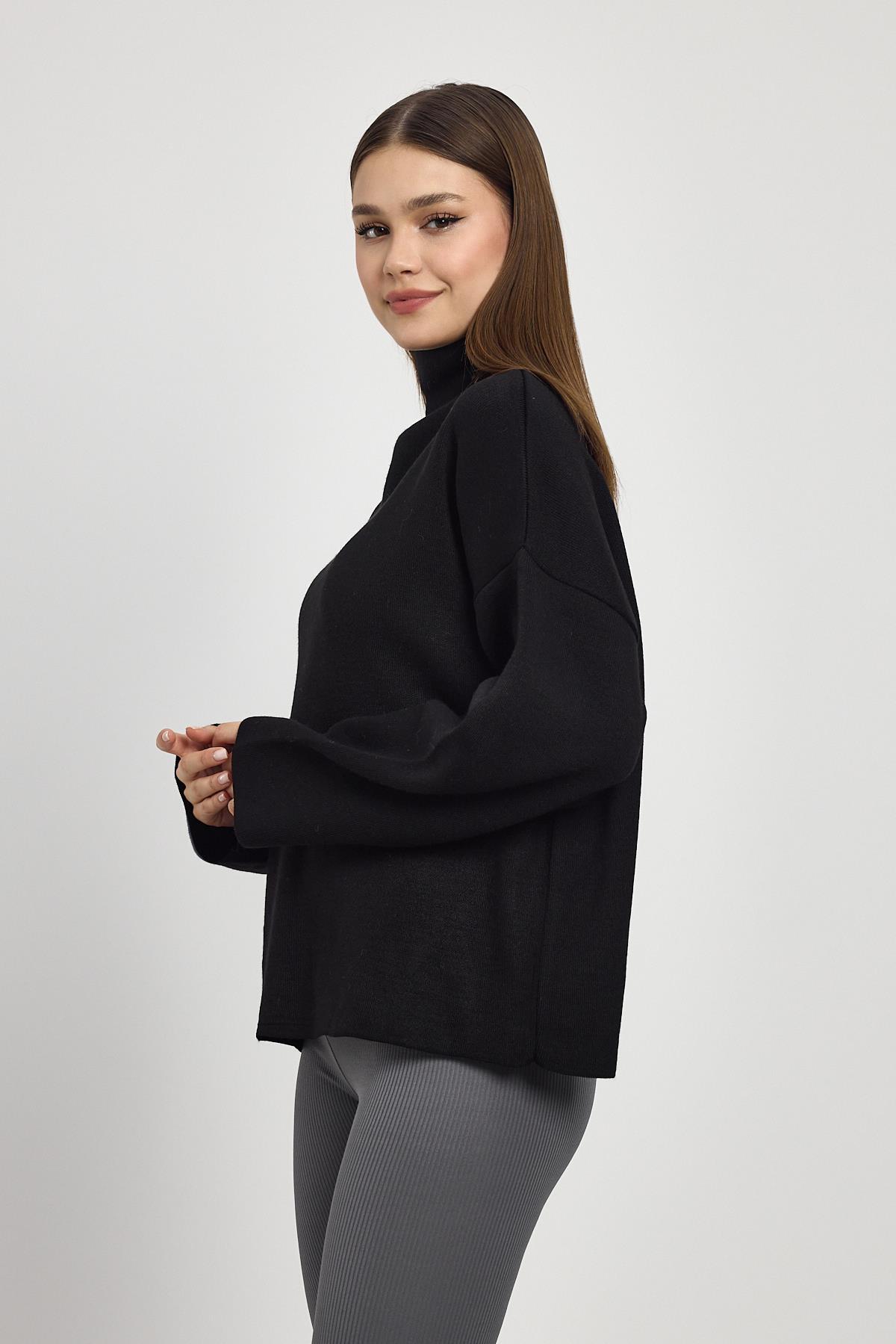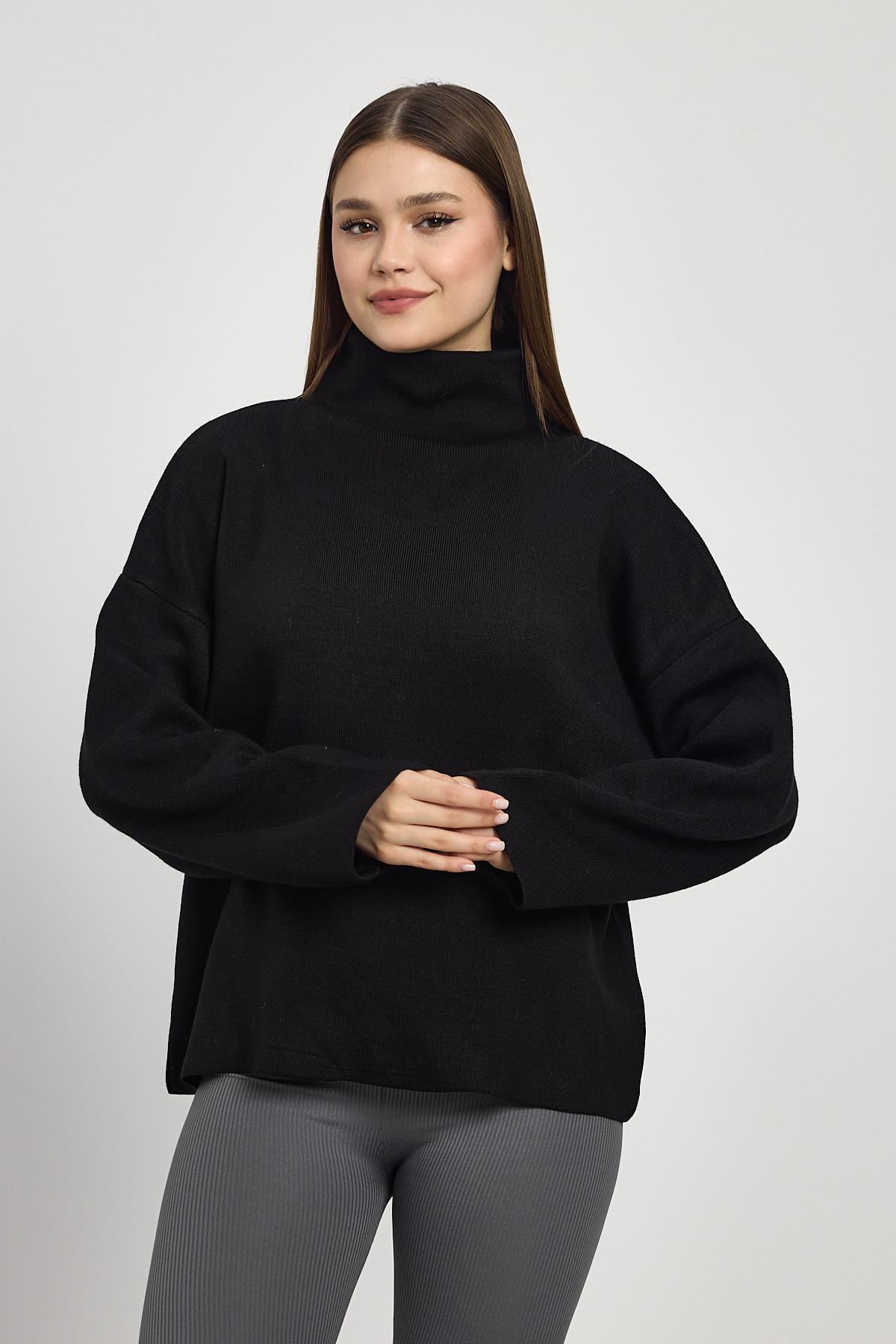 Siyah Tam Boğaz Triko Kazak 23374