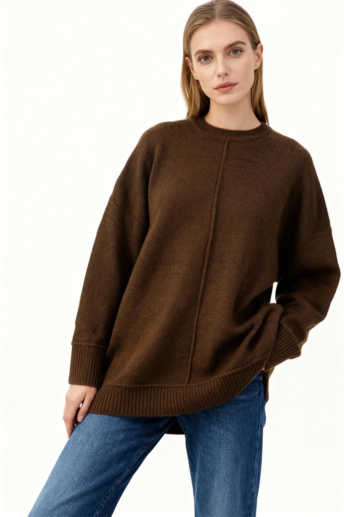 2345 Bisiklet Yaka Uzun Kol Kazak Acı Kahve