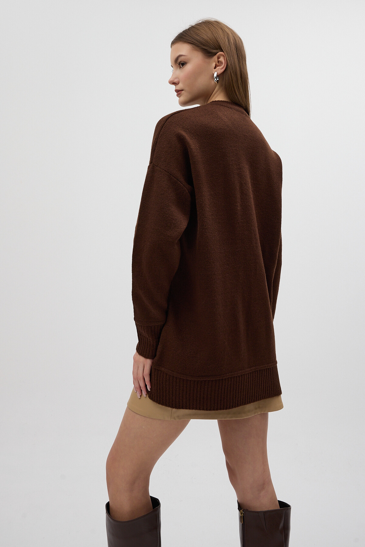 Acı Kahve Bisiklet Yaka Ön Dikiş Detaylı Kadın Kazak 2345
