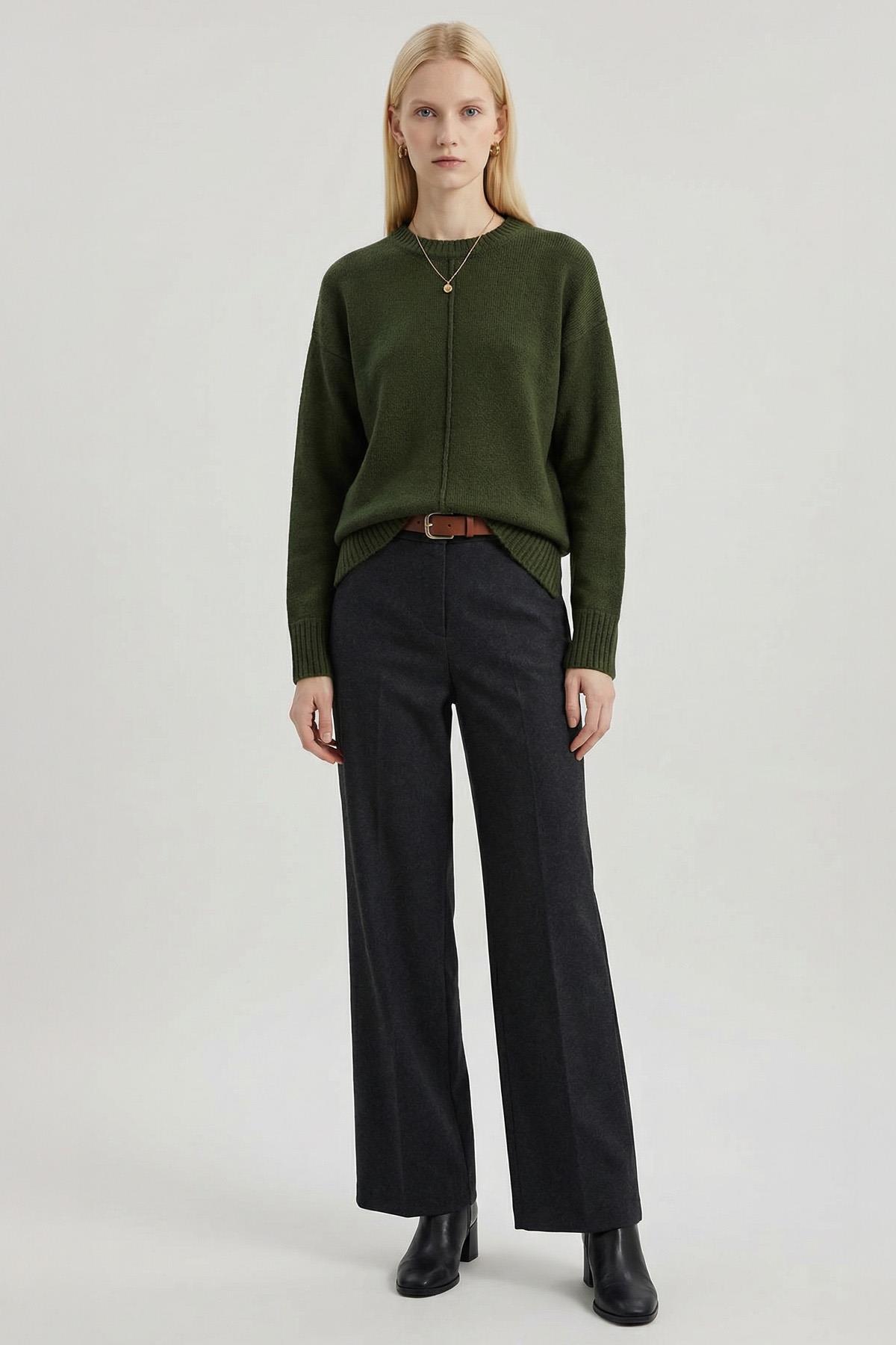 2345 Bisiklet Yaka Uzun Kol Kazak Haki