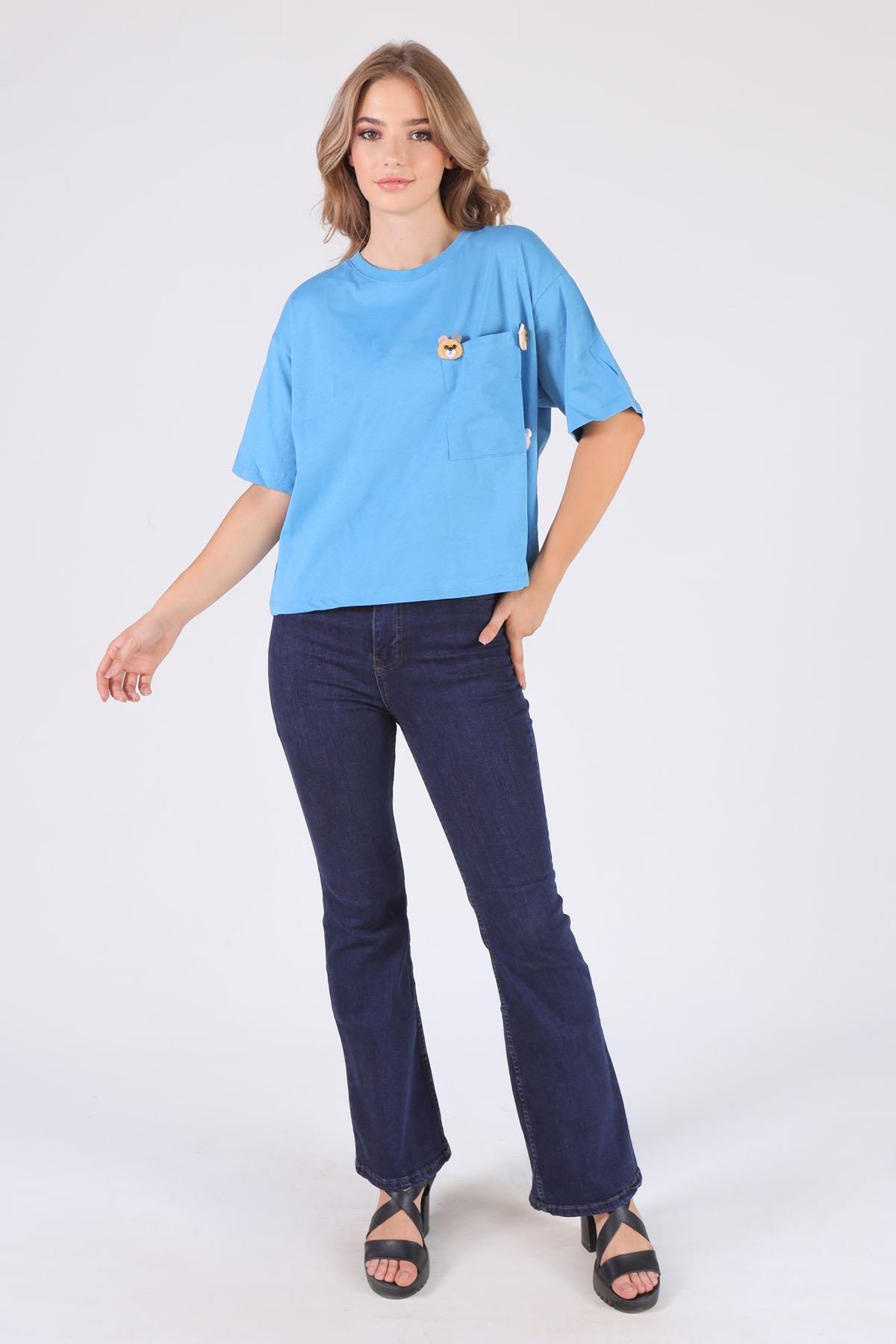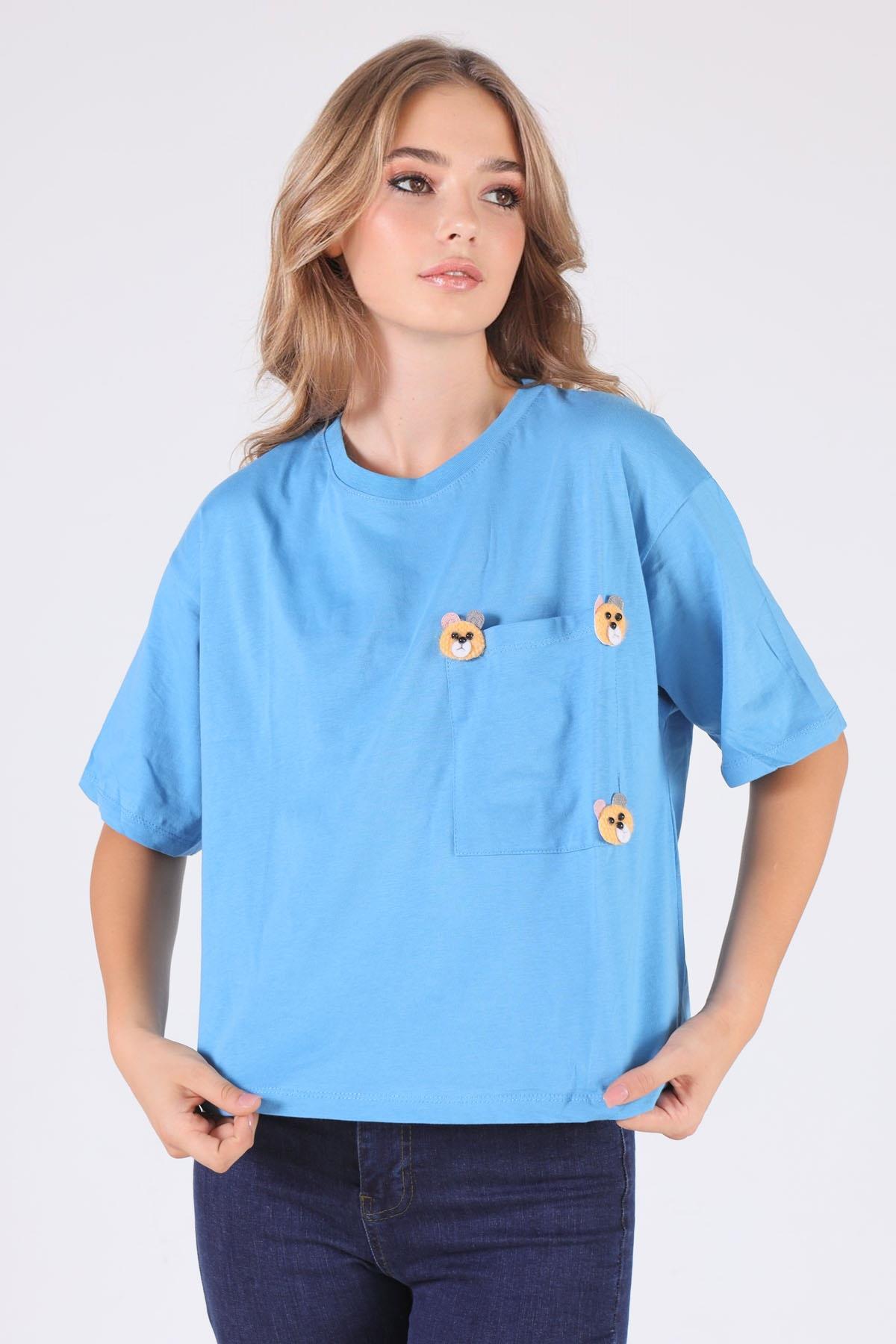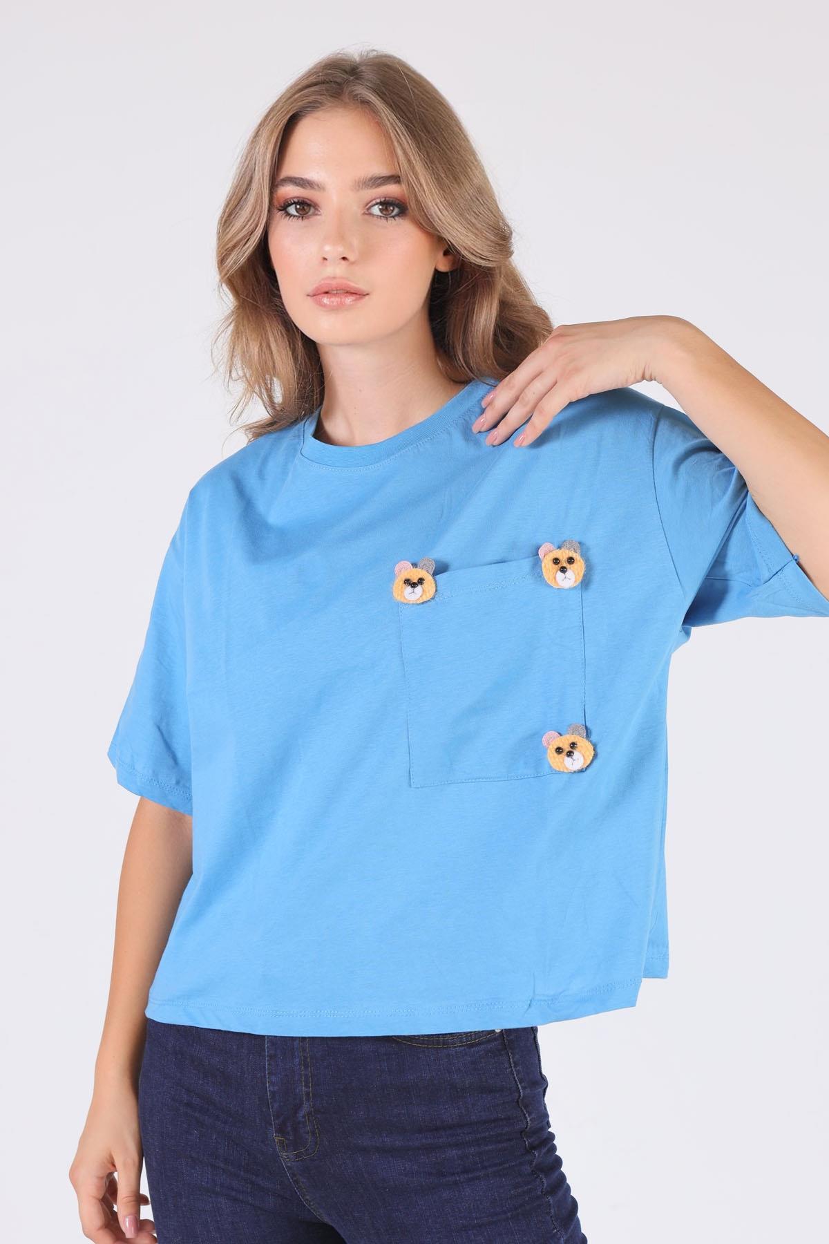 Mavi Cepli Ayıcık Aksesuar Tişört 23486