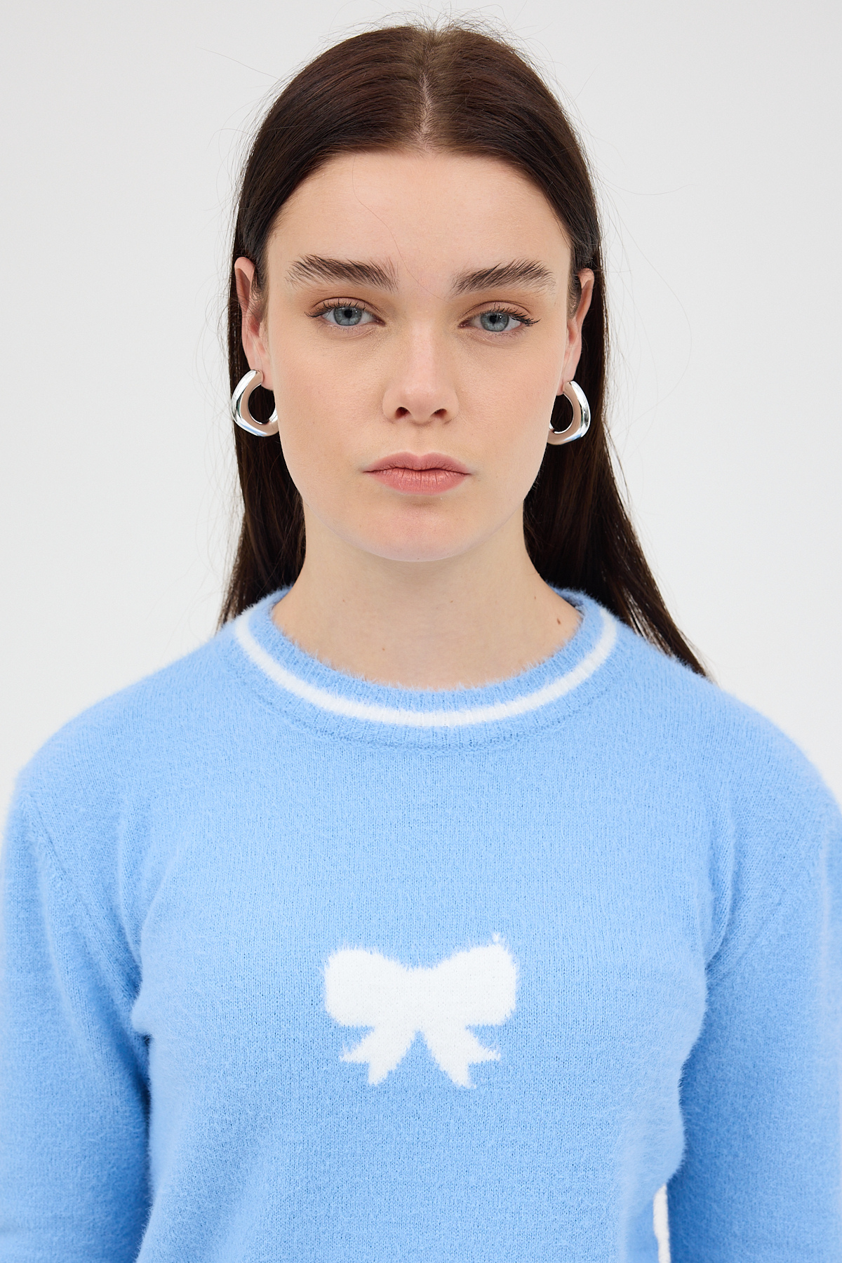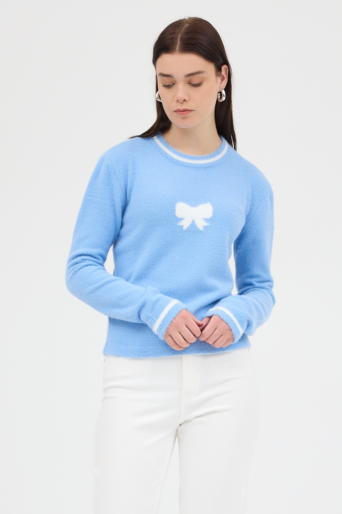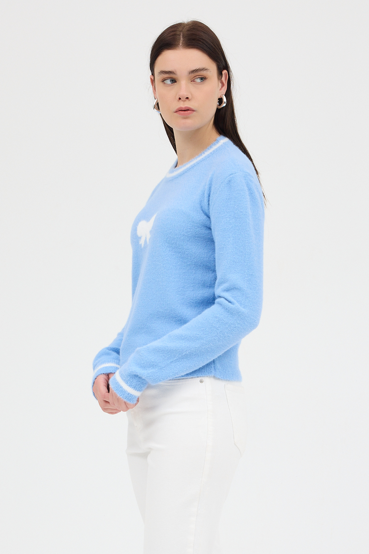 Bebe Mavi Bisiklet Yaka Kurdele Detaylı Kadın Kazak 2359