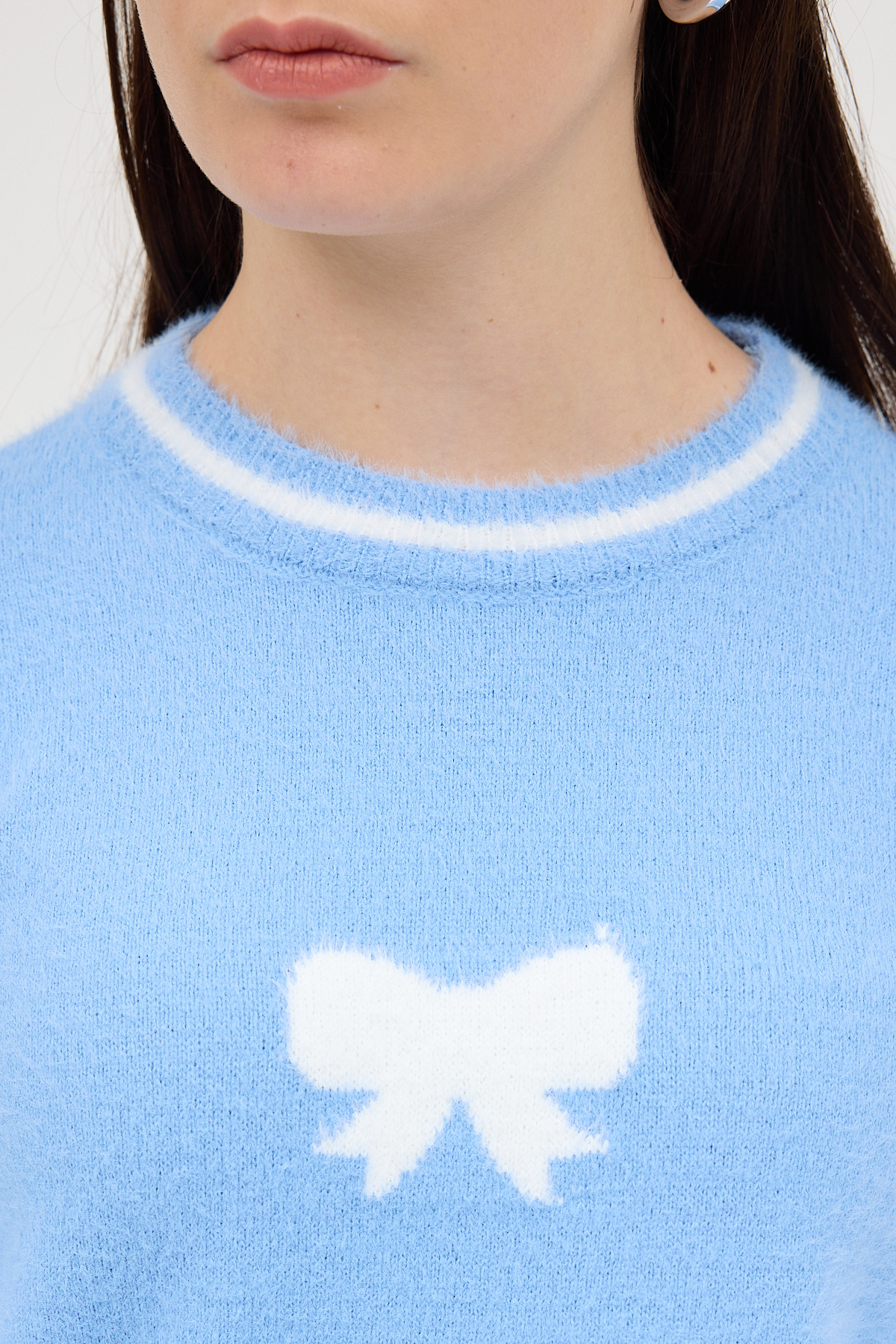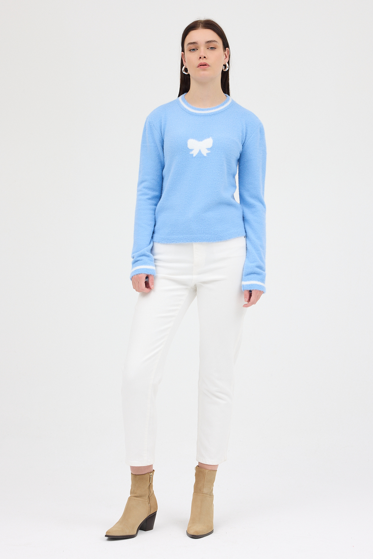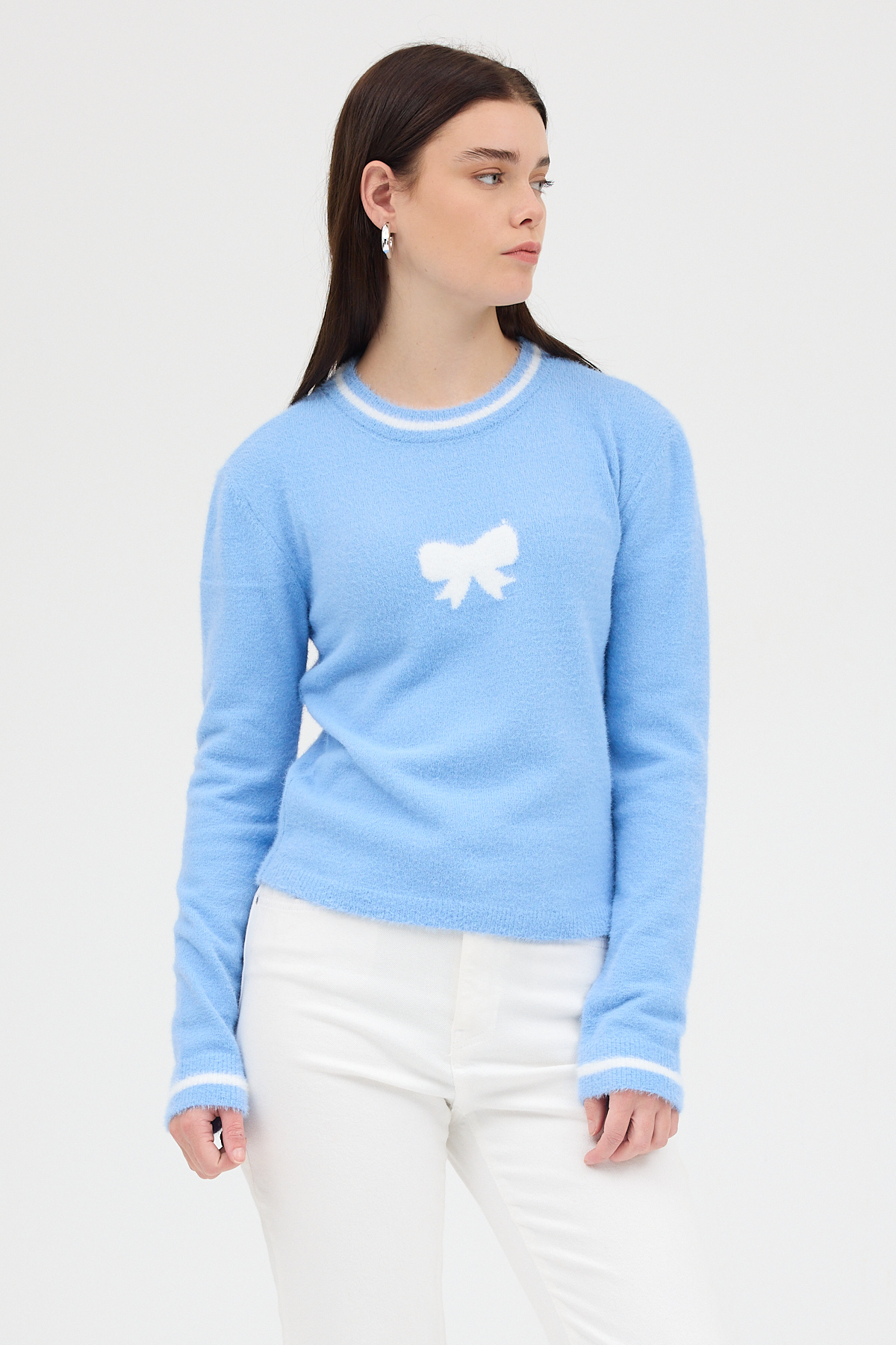 Bebe Mavi Bisiklet Yaka Kurdele Detaylı Kadın Kazak 2359