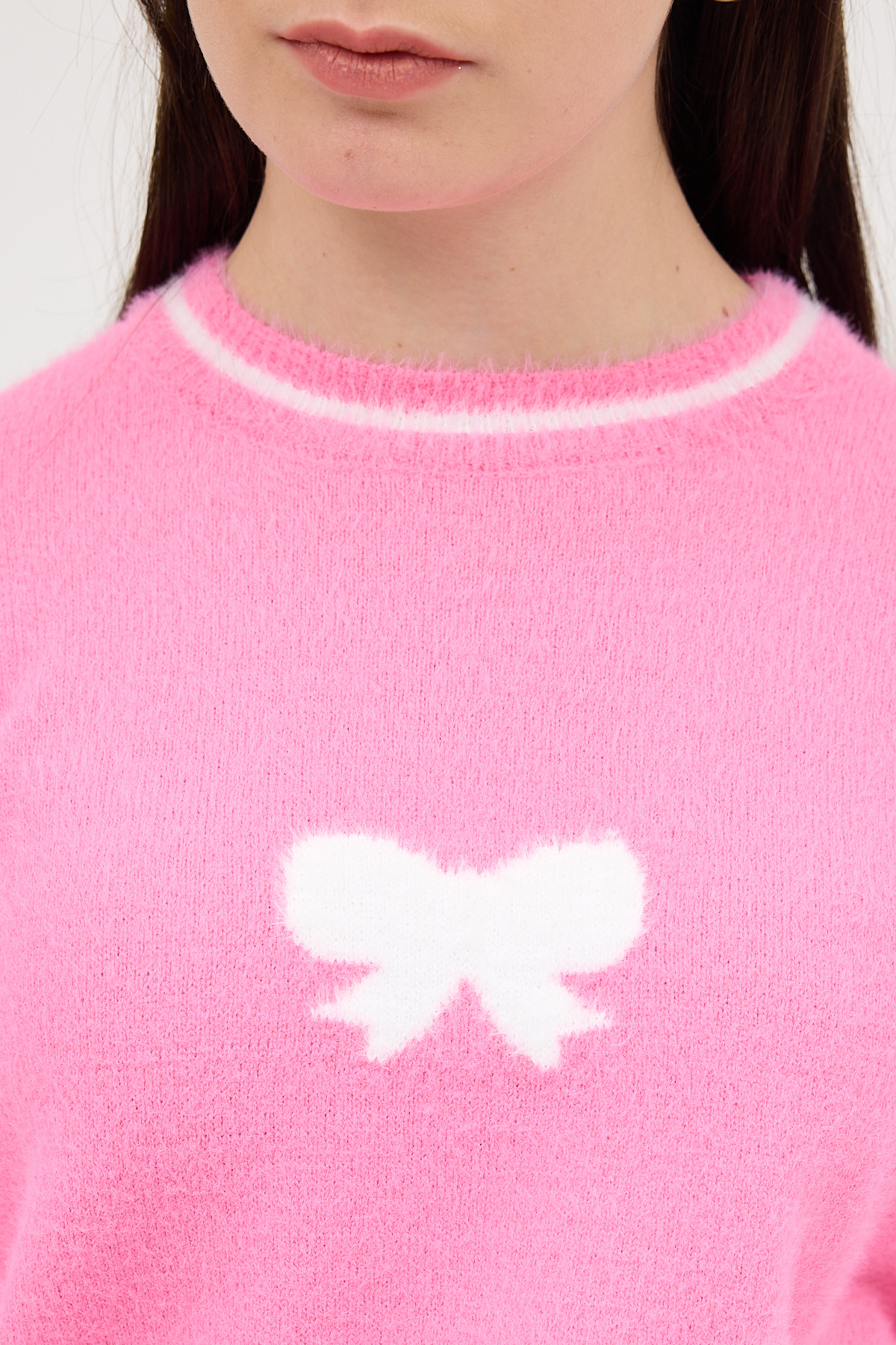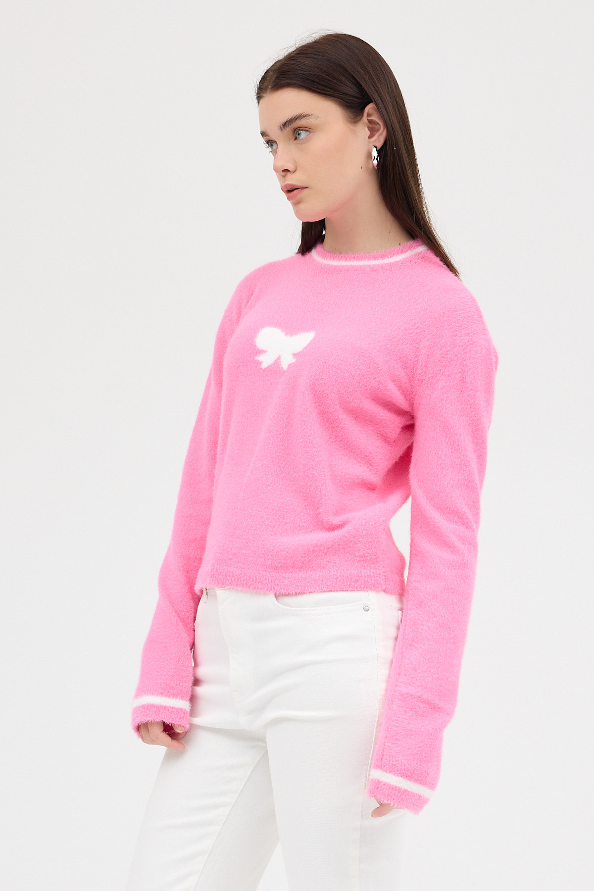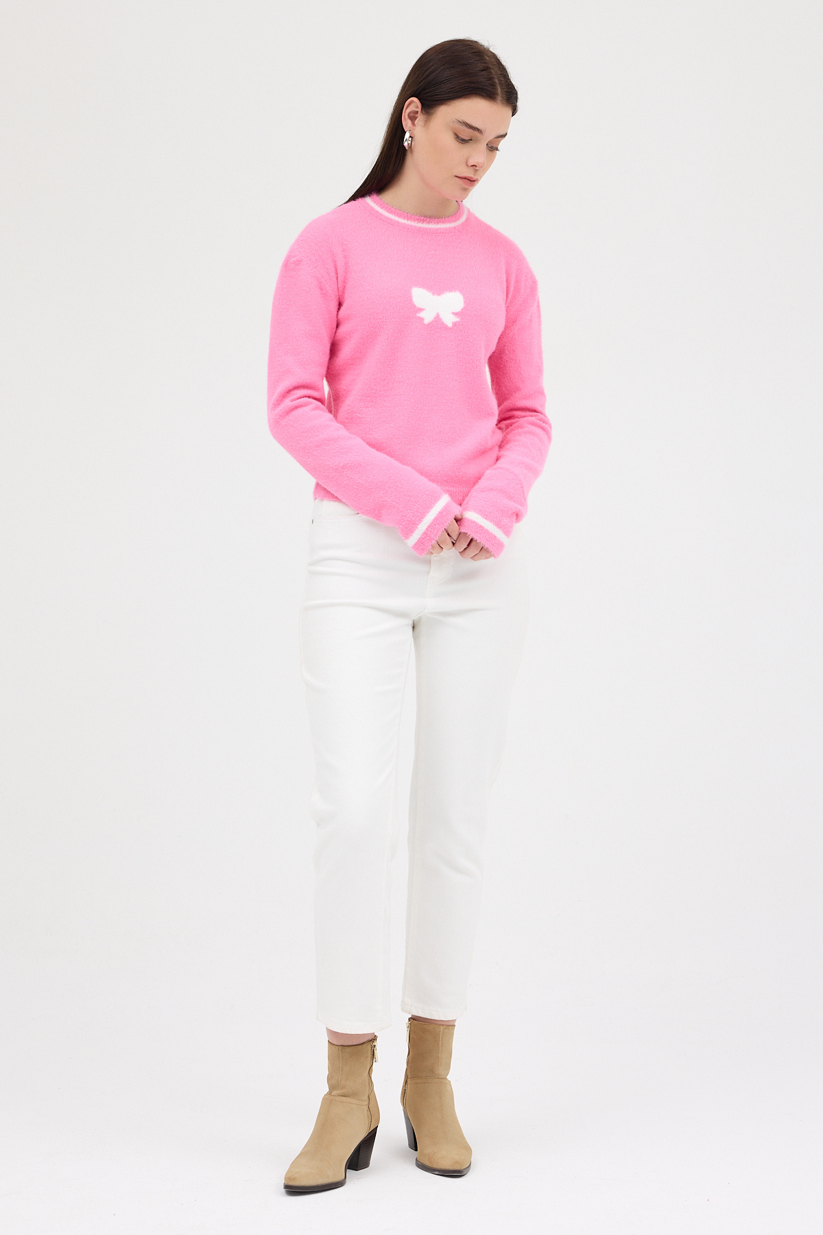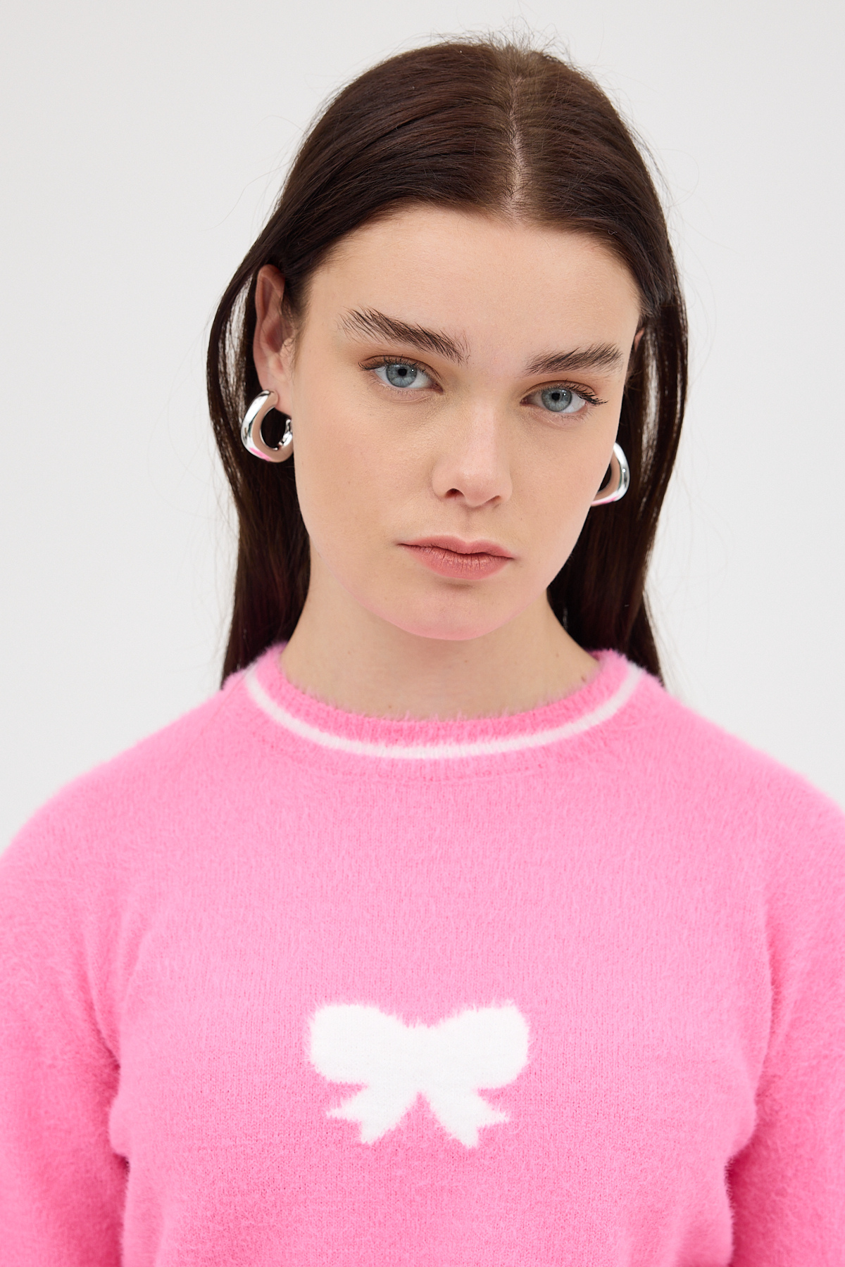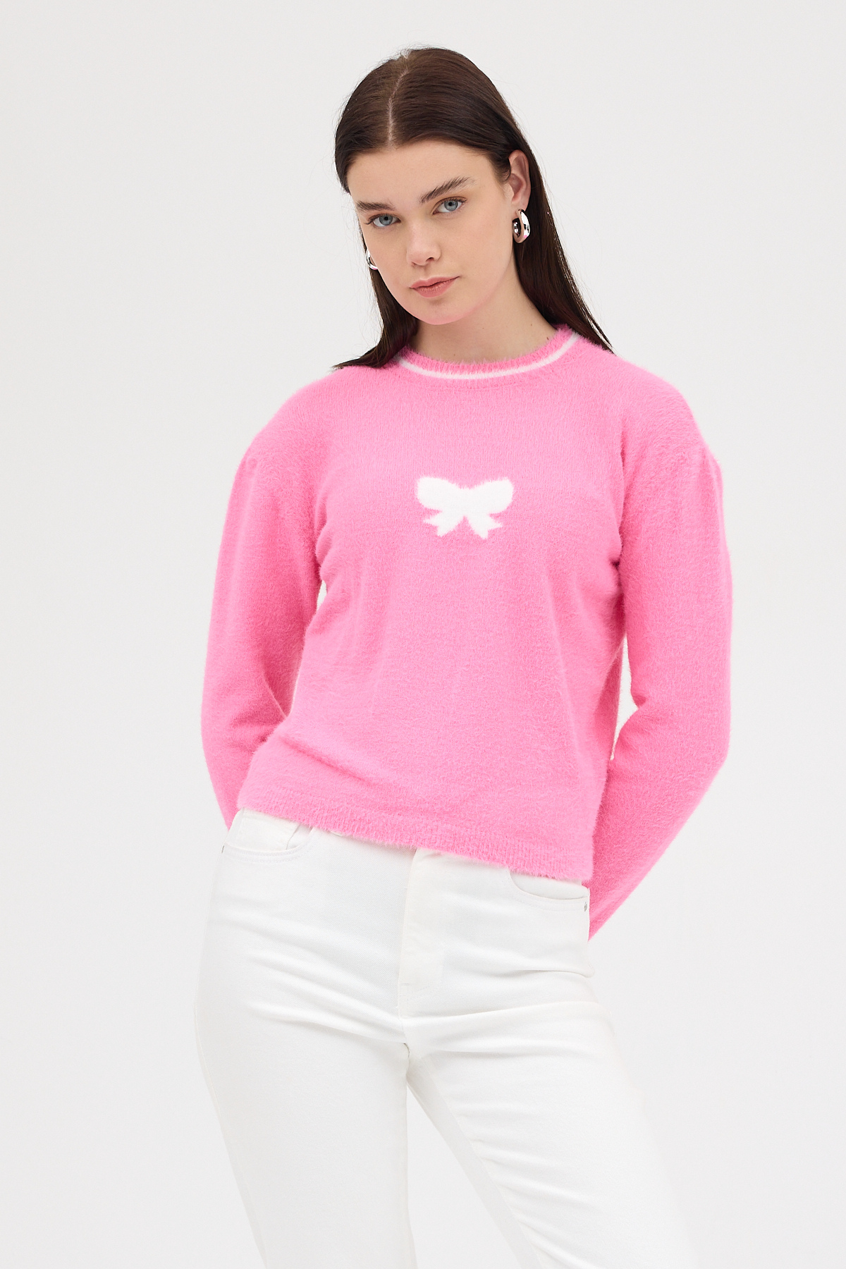 Pembe Bisiklet Yaka Kurdele Detaylı Kadın Kazak 2359