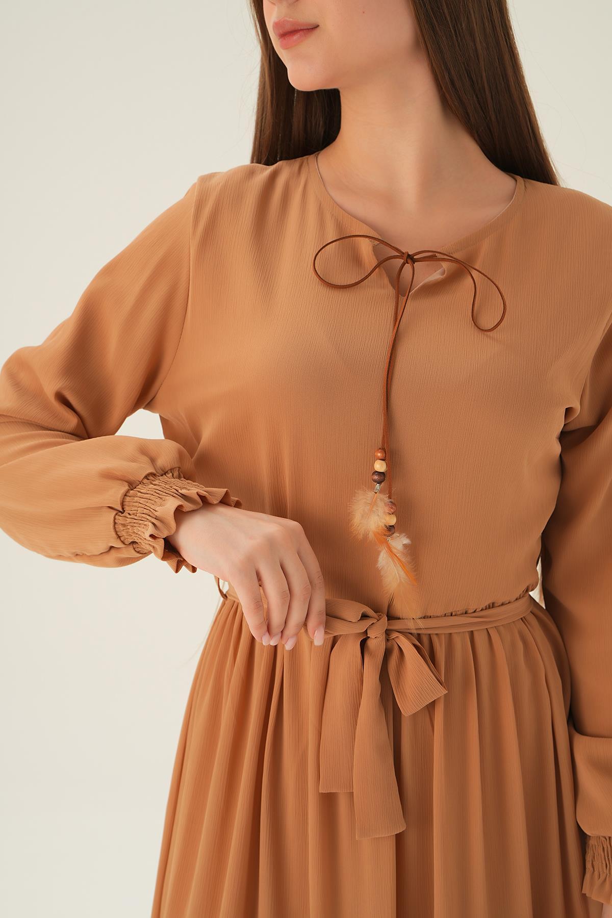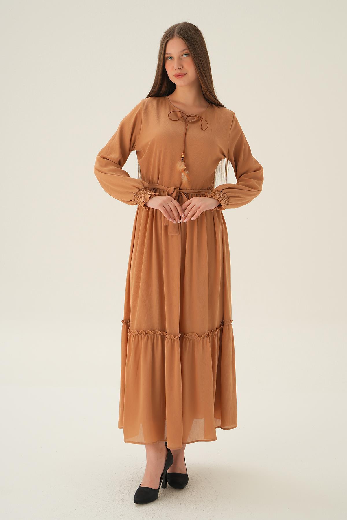 Kahve Etnik Desenli Kemerli Elbise 35560 - RAYS Kahve Etnik Desenli Kemerli Elbise 35560 - RAYS (1)