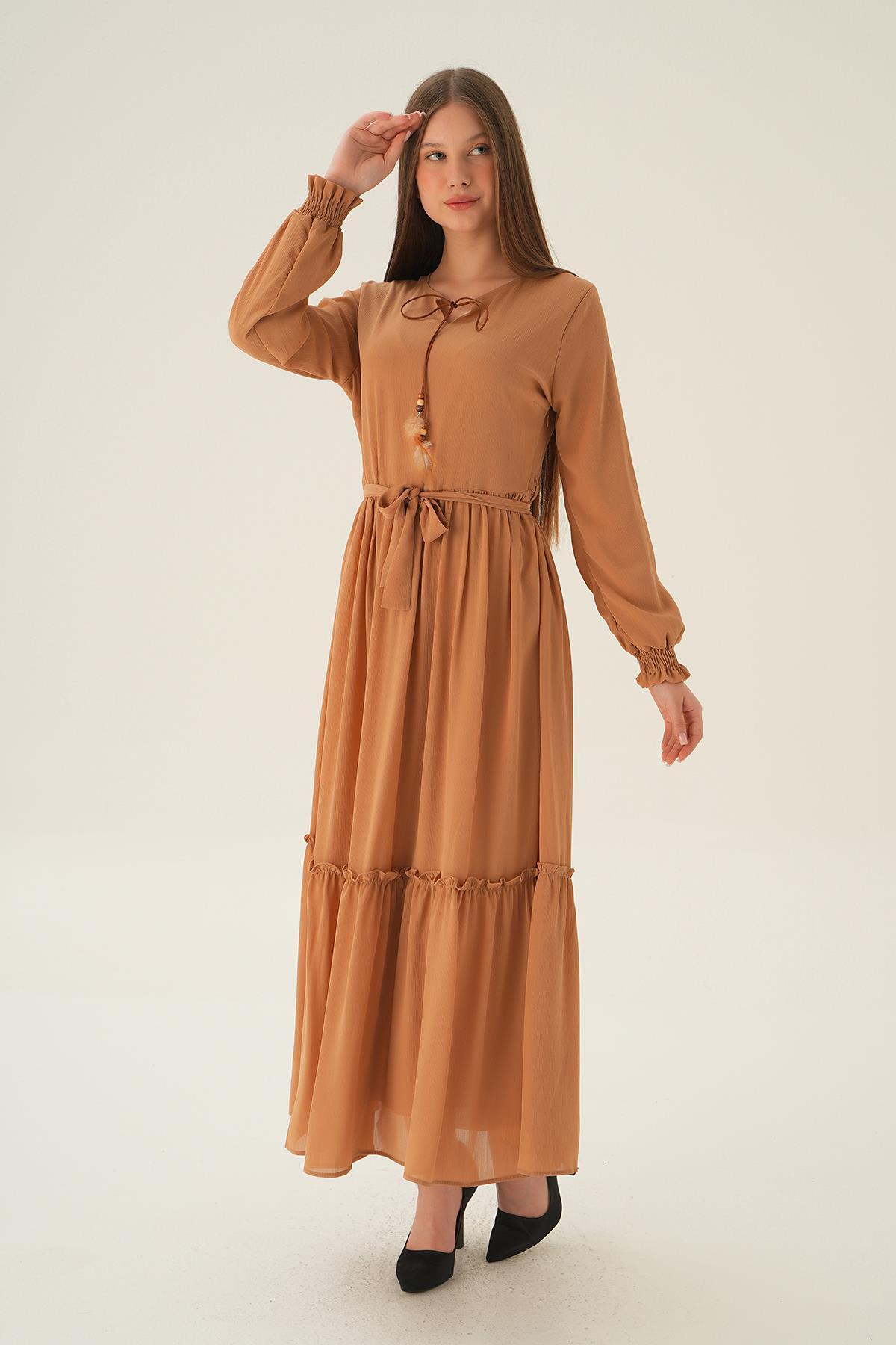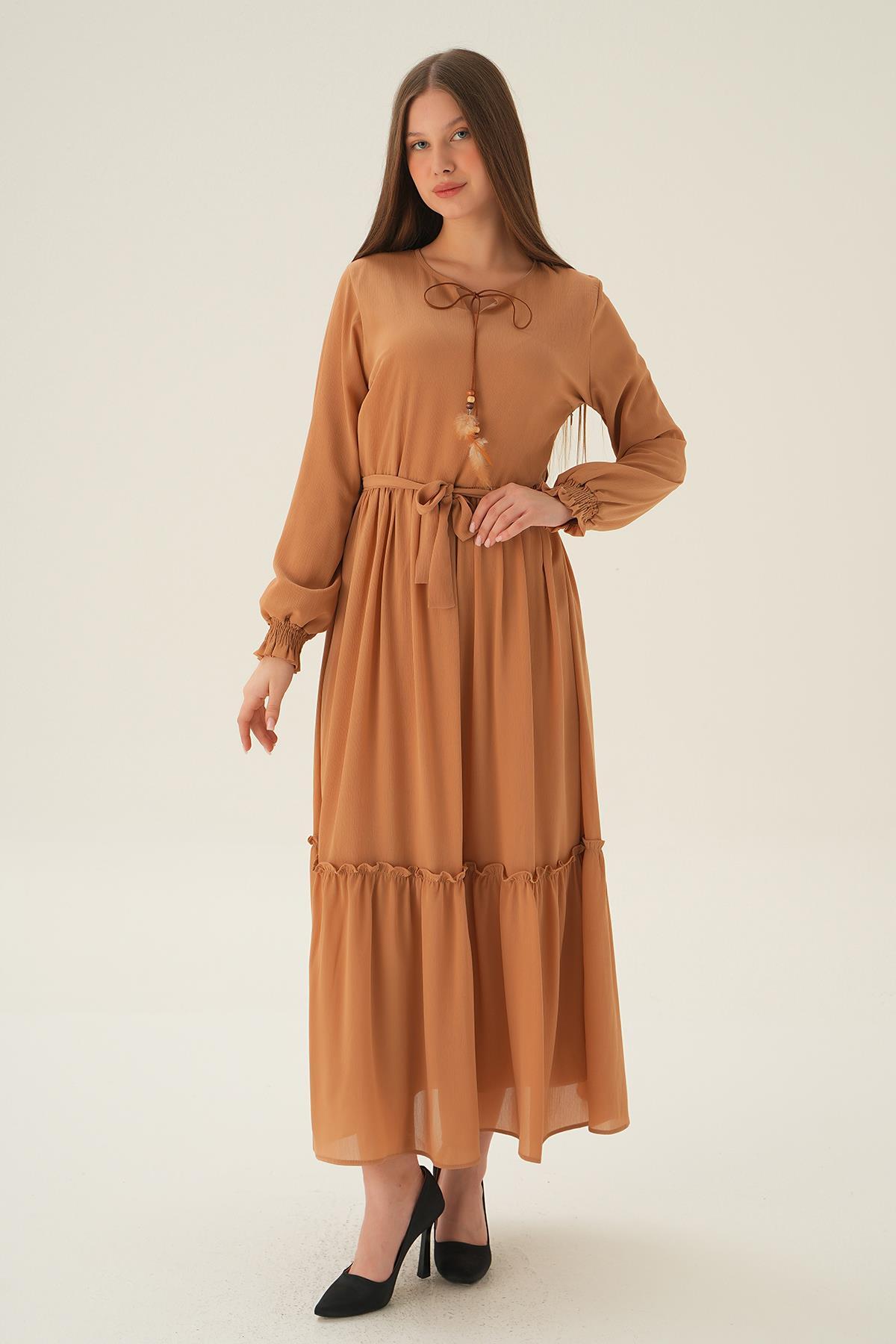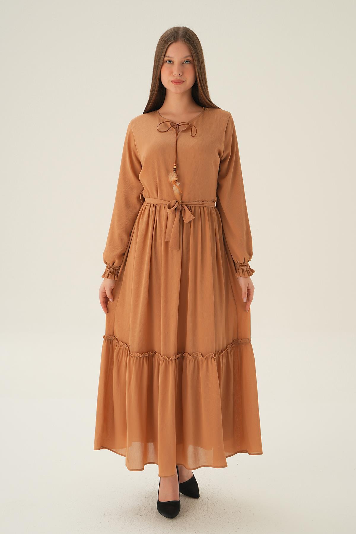 Kahve Desenli Bel Bağlama Elbise 2808 - RAYS Kahve Desenli Bel Bağlama Elbise 2808 - RAYS (1)