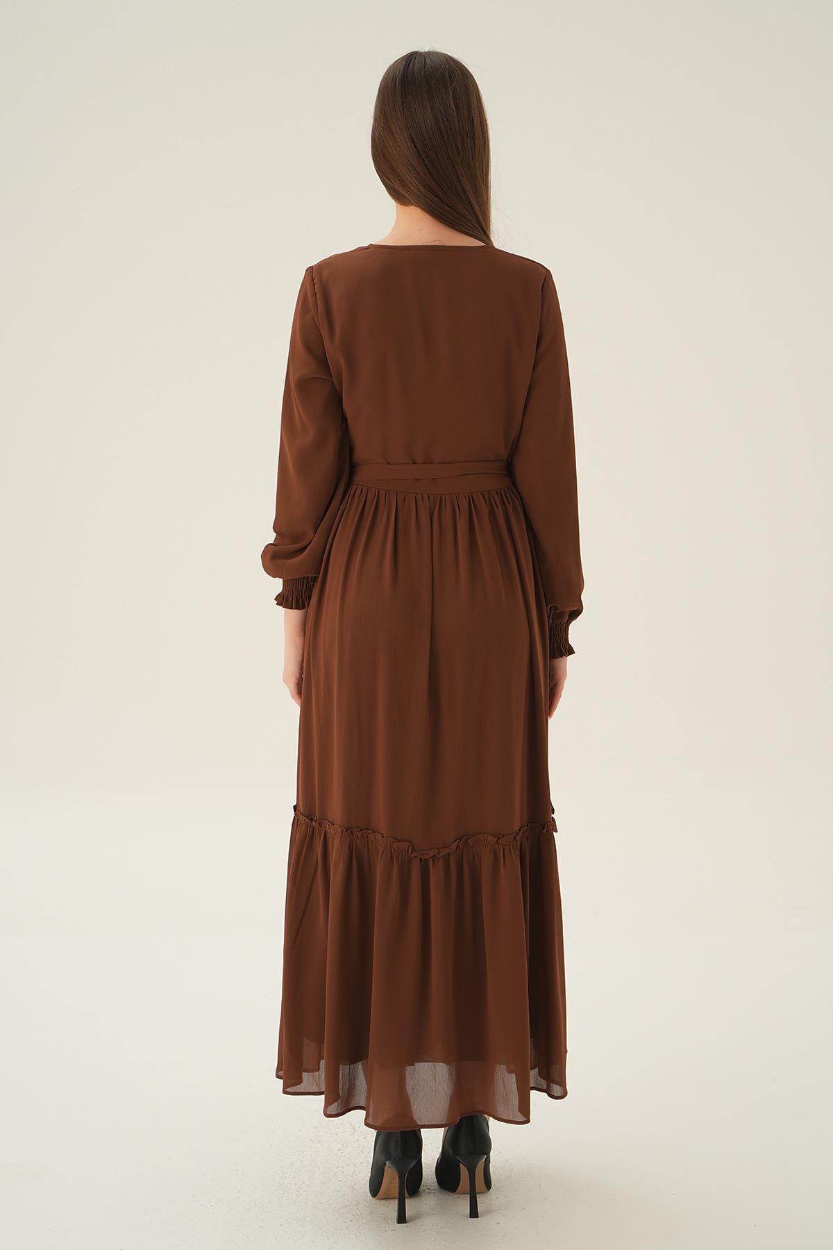 Kahve Düğmeli Kat Kat Elbise 2817