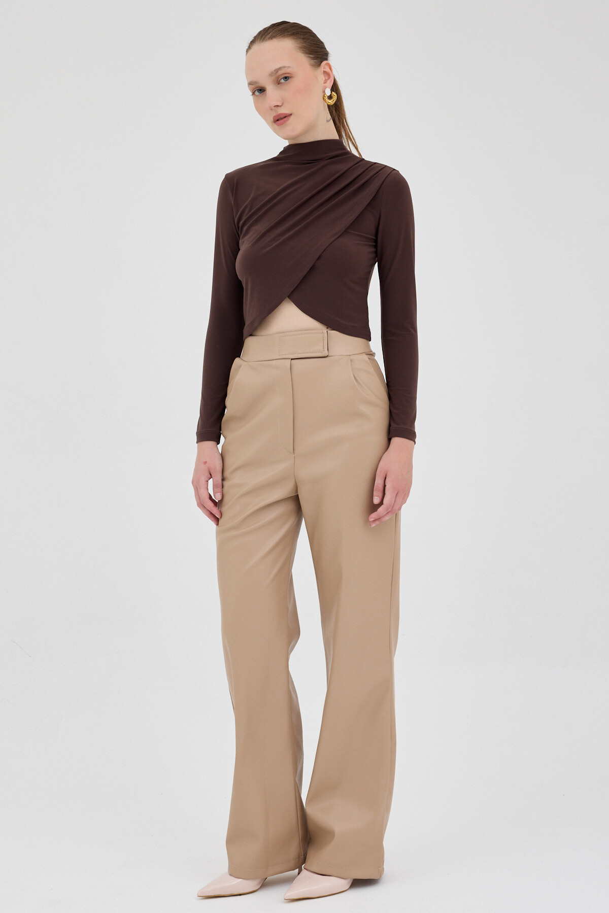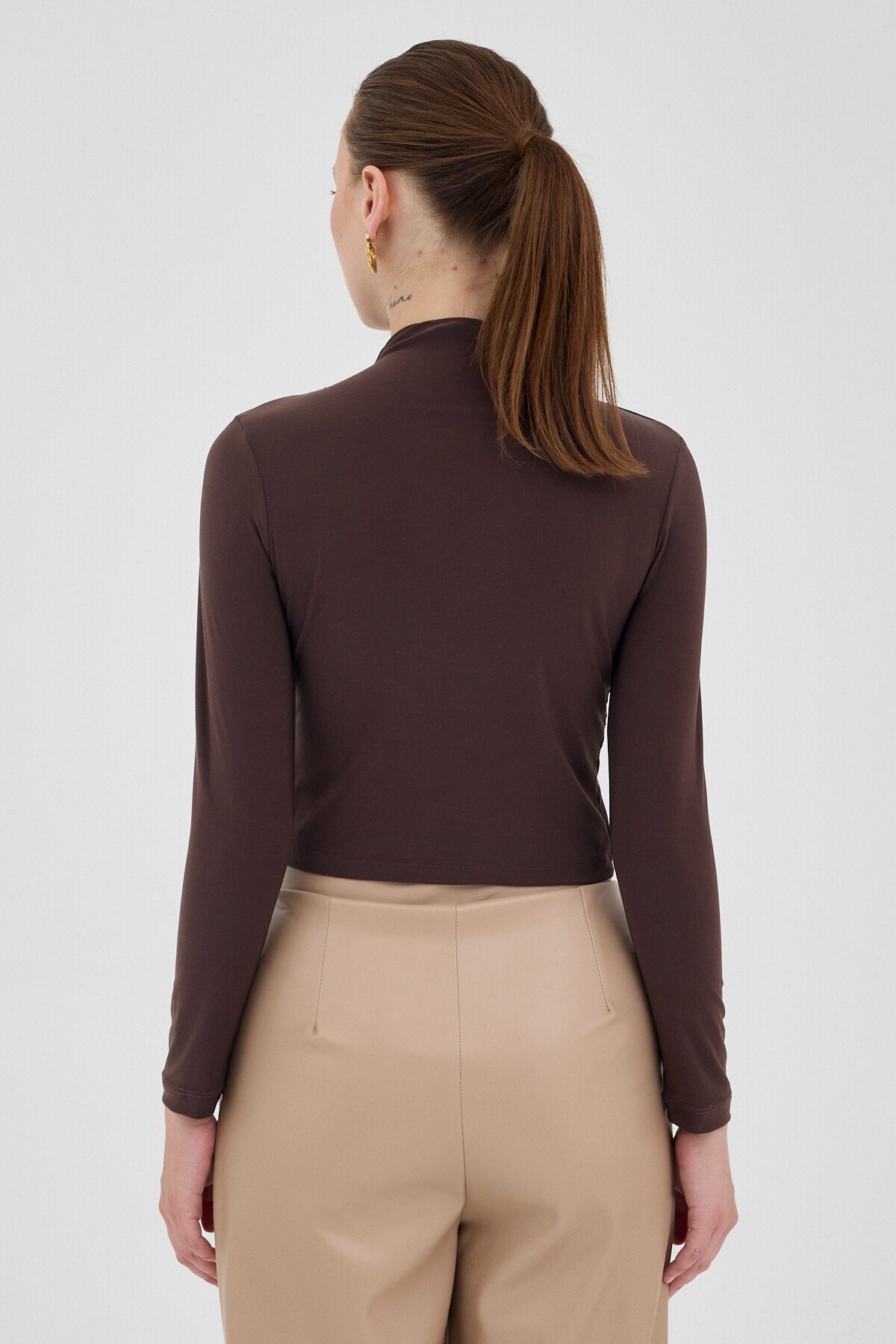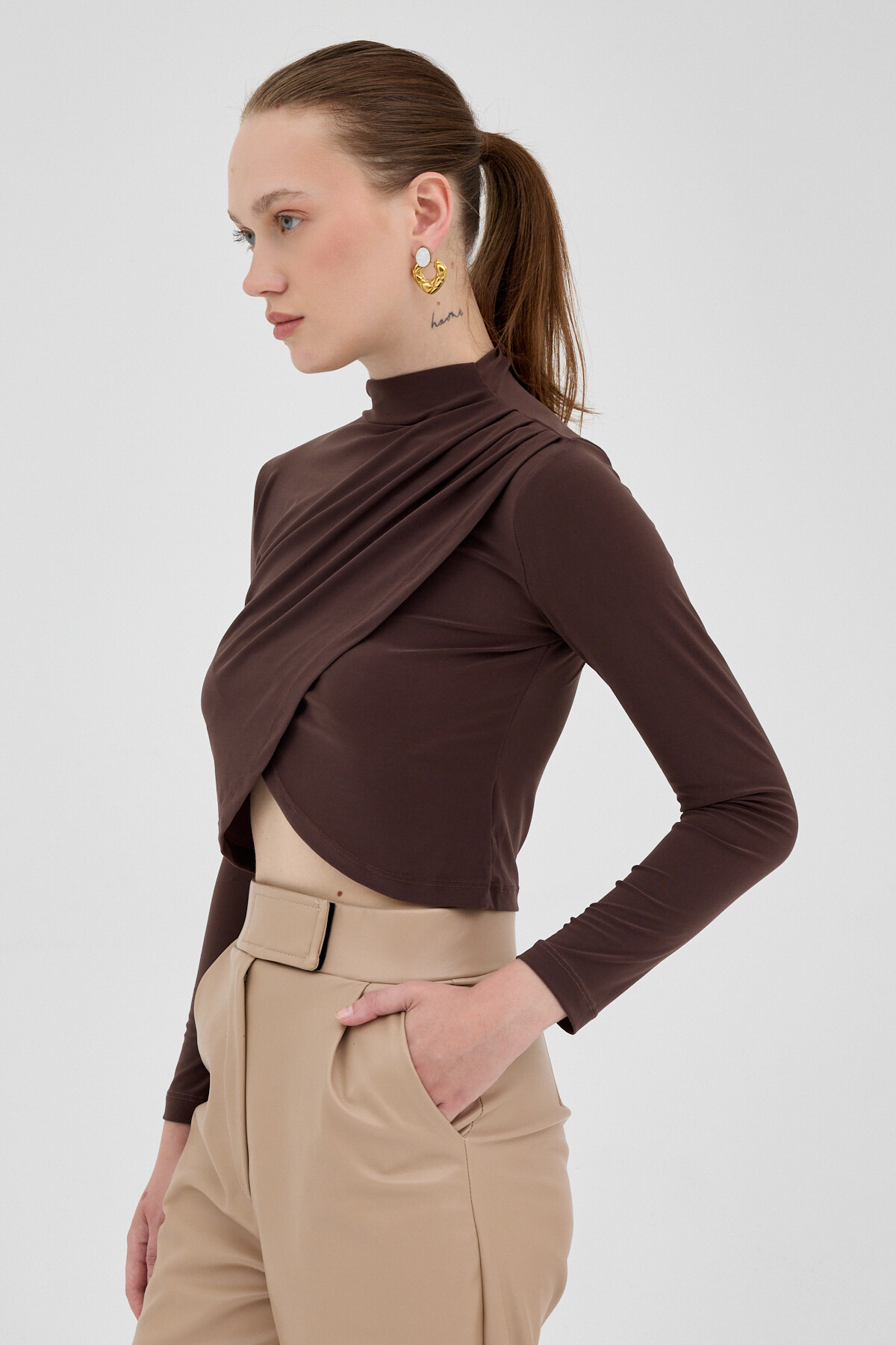 Vizon Drapeli Yüksek Yaka Uzun Kollu Bluz 2379