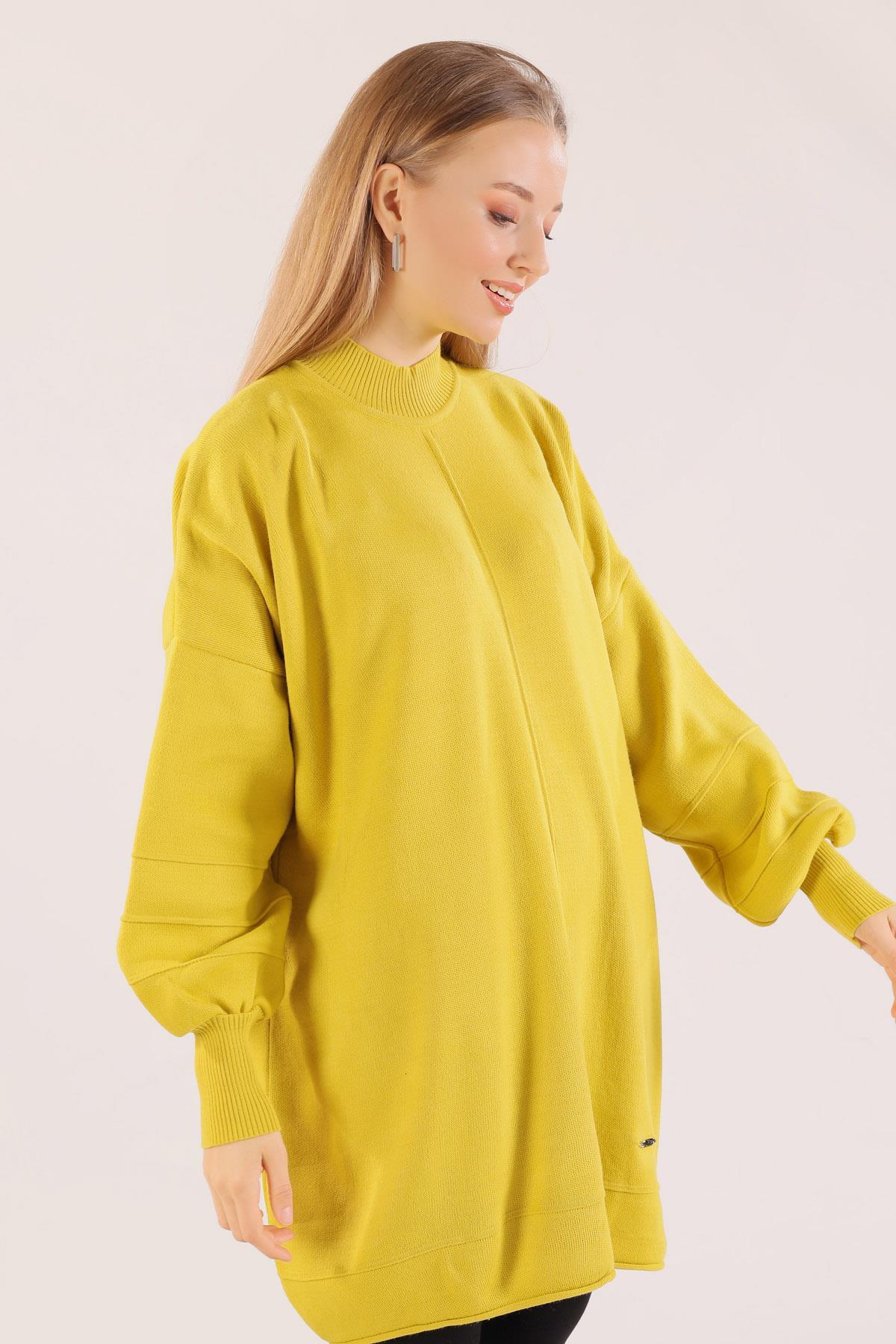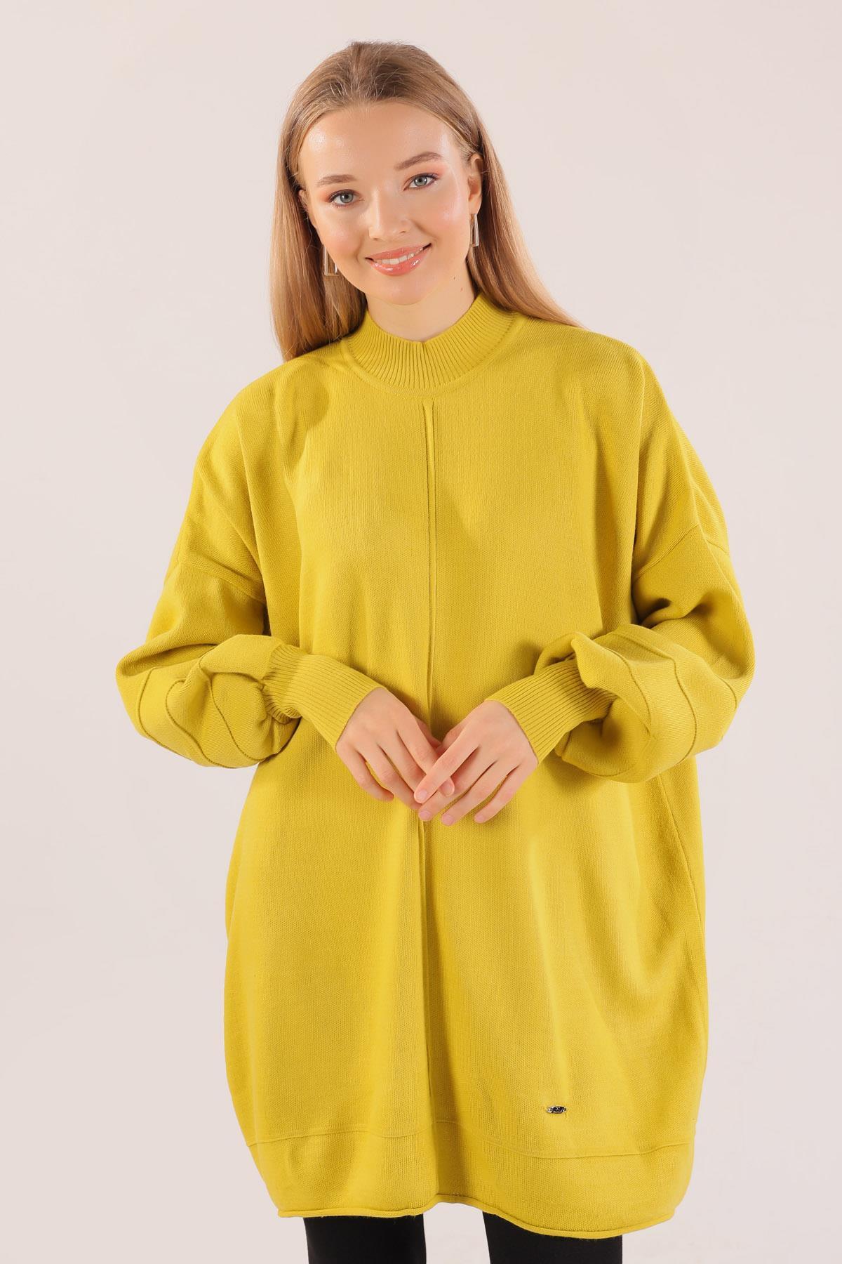 Yağ Yeşili Dikiş Detay Kazak 2394