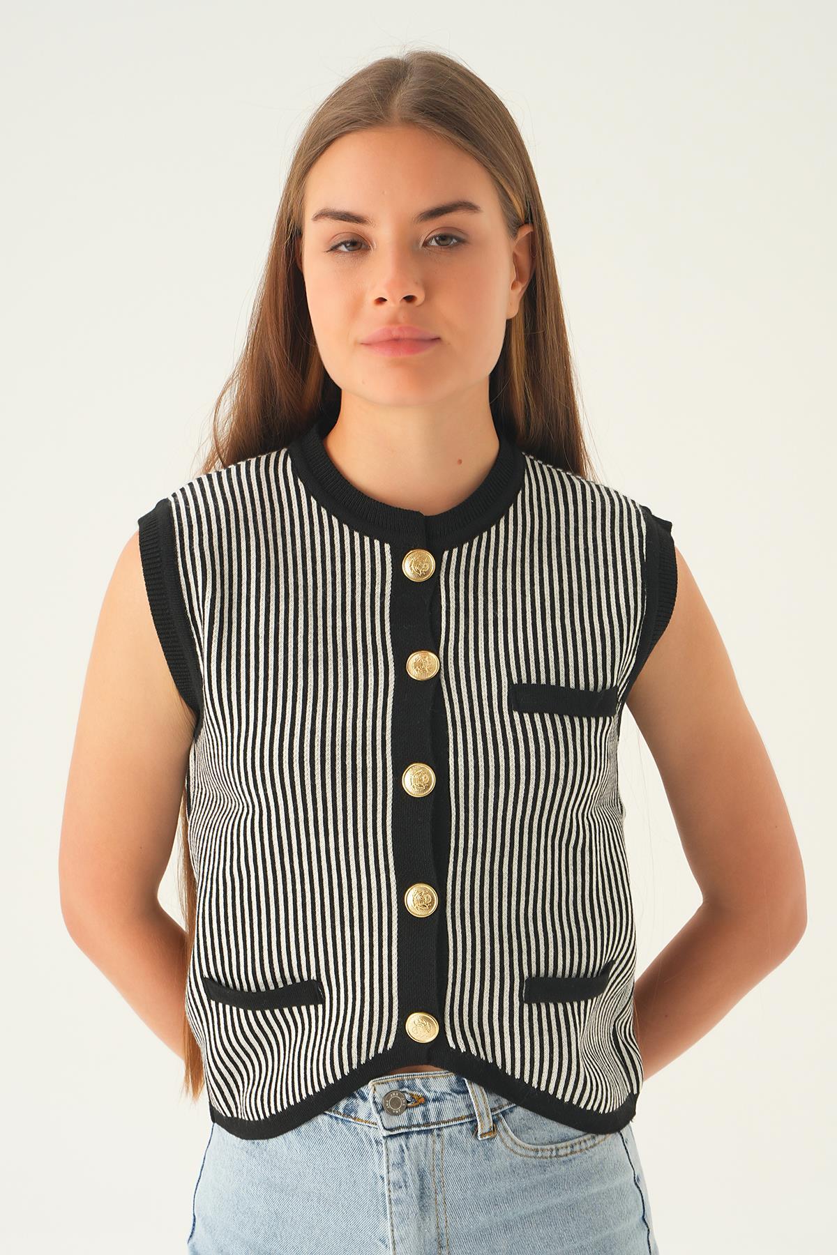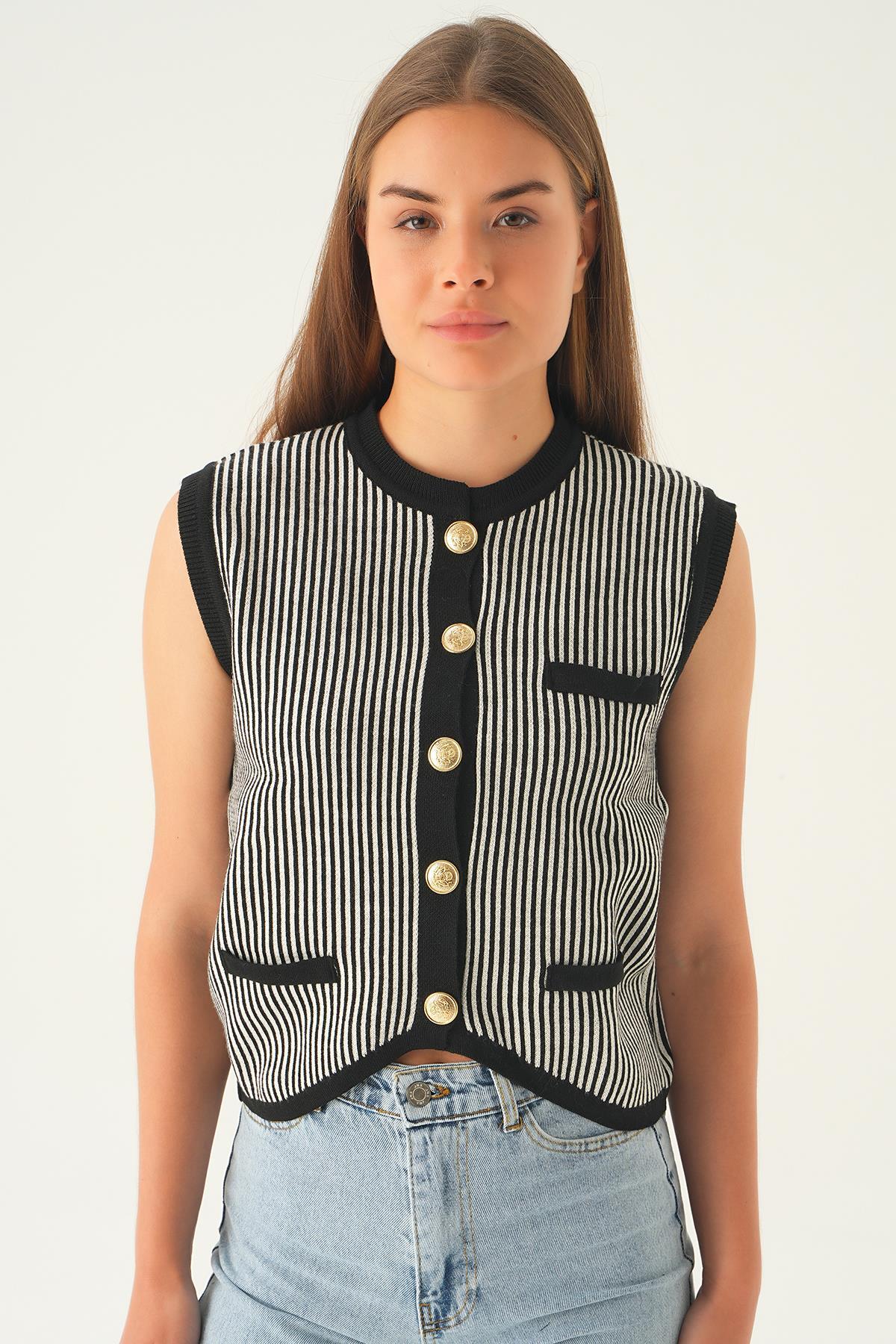 24001 Cep Detay Yelek Siyah