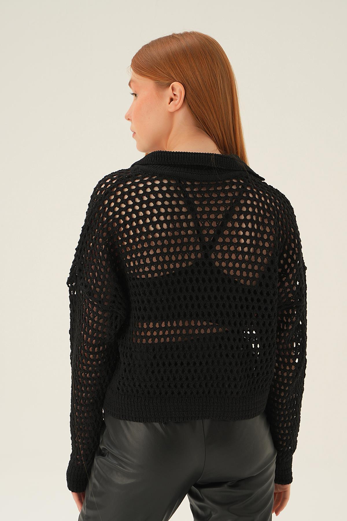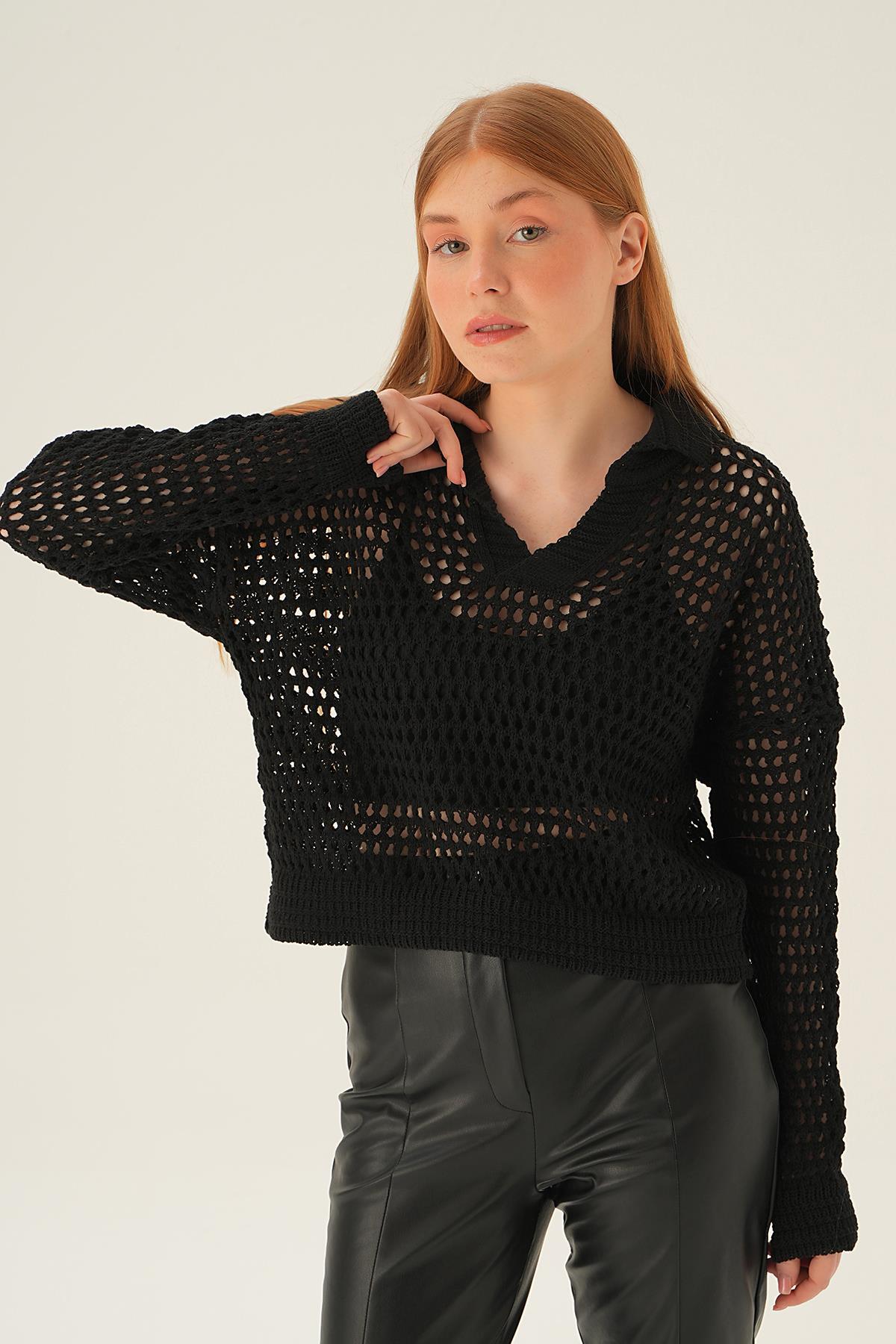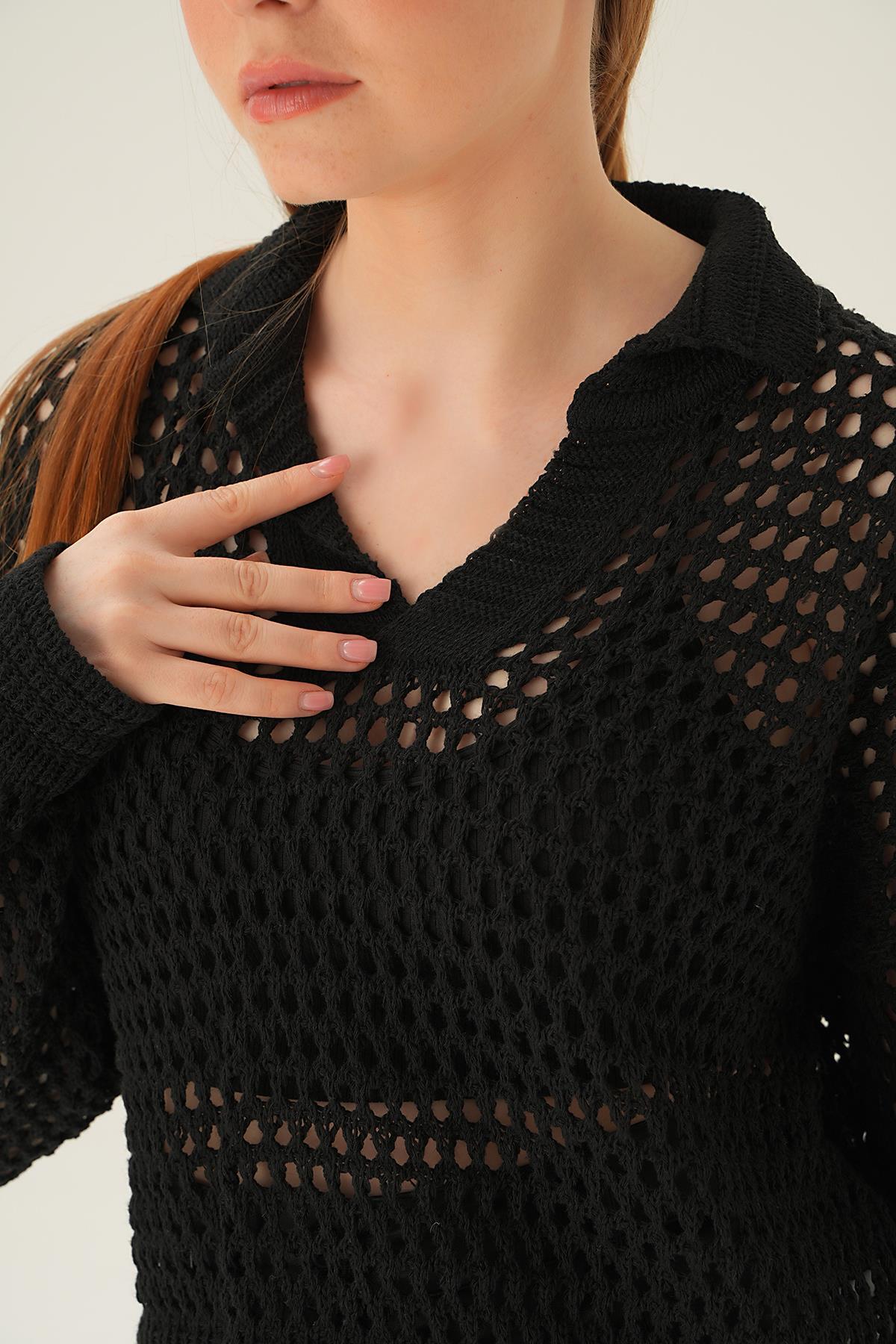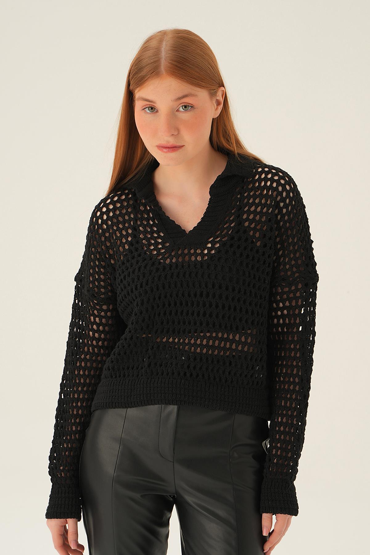 Siyah Polo Yaka Ajurlu Bluz 2402