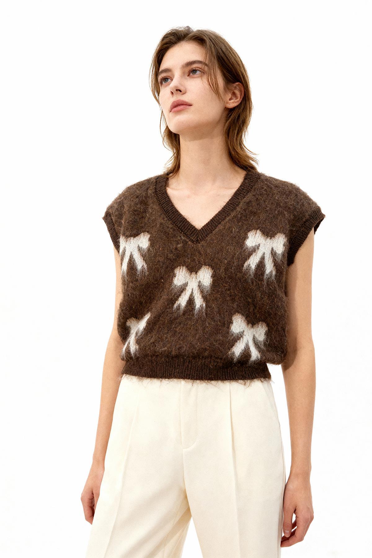 2292 V Yaka Sıfır Kol Süveter Acı Kahve