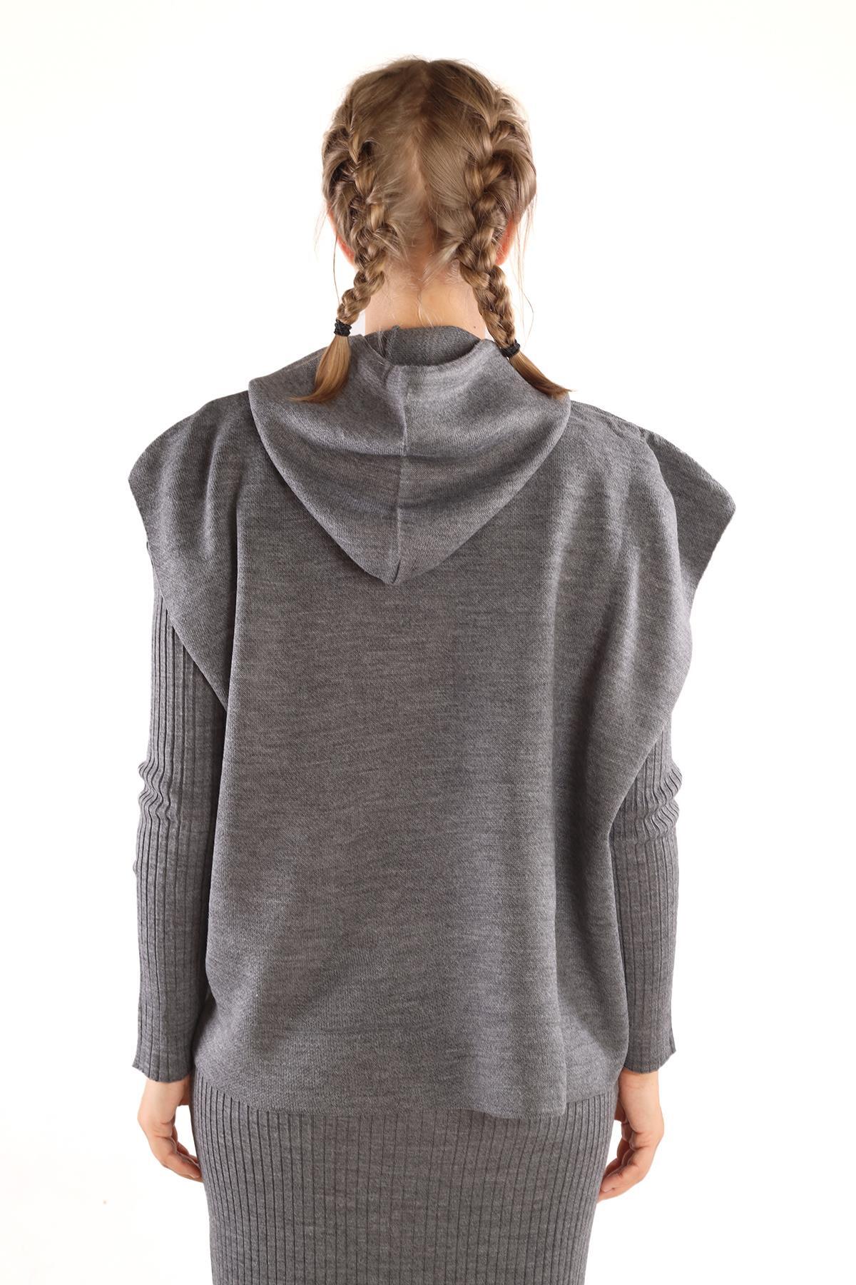 24114 Kapüşonlu Elbise Takım Füme