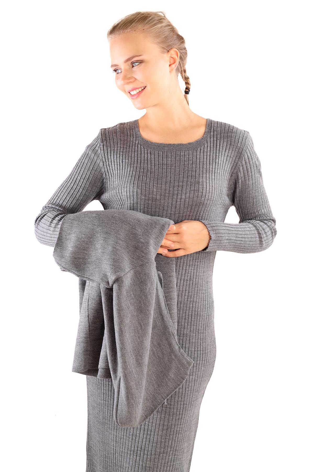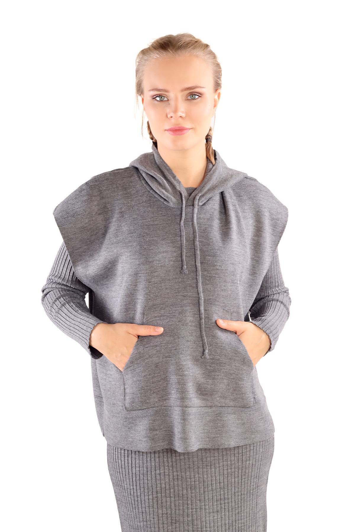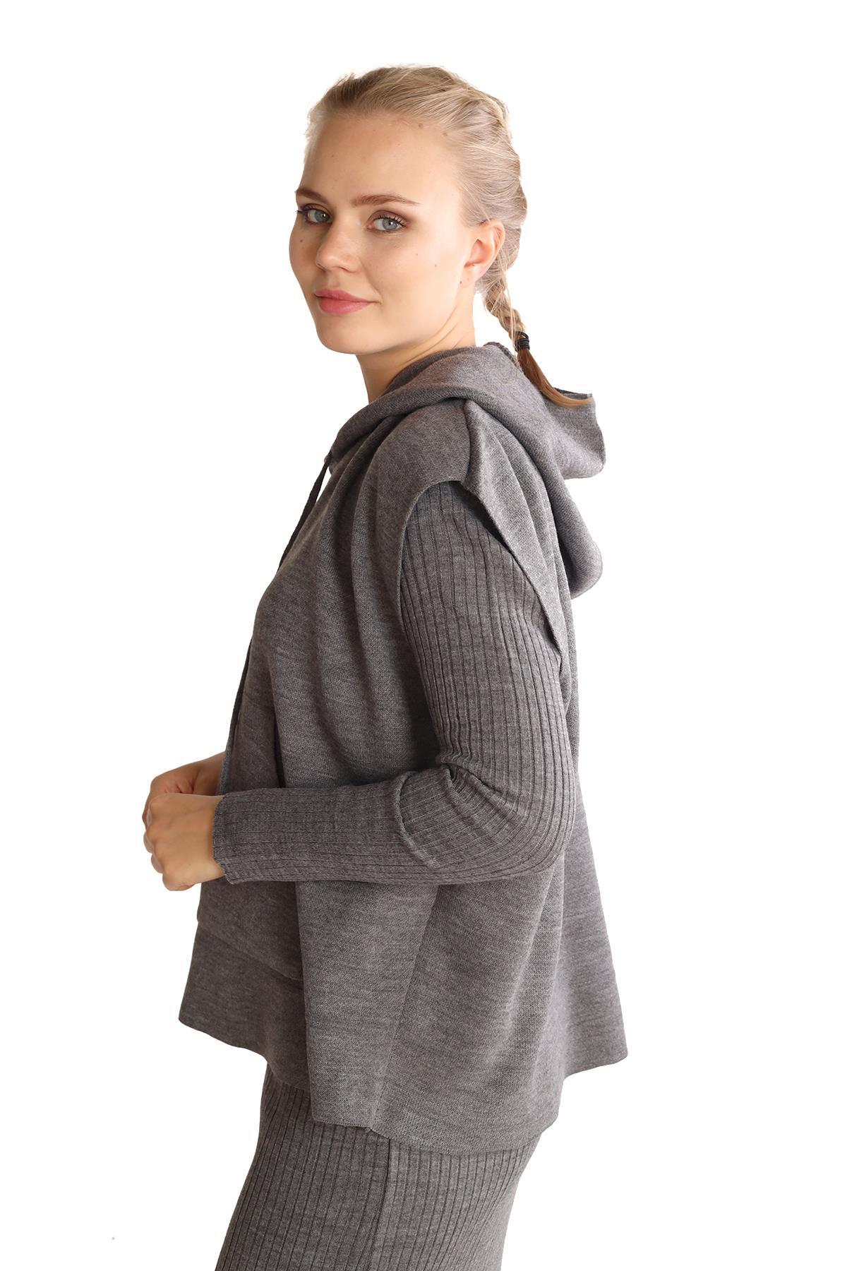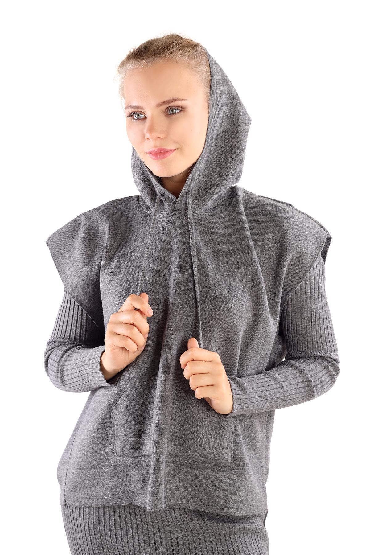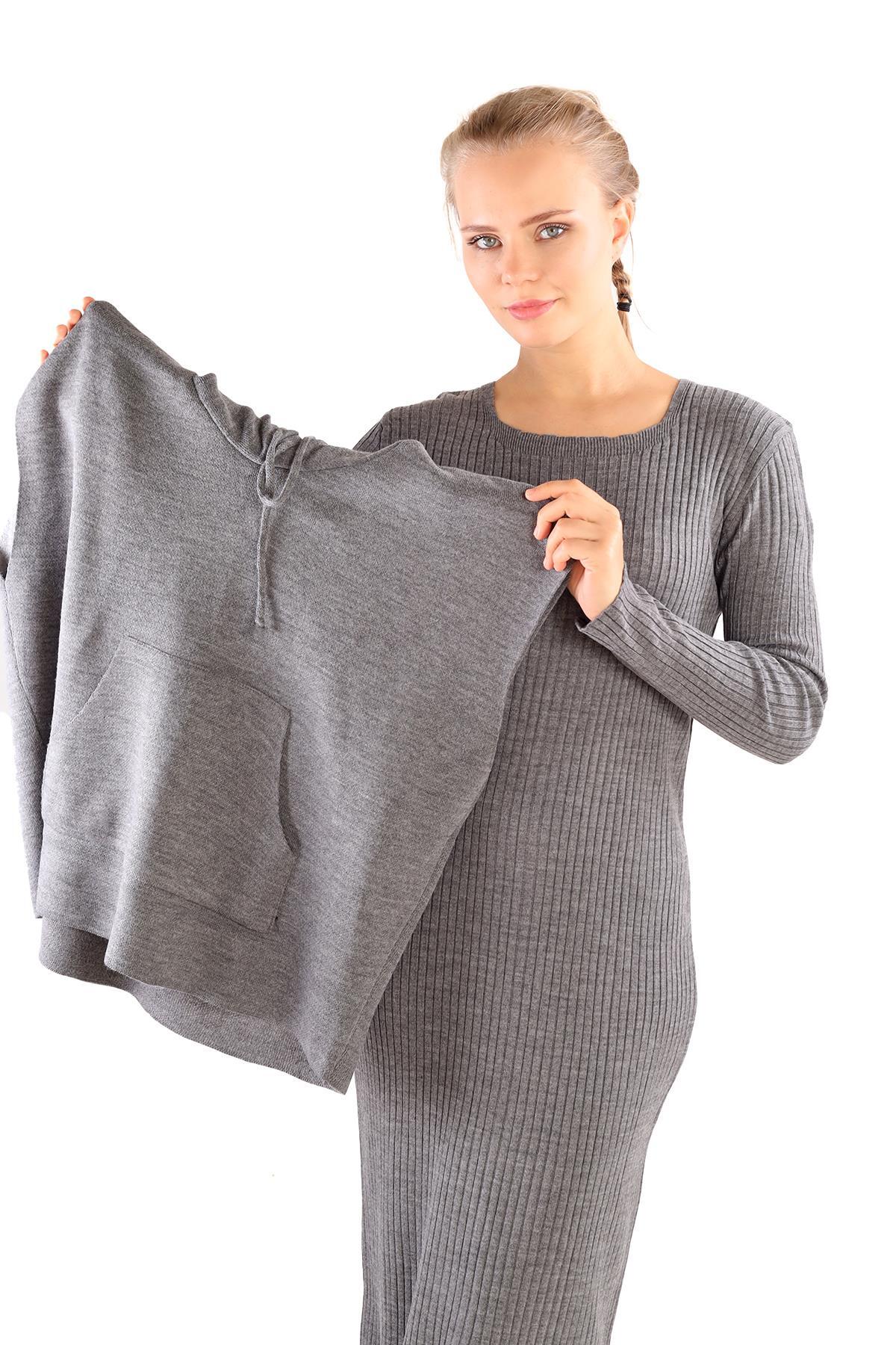 Füme Kapüşonlu Elbise Takım 24114