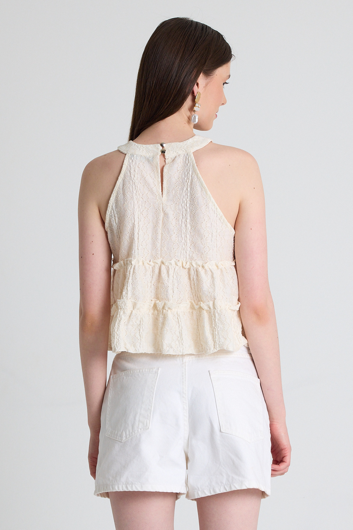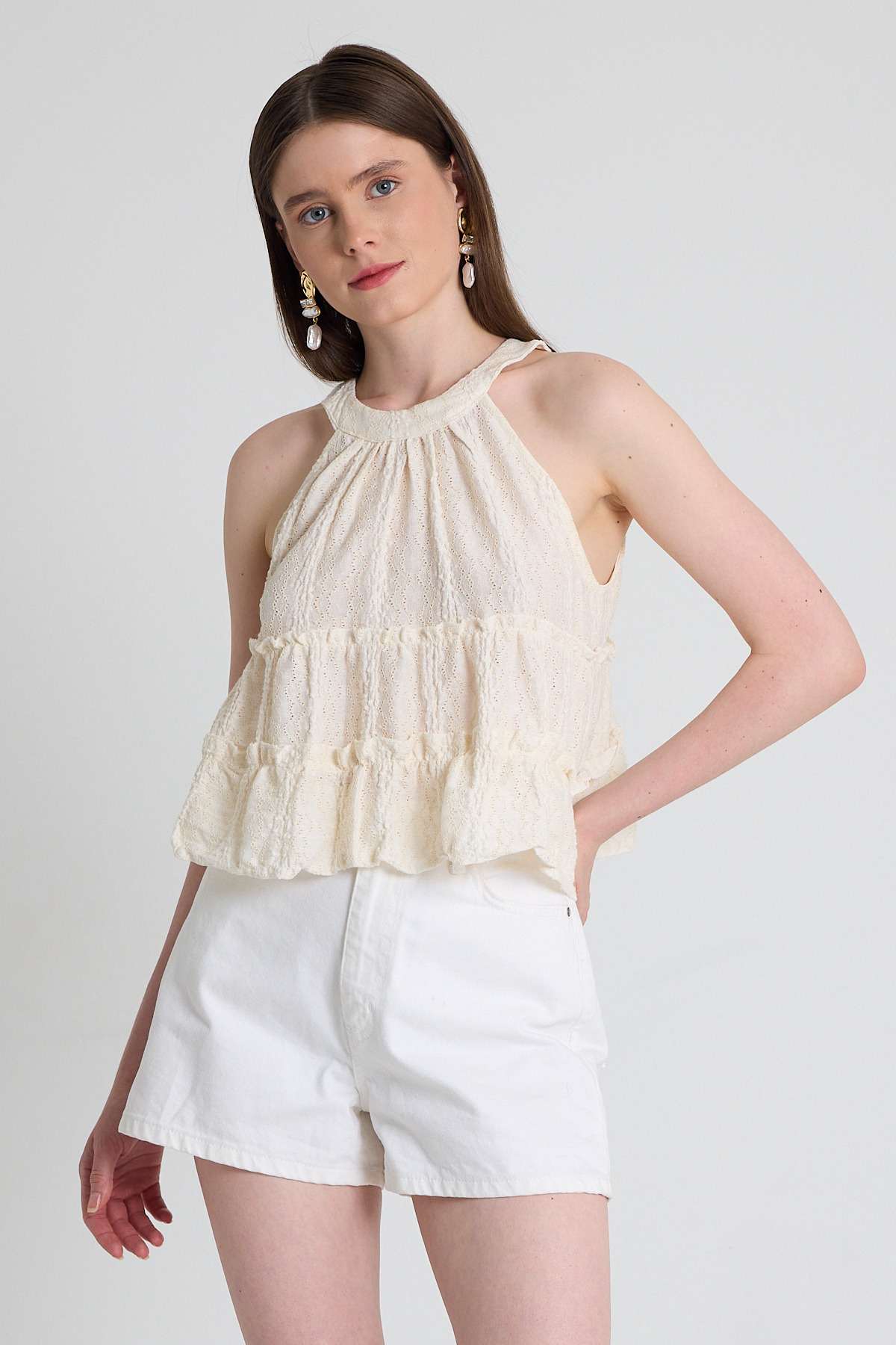 Bej Keten Görünümlü Kat Kat Bluz 241189