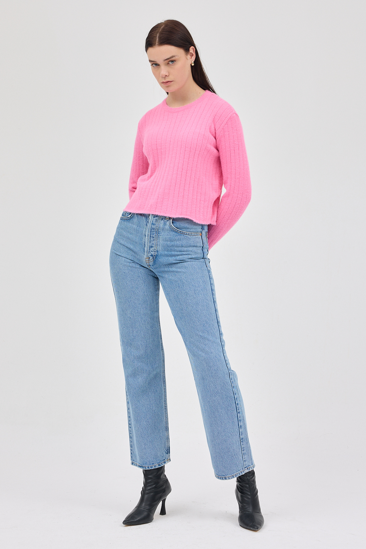 Pembe Bisiklet Yaka Uzun Kol Kadın Kazak 2412