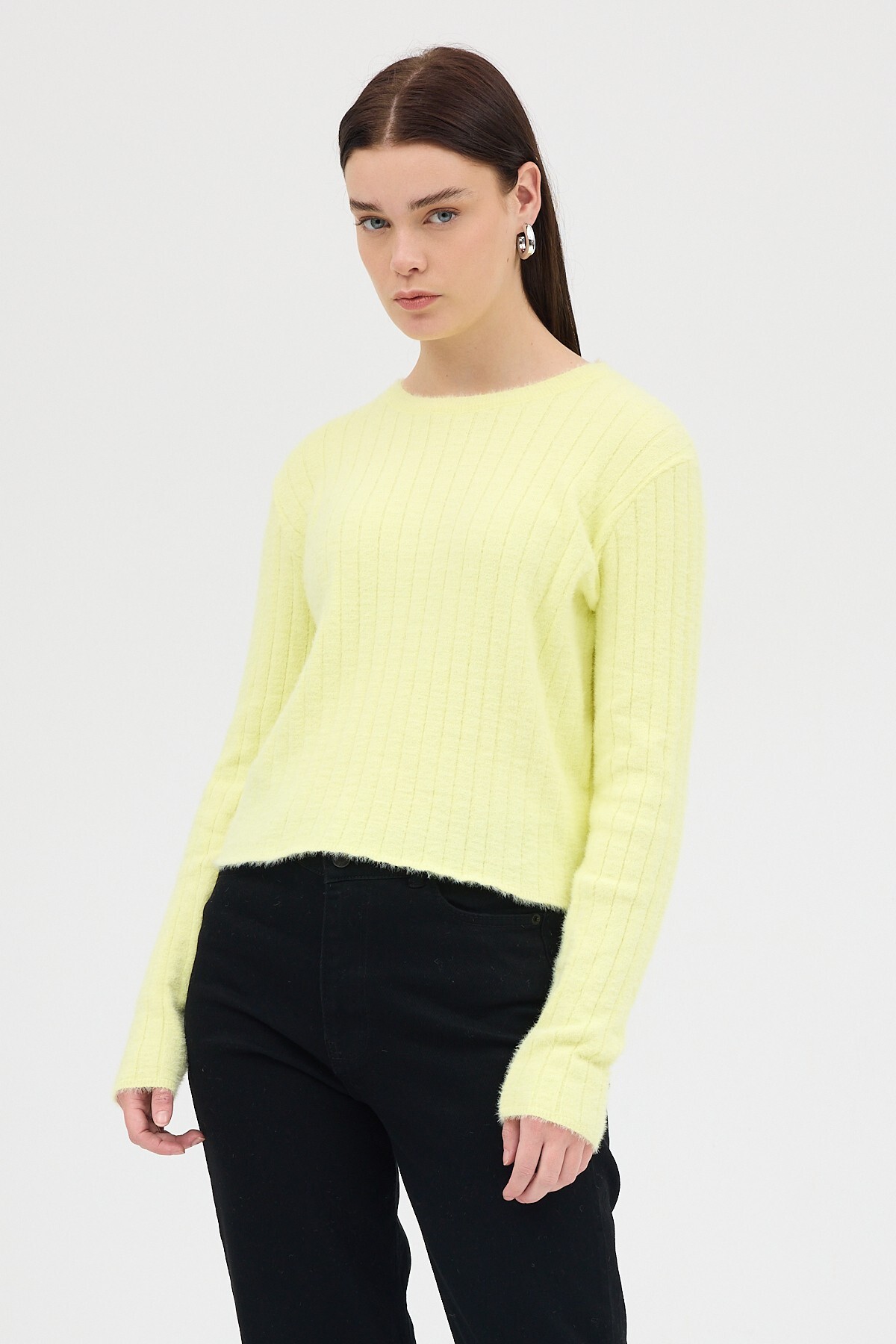 Sarı Bisiklet Yaka Uzun Kol Kadın Kazak 2412