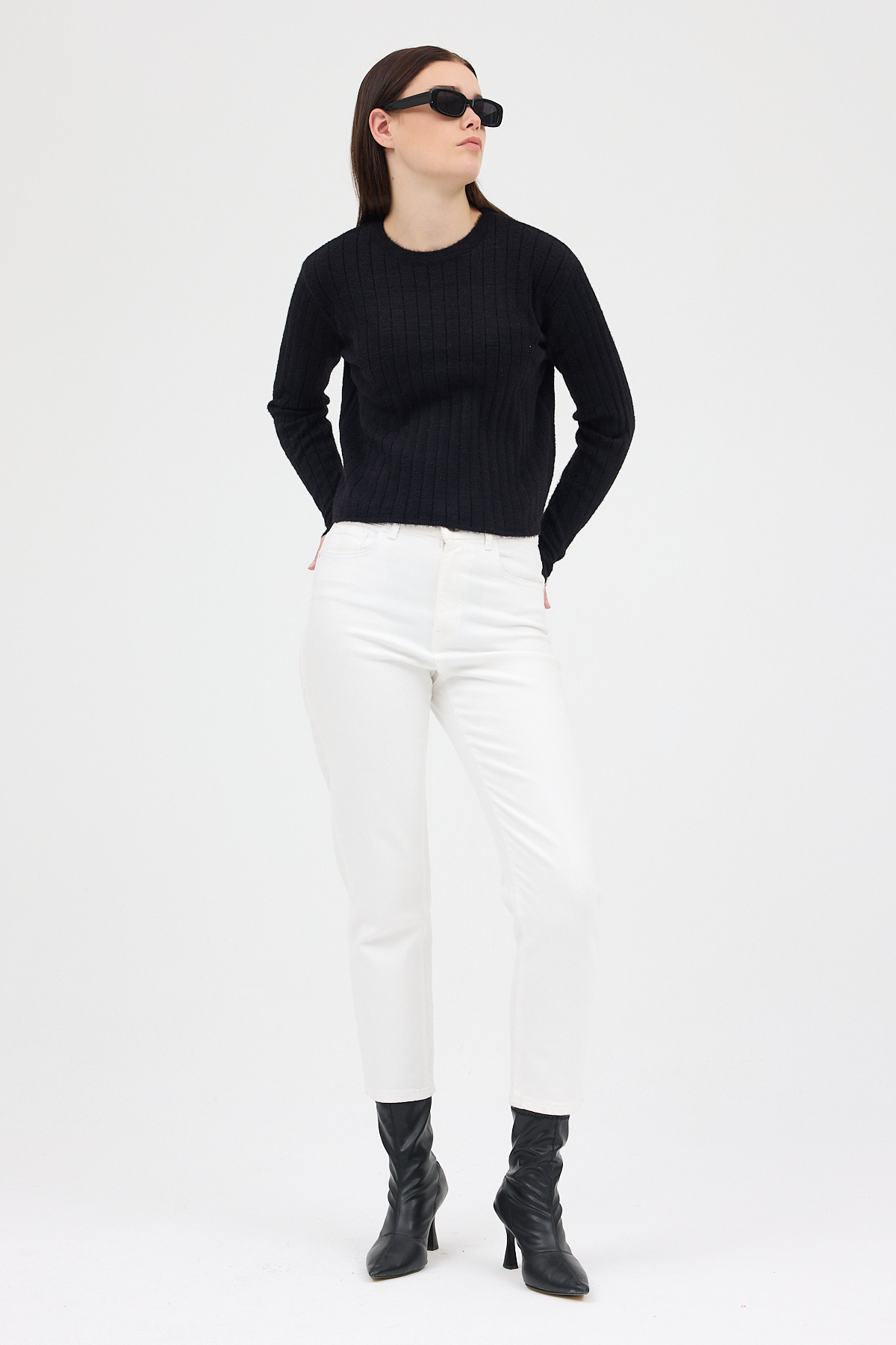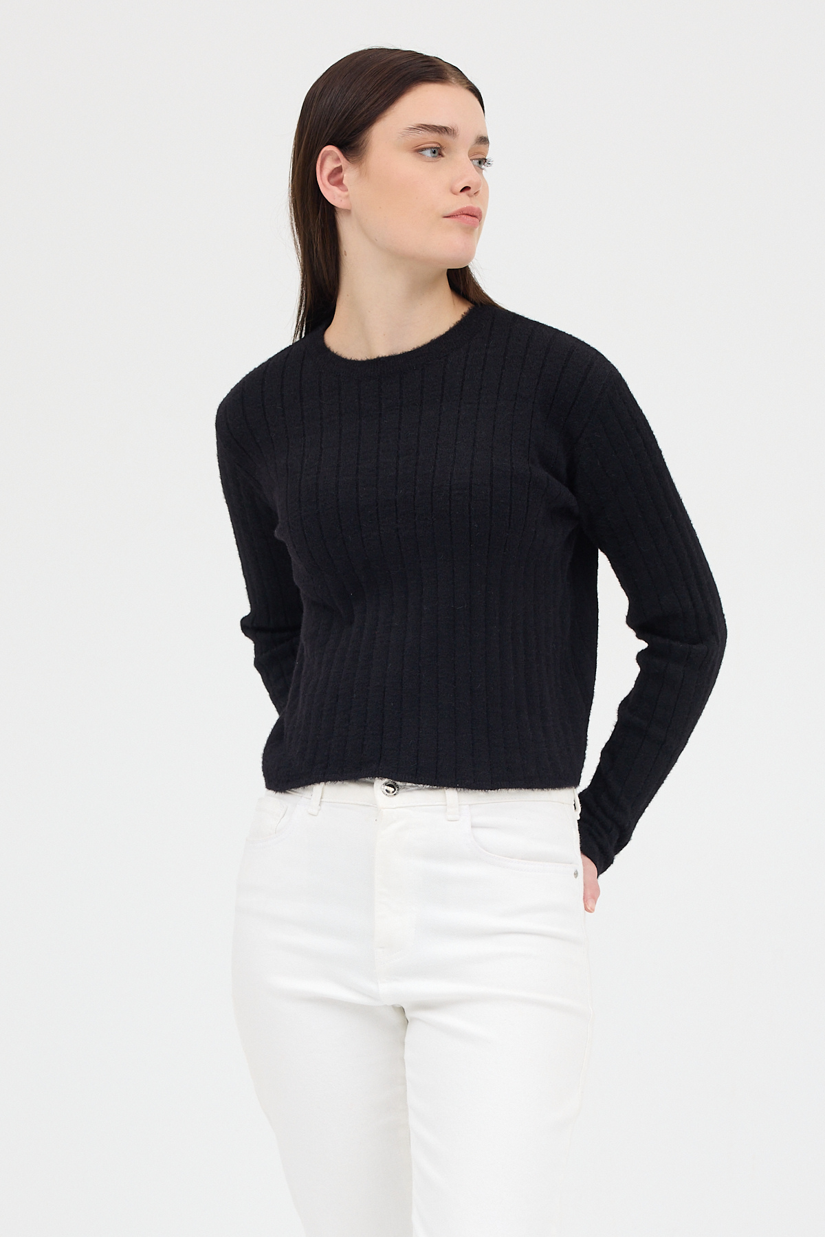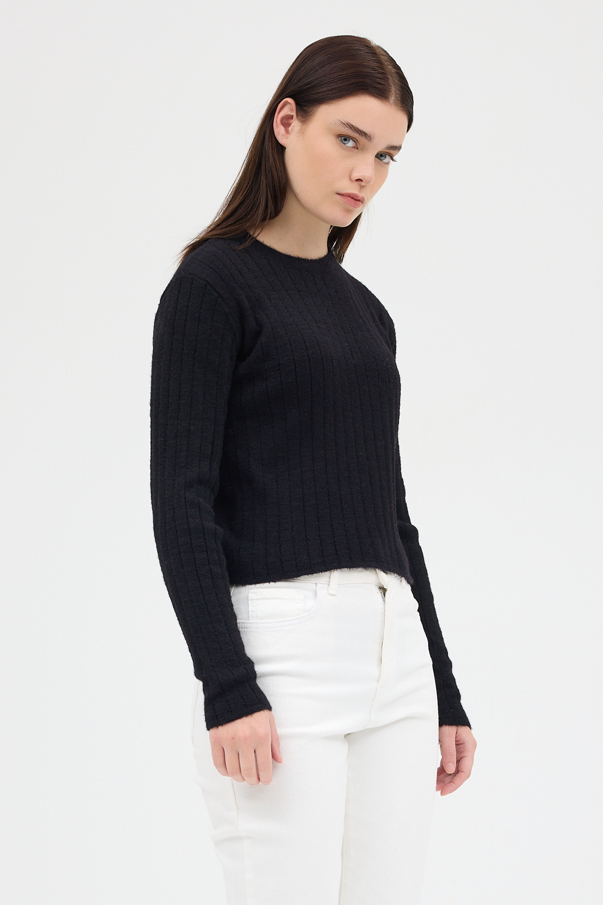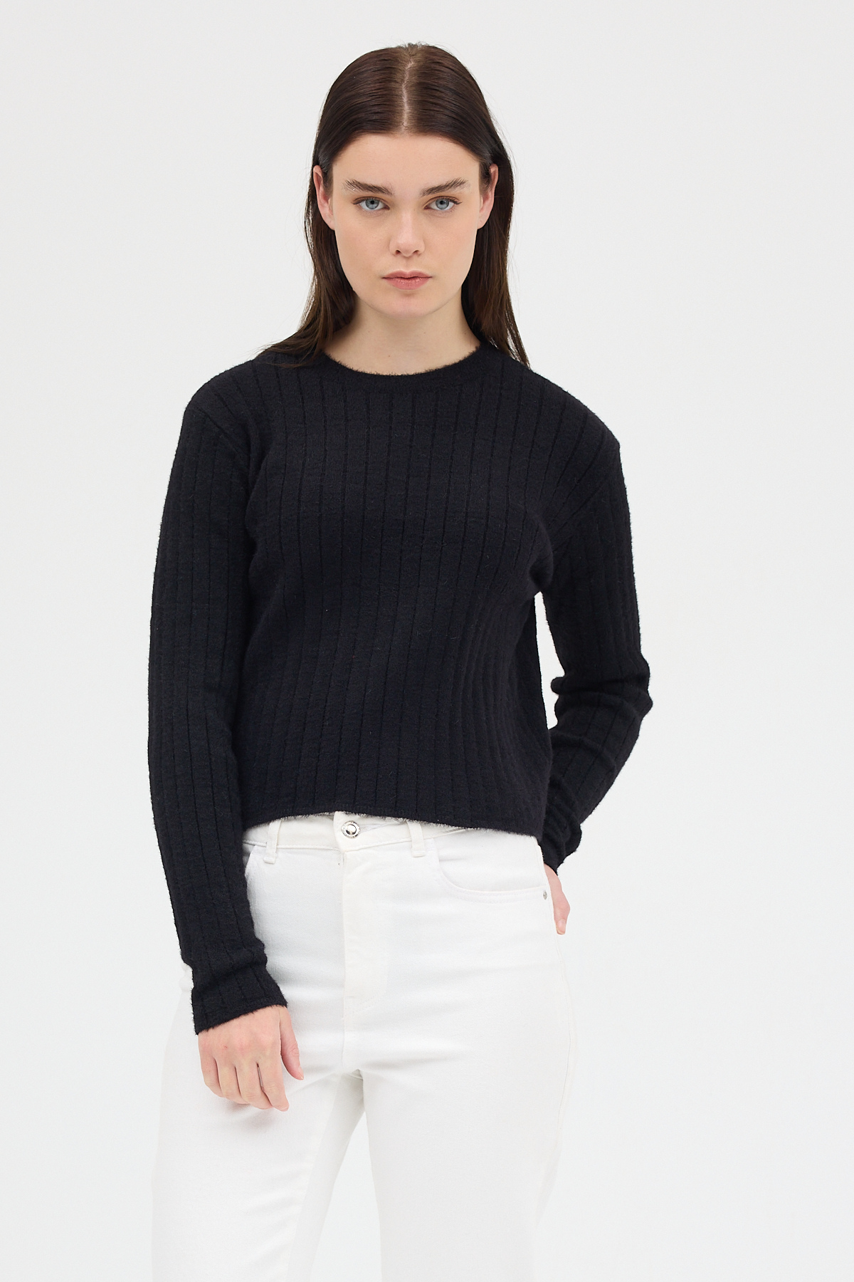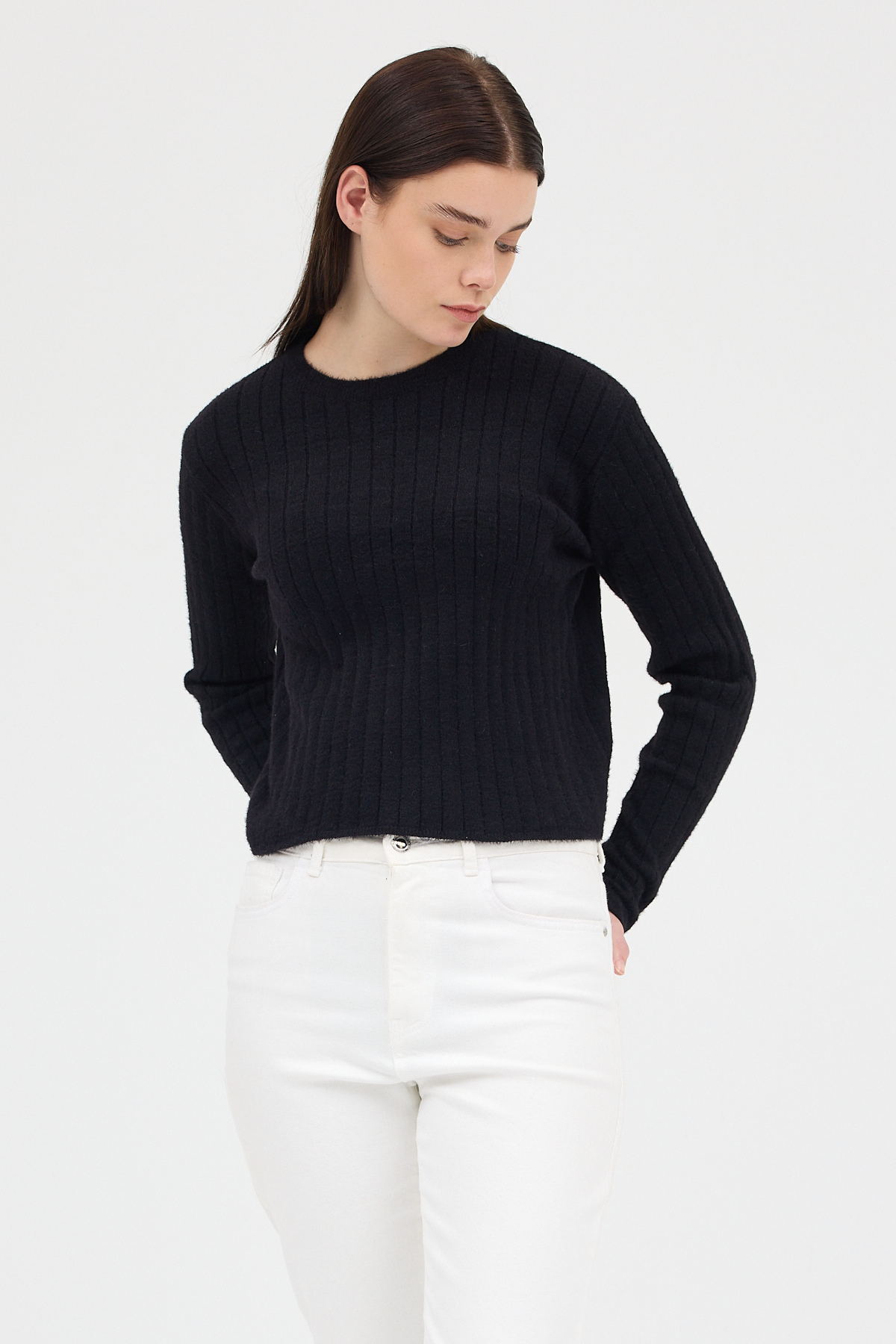 Siyah Bisiklet Yaka Uzun Kol Kadın Kazak 2412