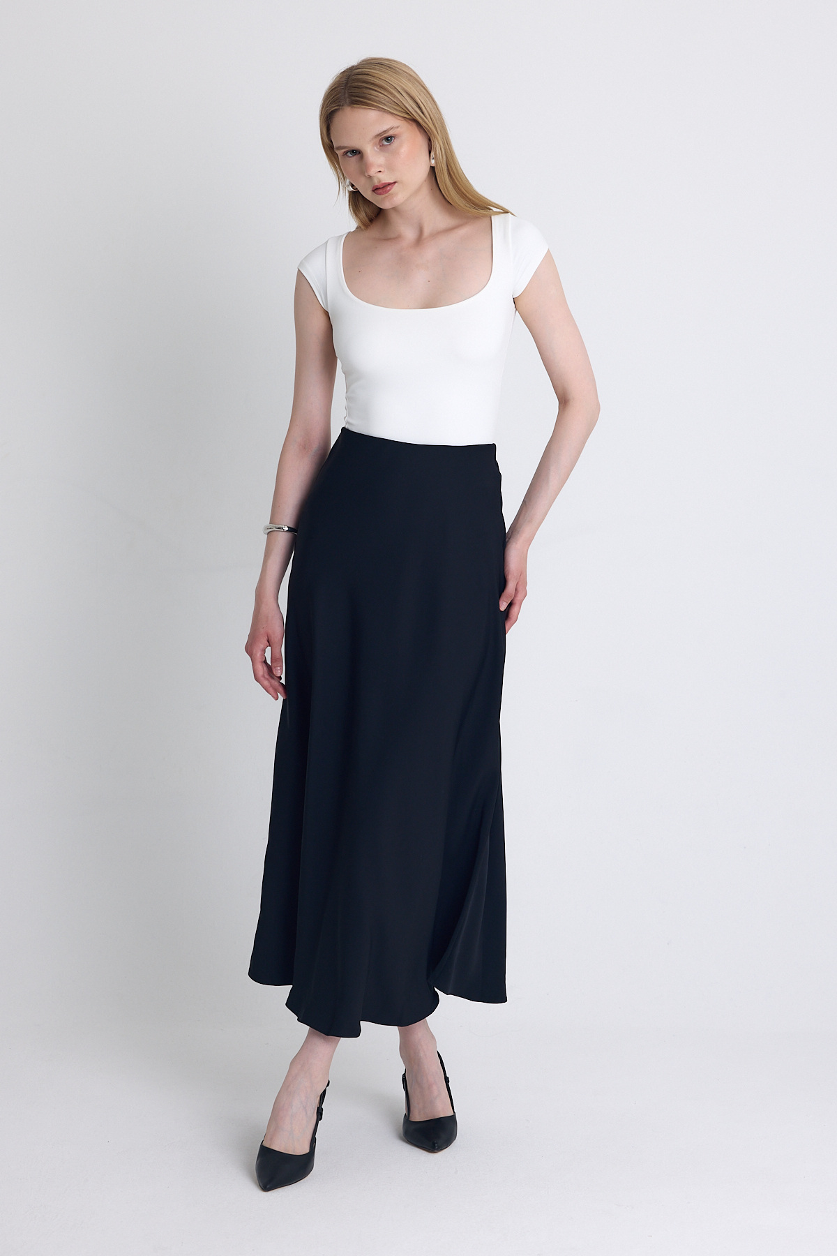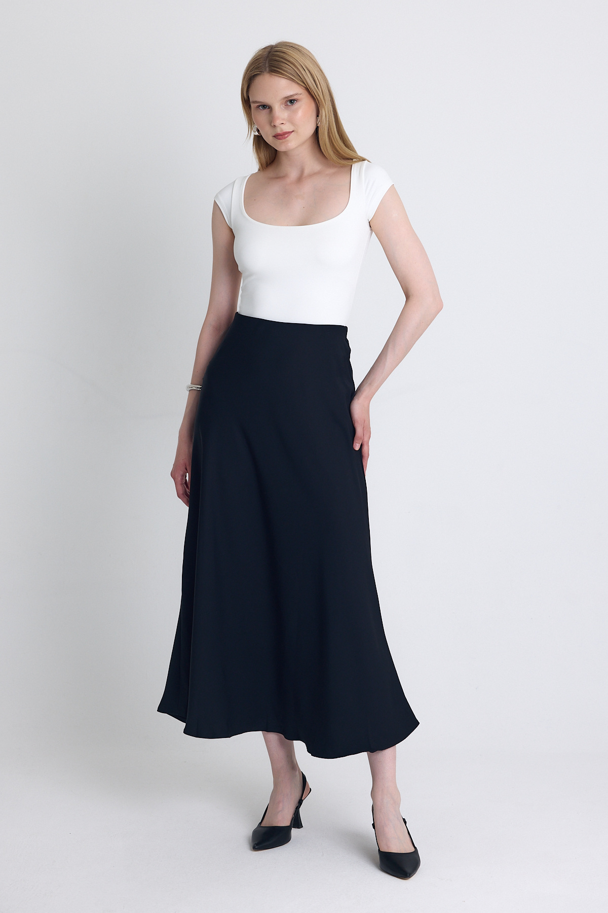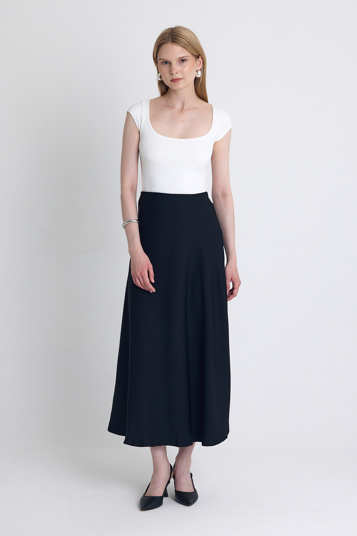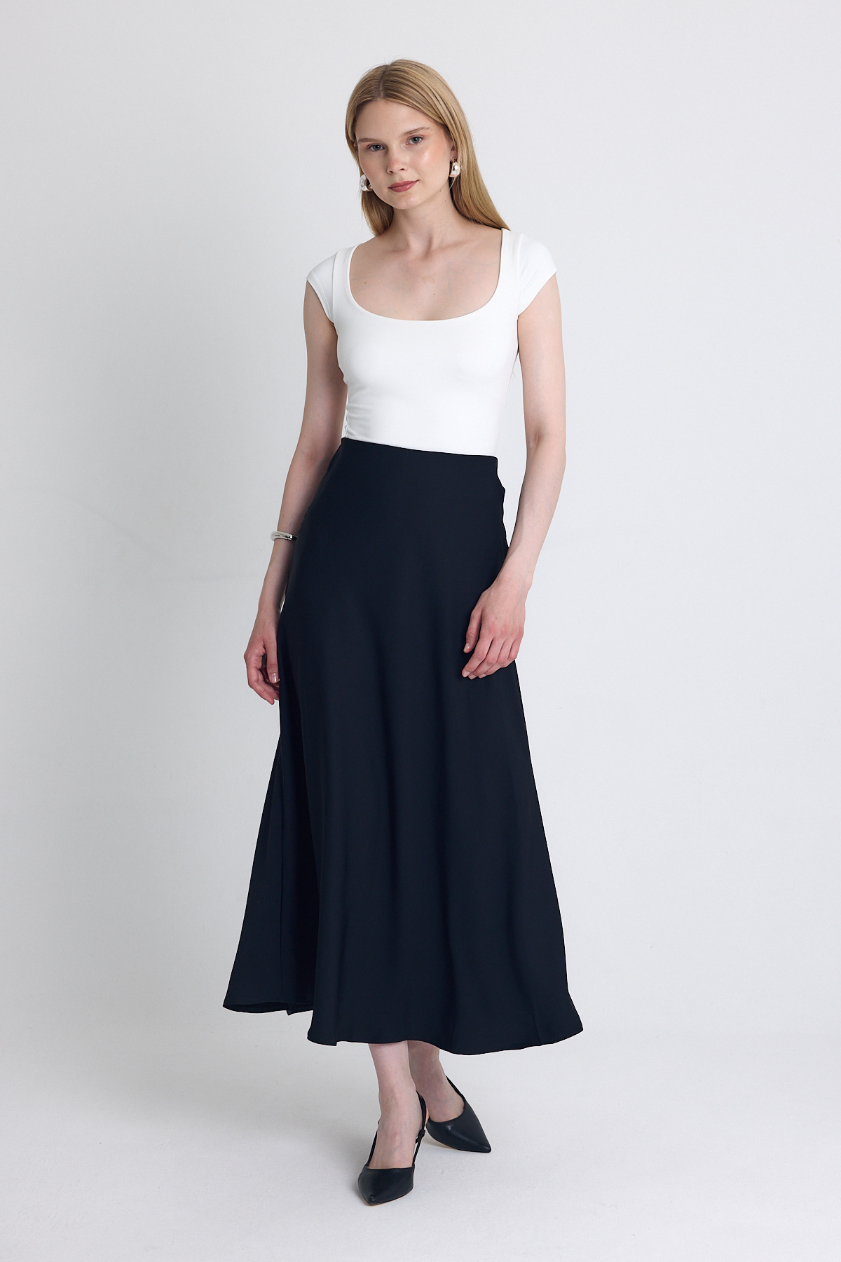 Siyah Yüksek Bel Midi A Kesim Etek 241312