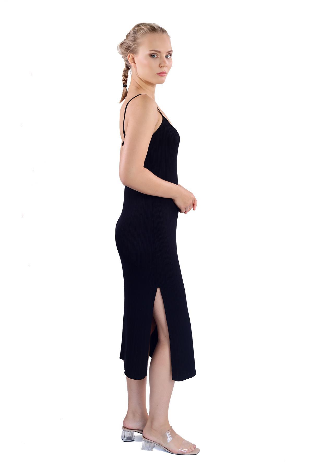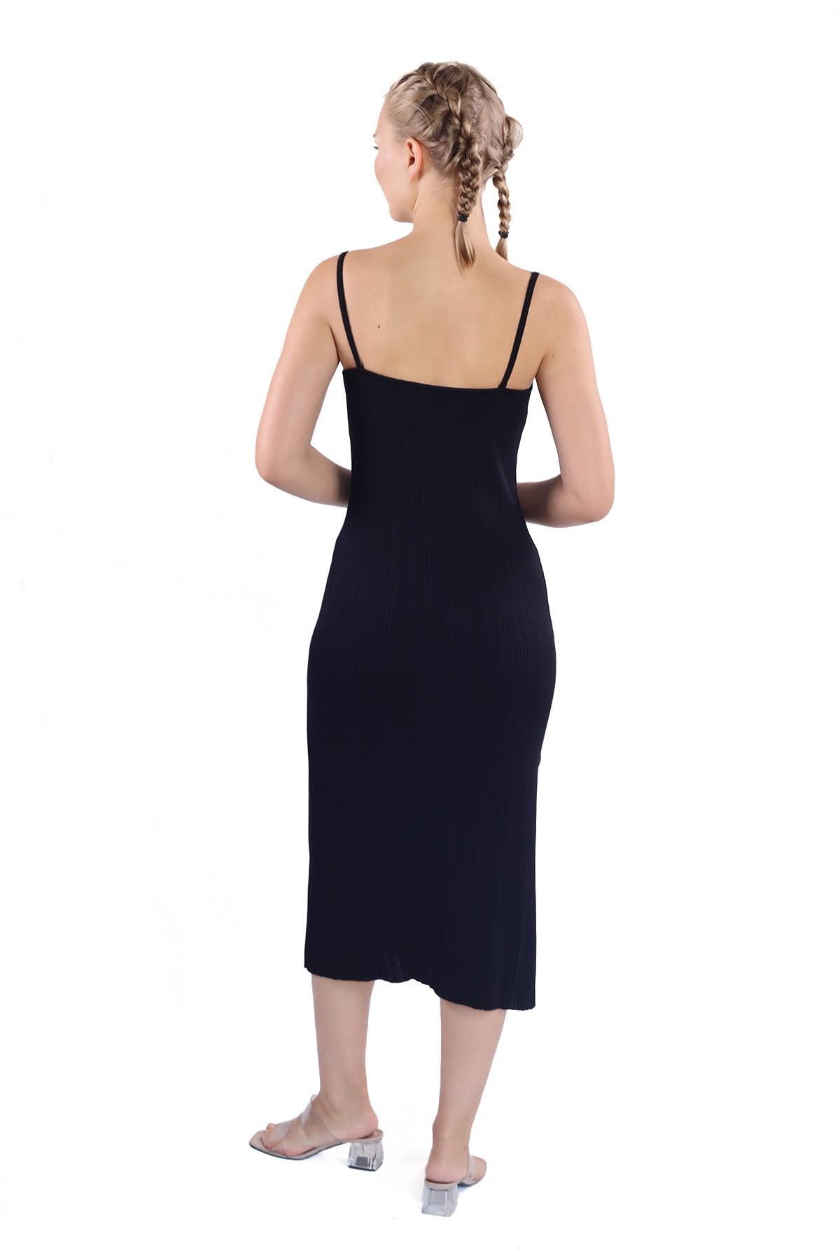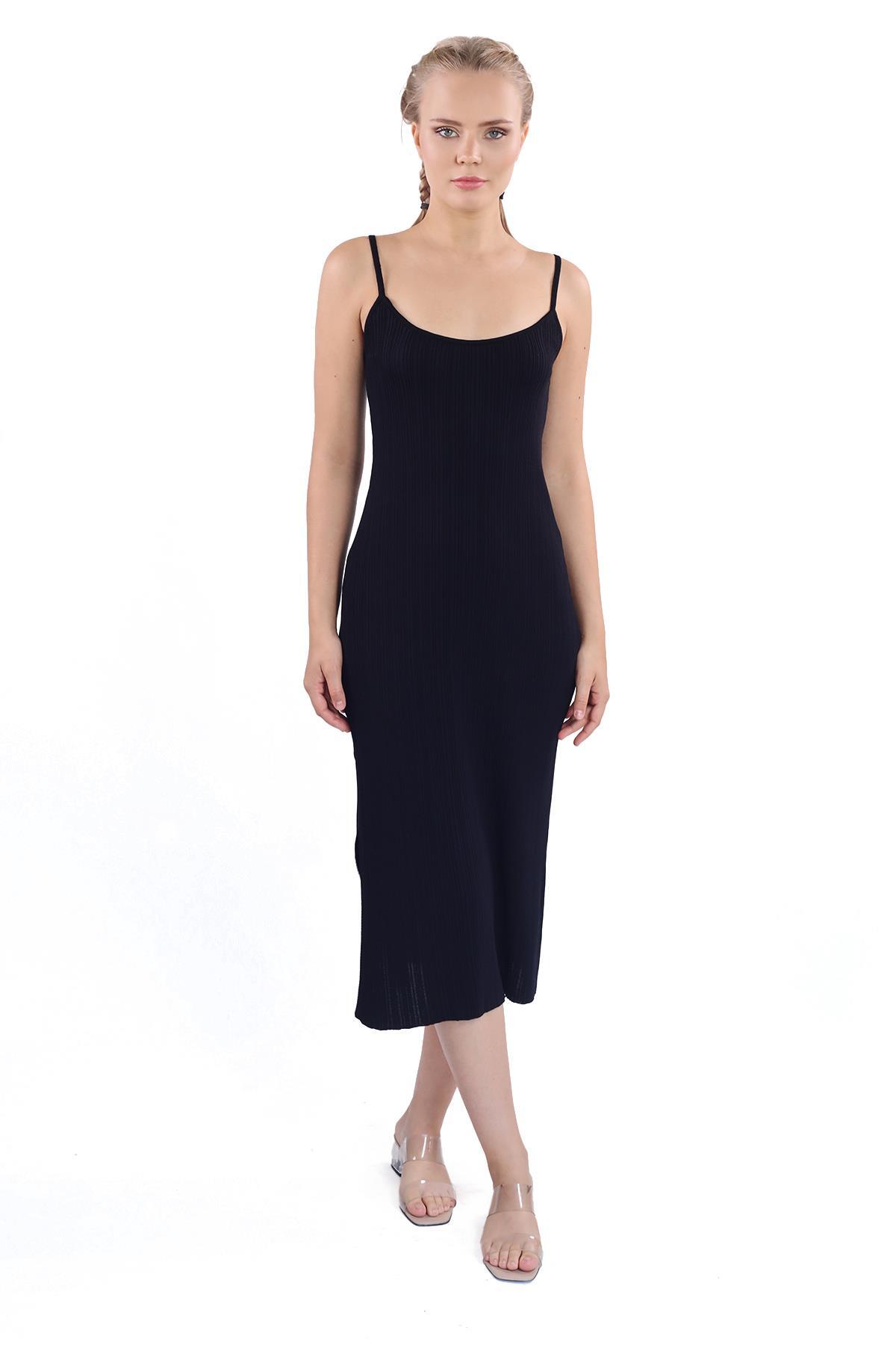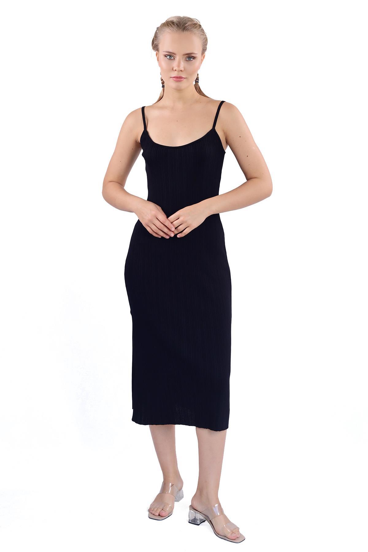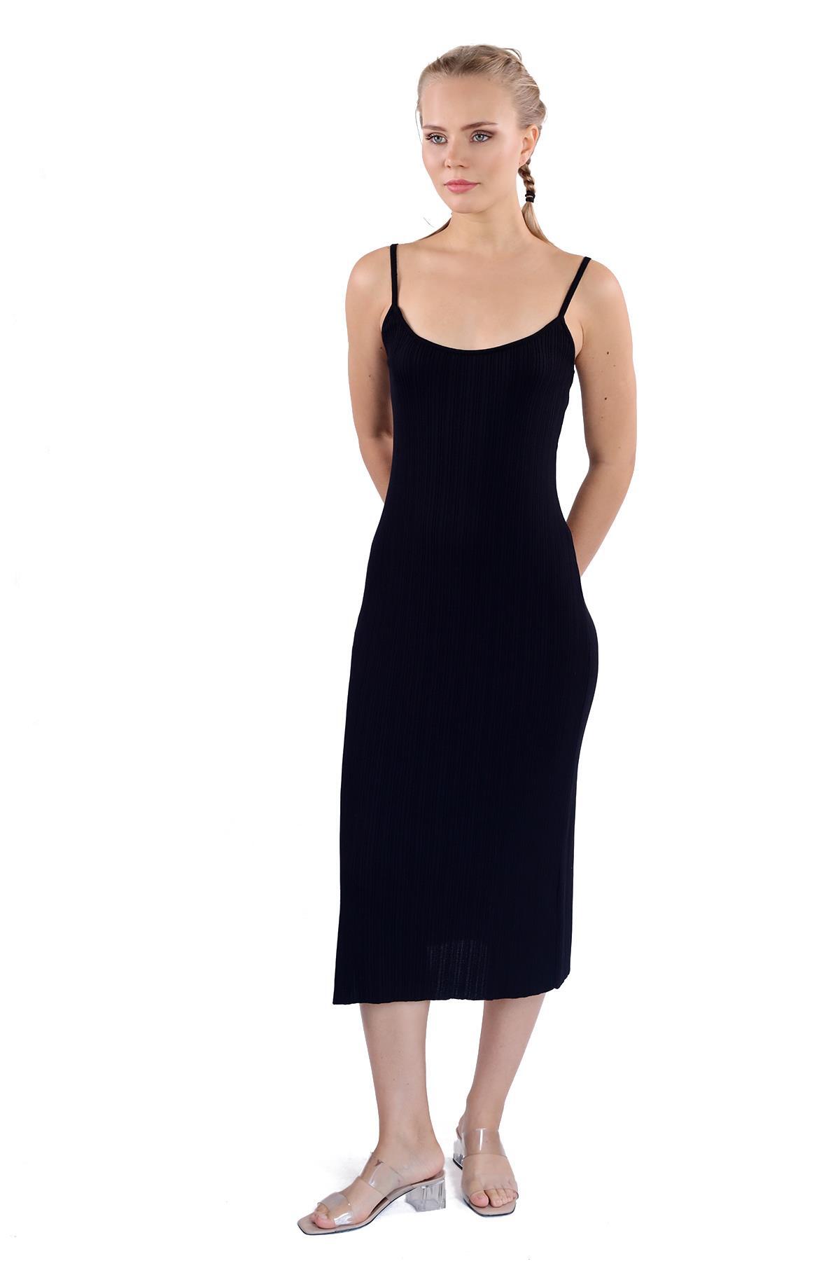 Siyah Askılı Triko Elbise 24147
