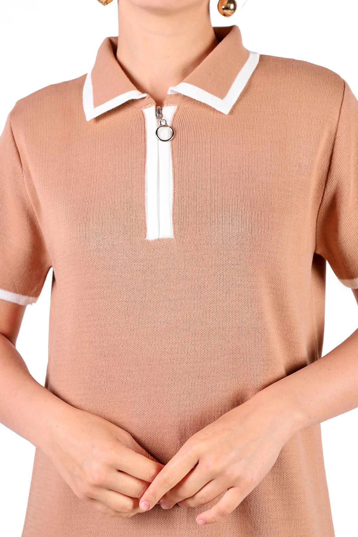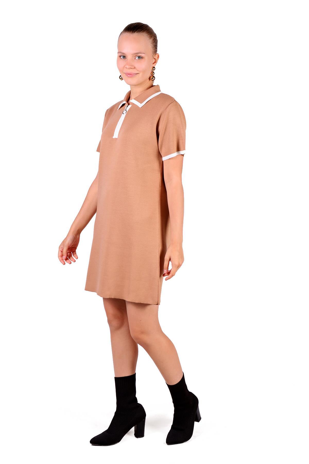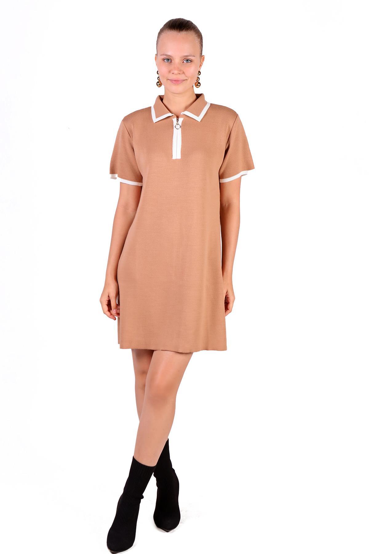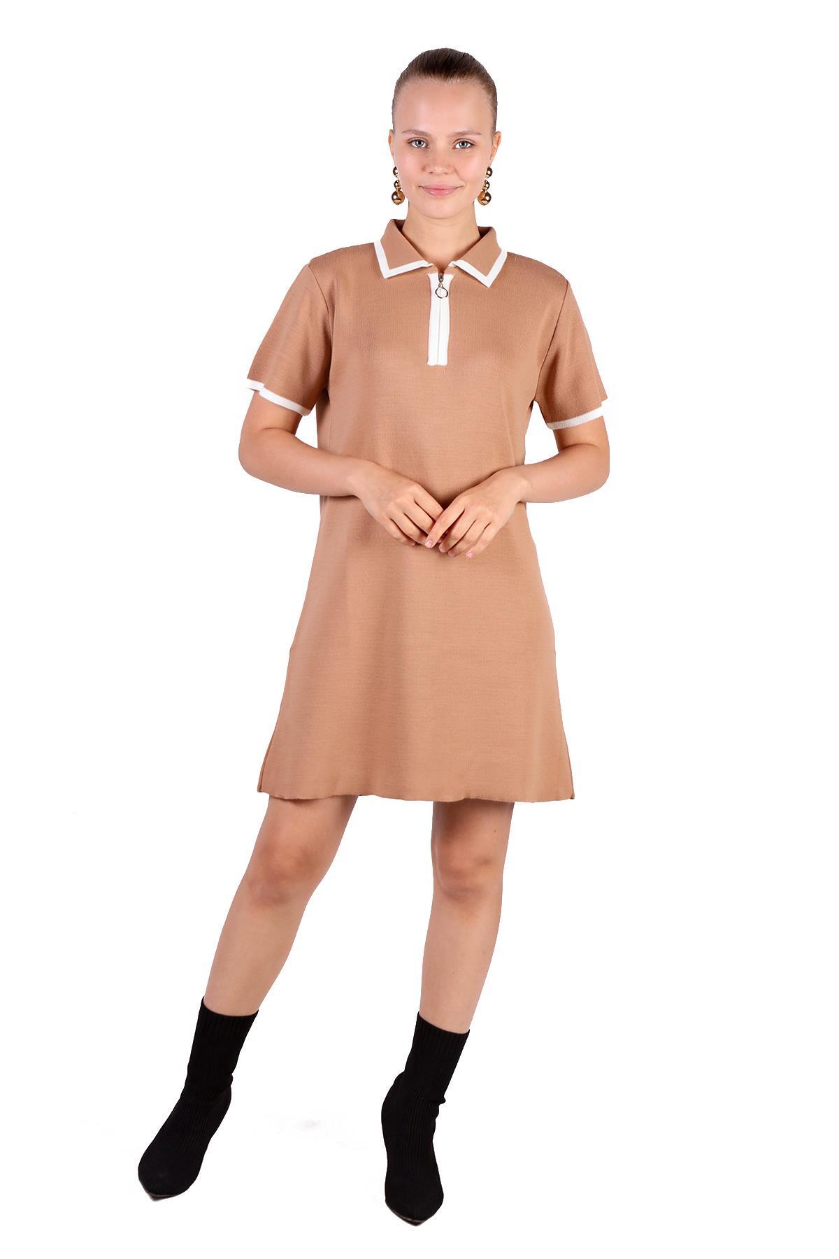 Camel Fermuar Detay Kısa Kol Elbise 24150