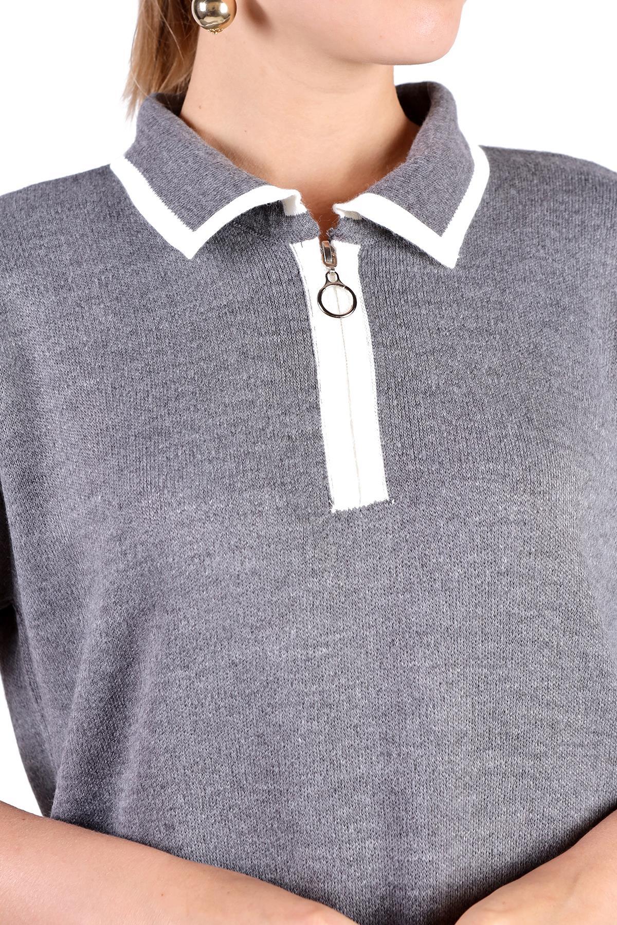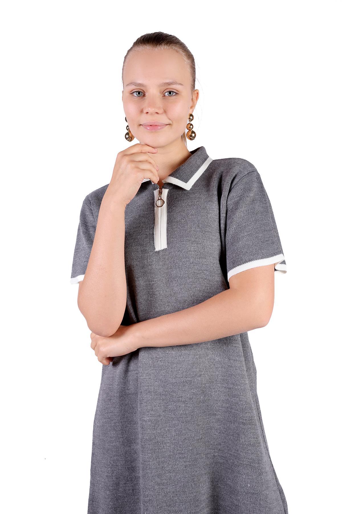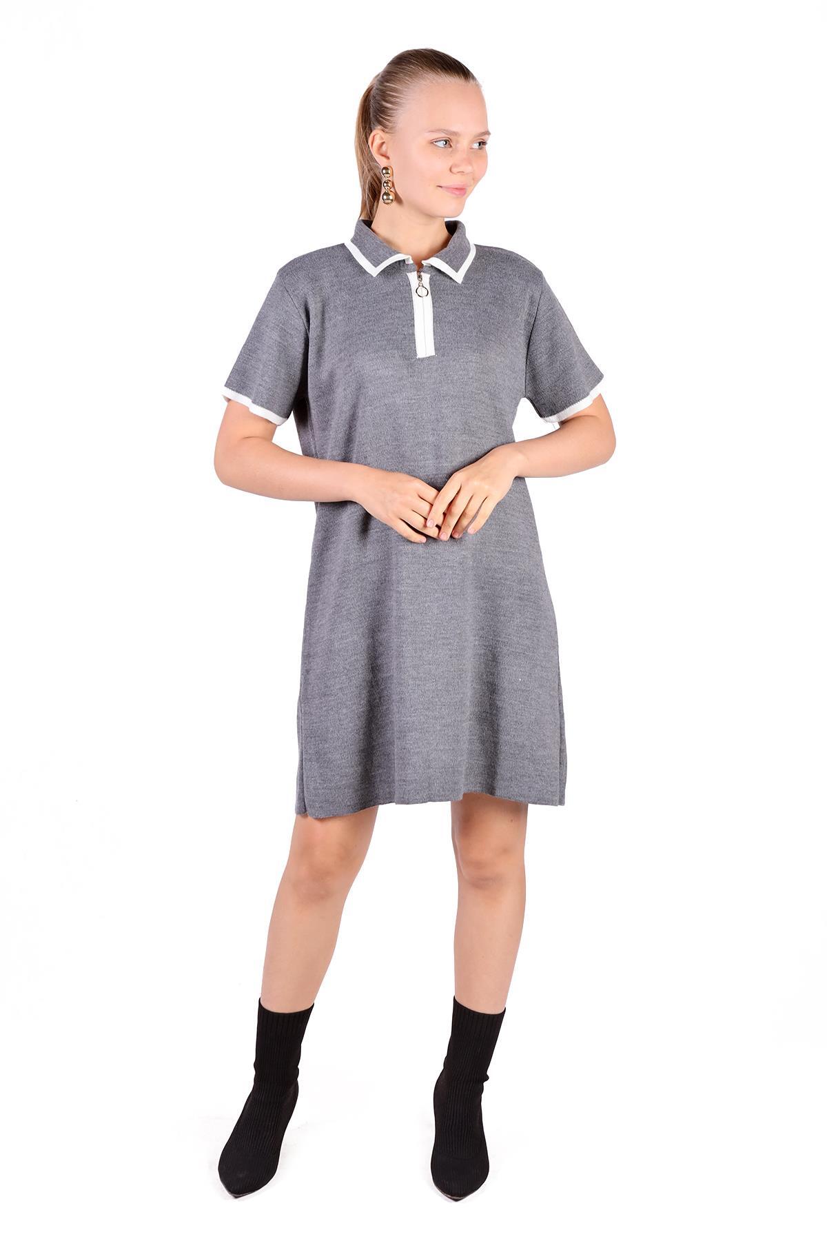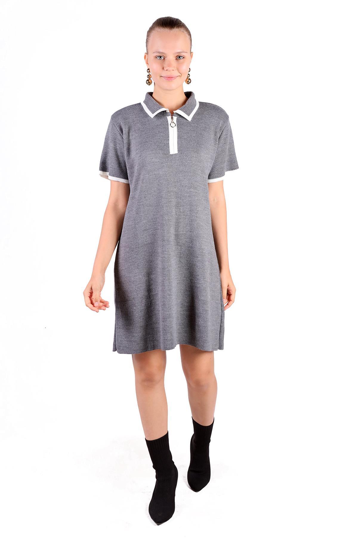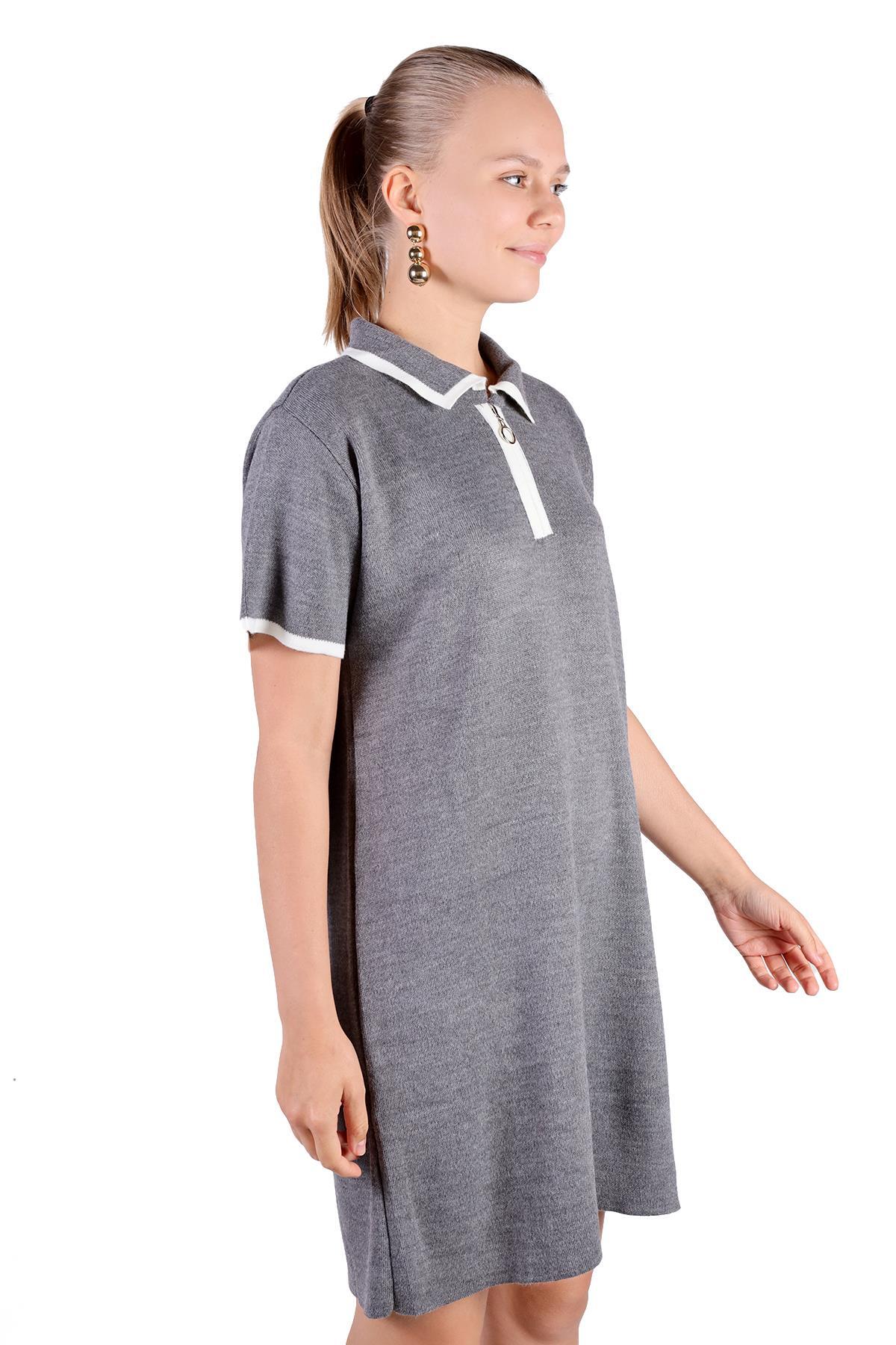 Gri Fermuar Detay Kısa Kol Elbise 24150