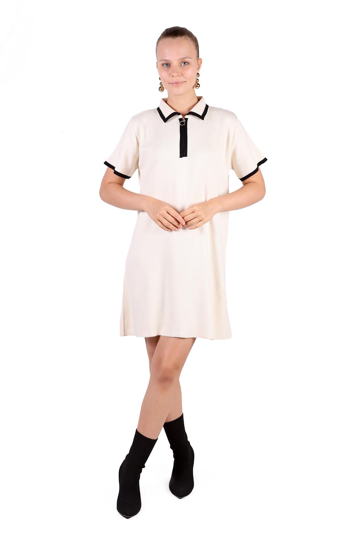 Taş Fermuar Detay Kısa Kol Elbise 24150