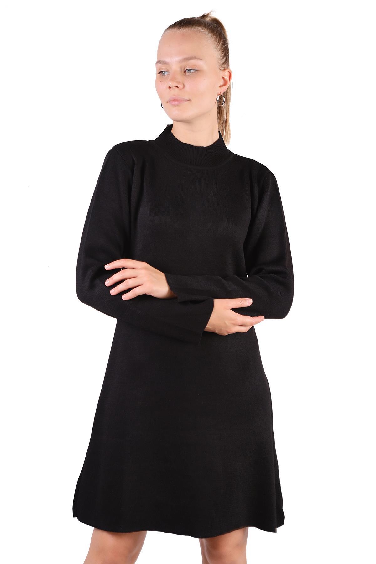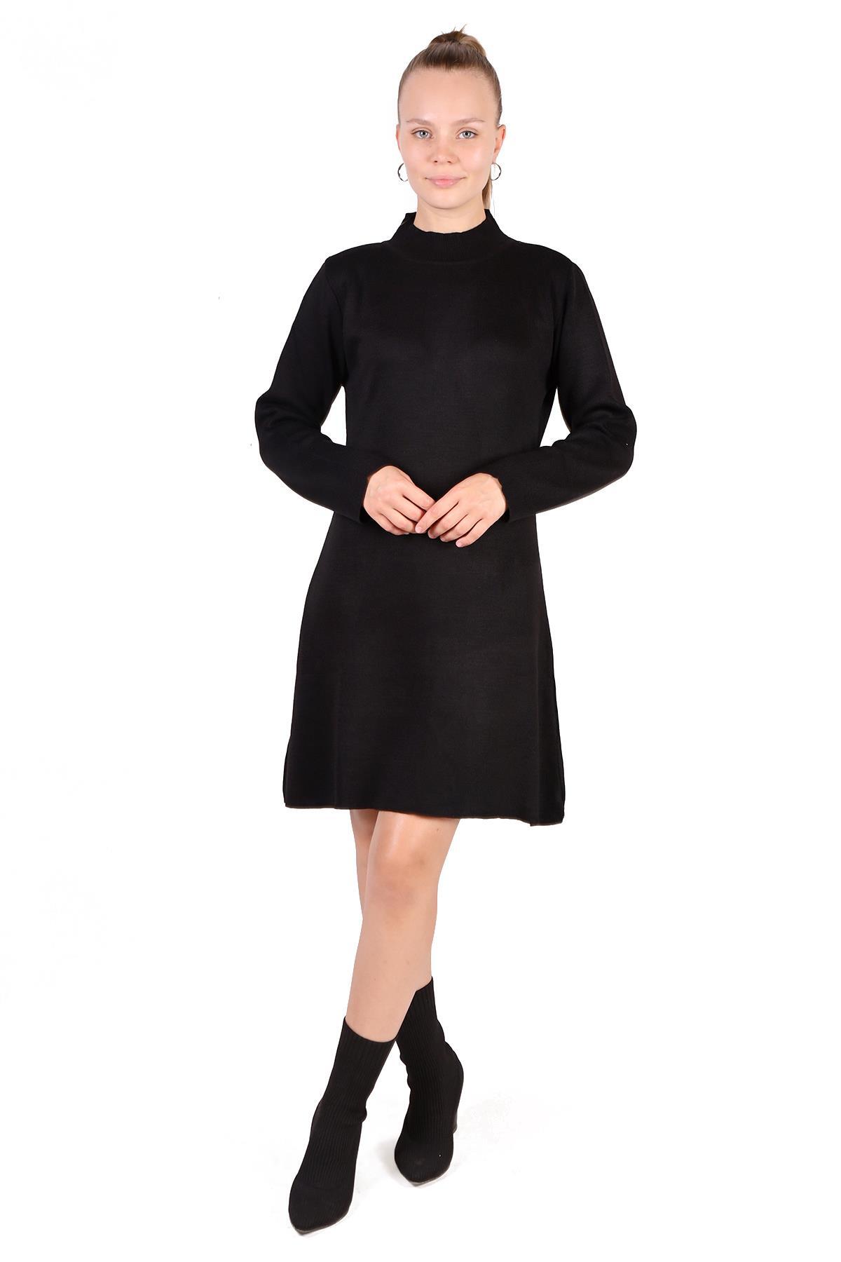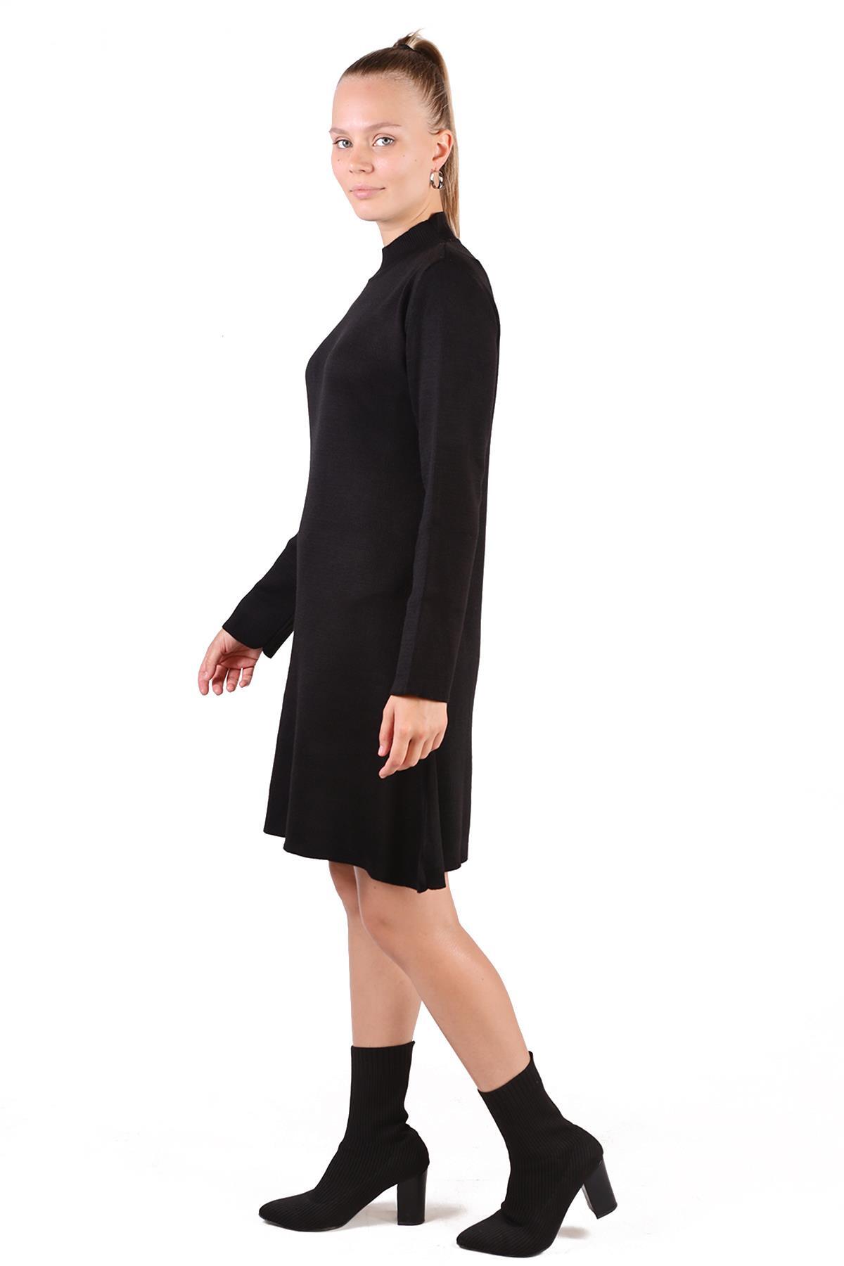 Siyah Yarım Boğaz Kısa Triko Elbise 24151