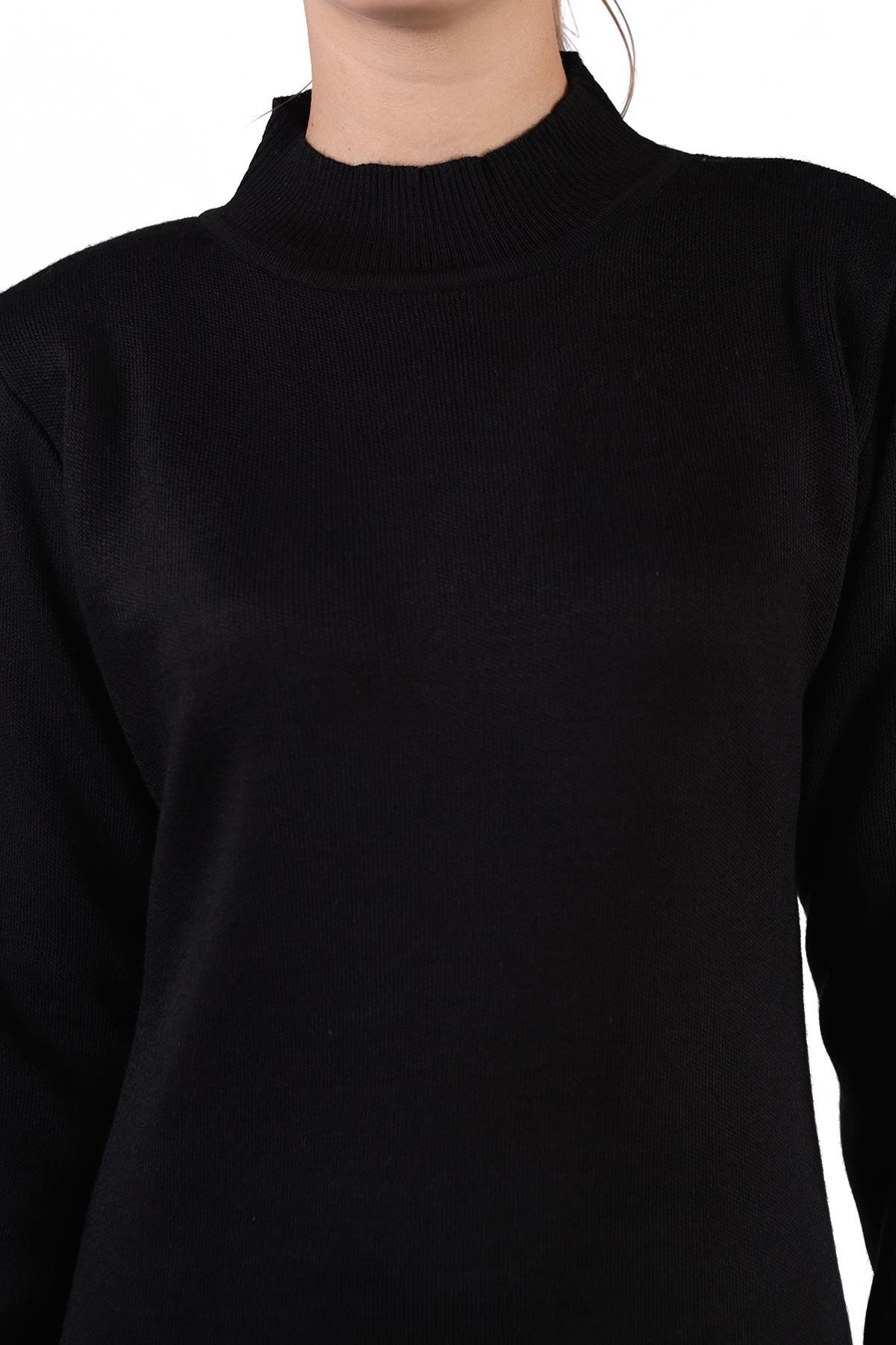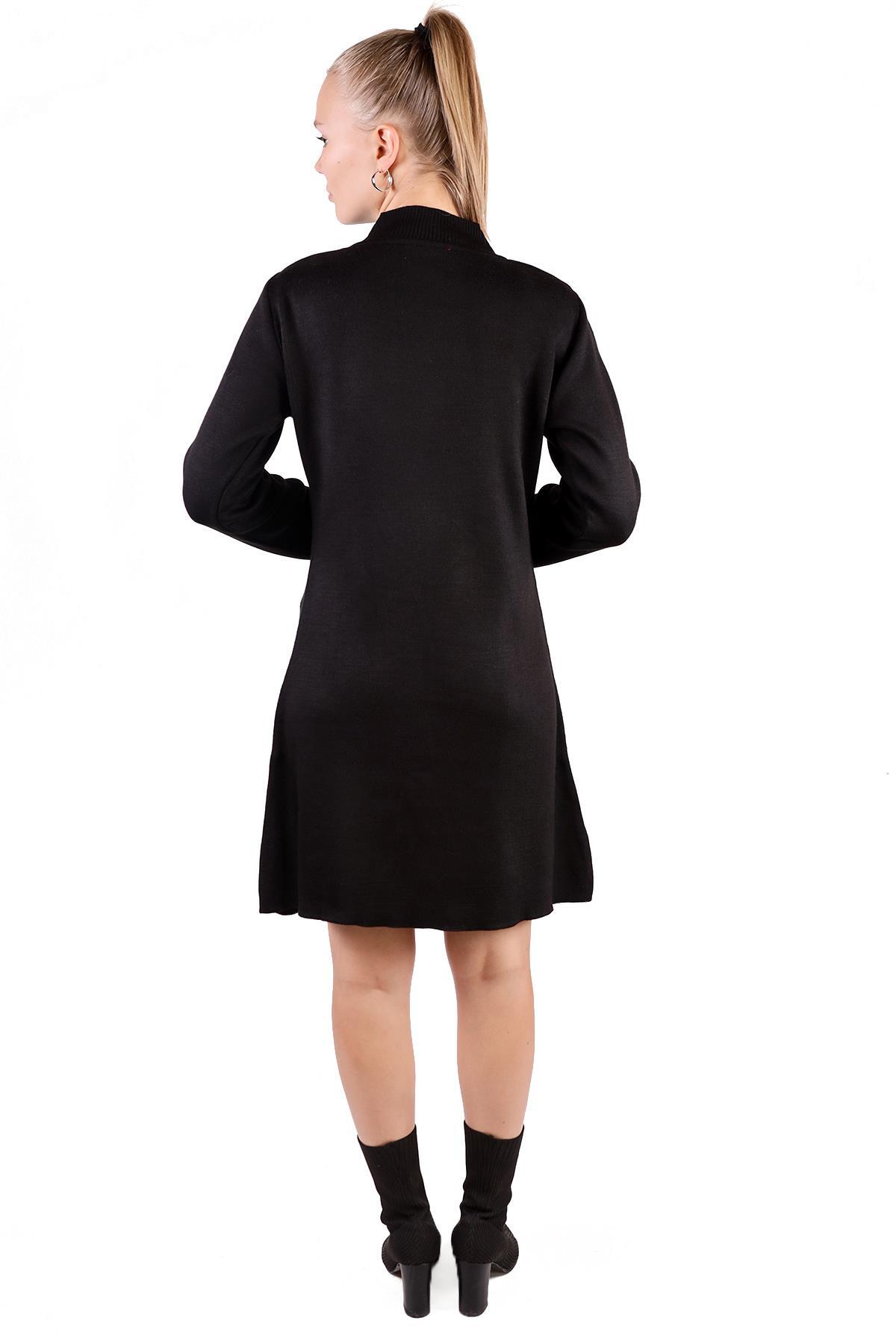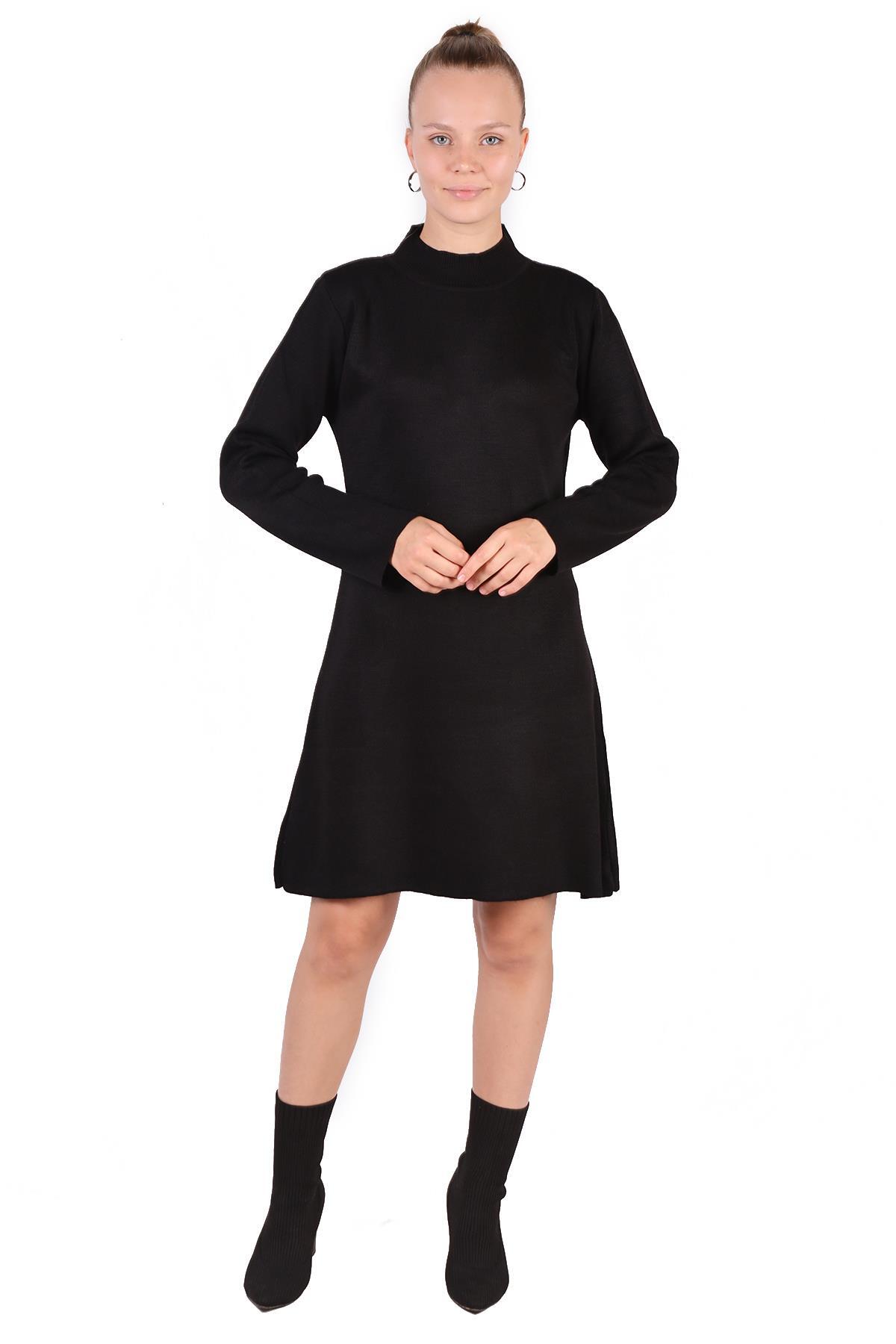 Siyah Yarım Boğaz Kısa Triko Elbise 24151