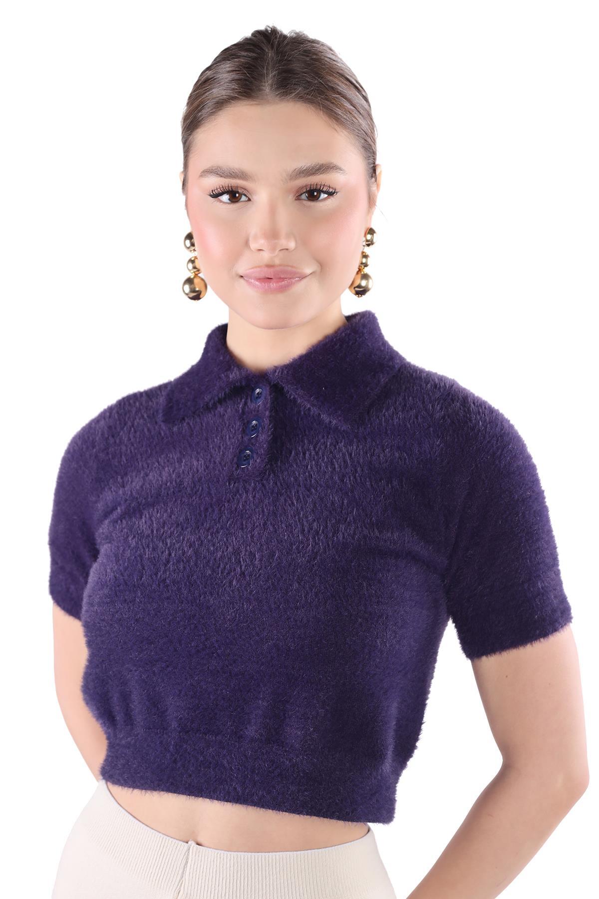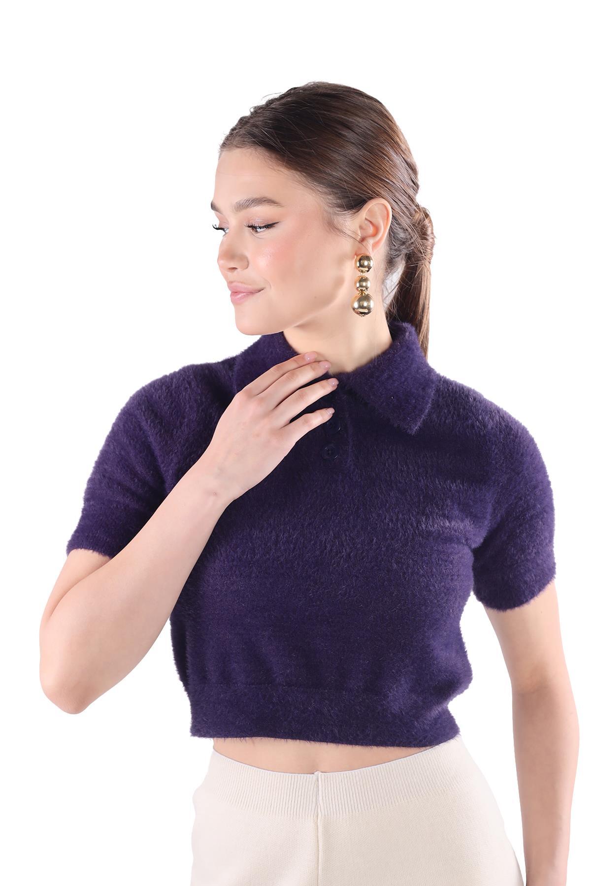 Laci Yaka Düğme Detay Kısa Kol Kazak 24154