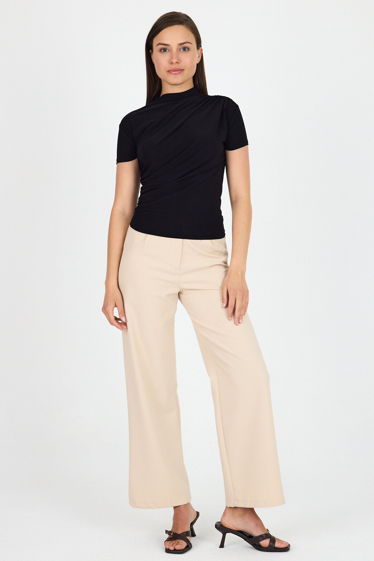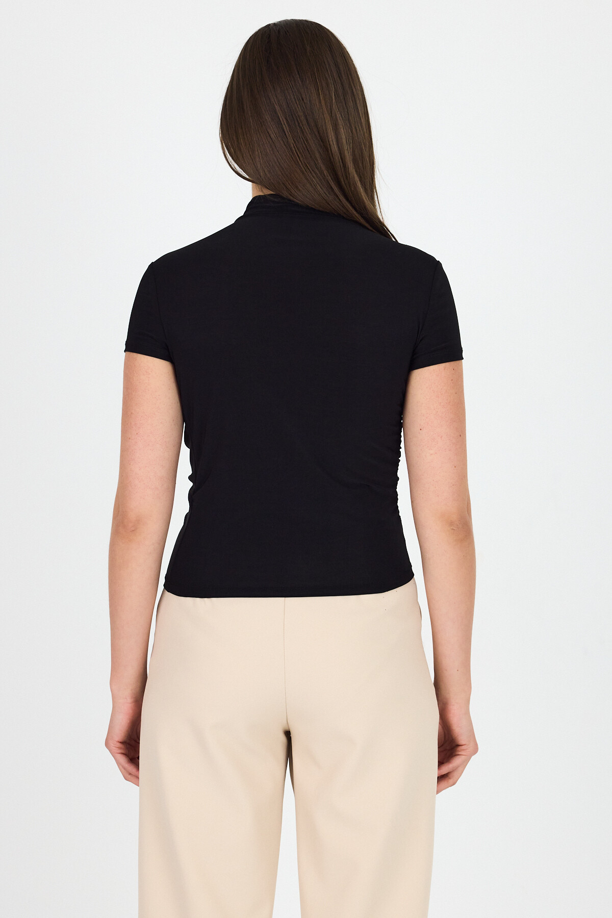 Siyah Kısa Kol Büzgülü Sandy Bluz 2417