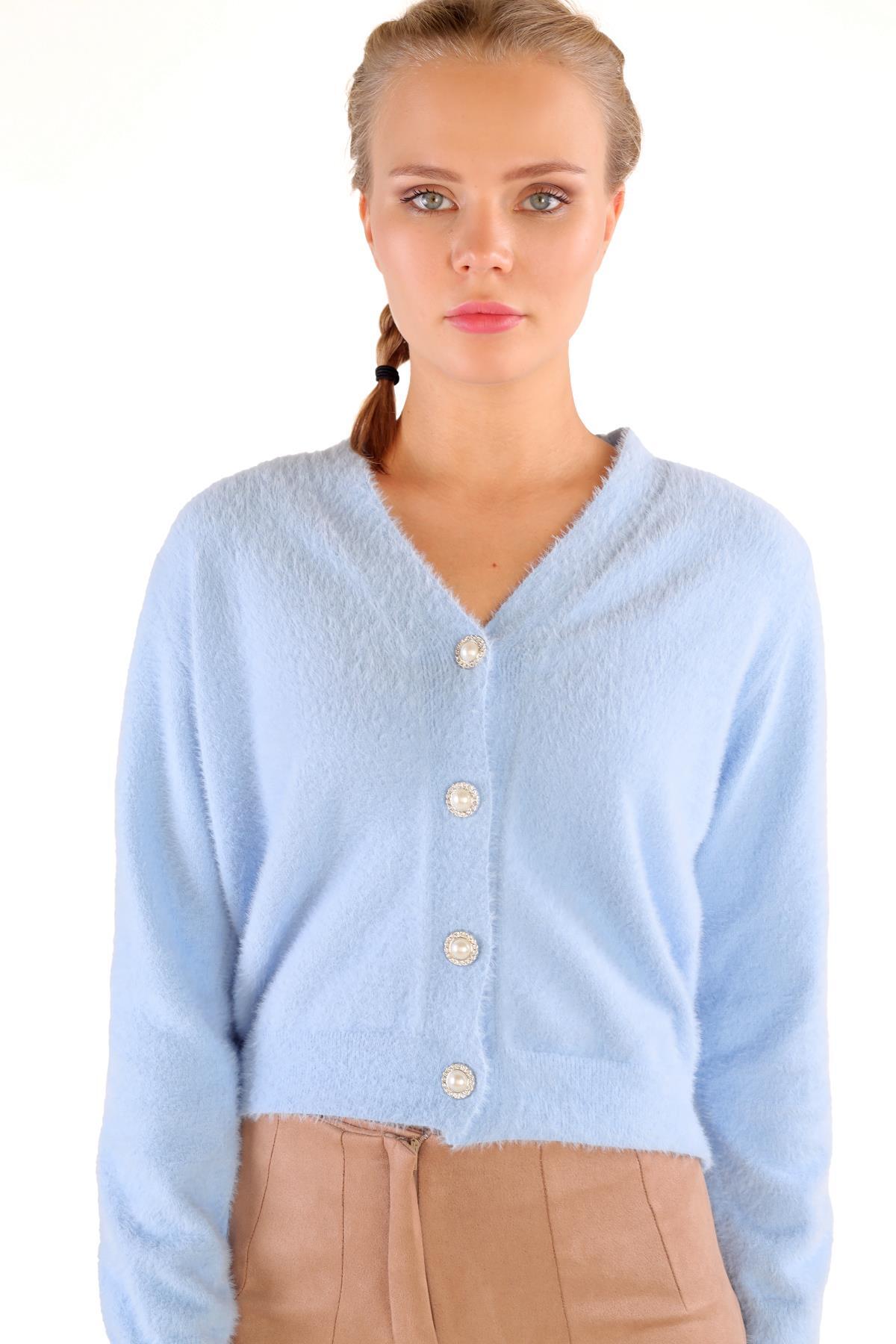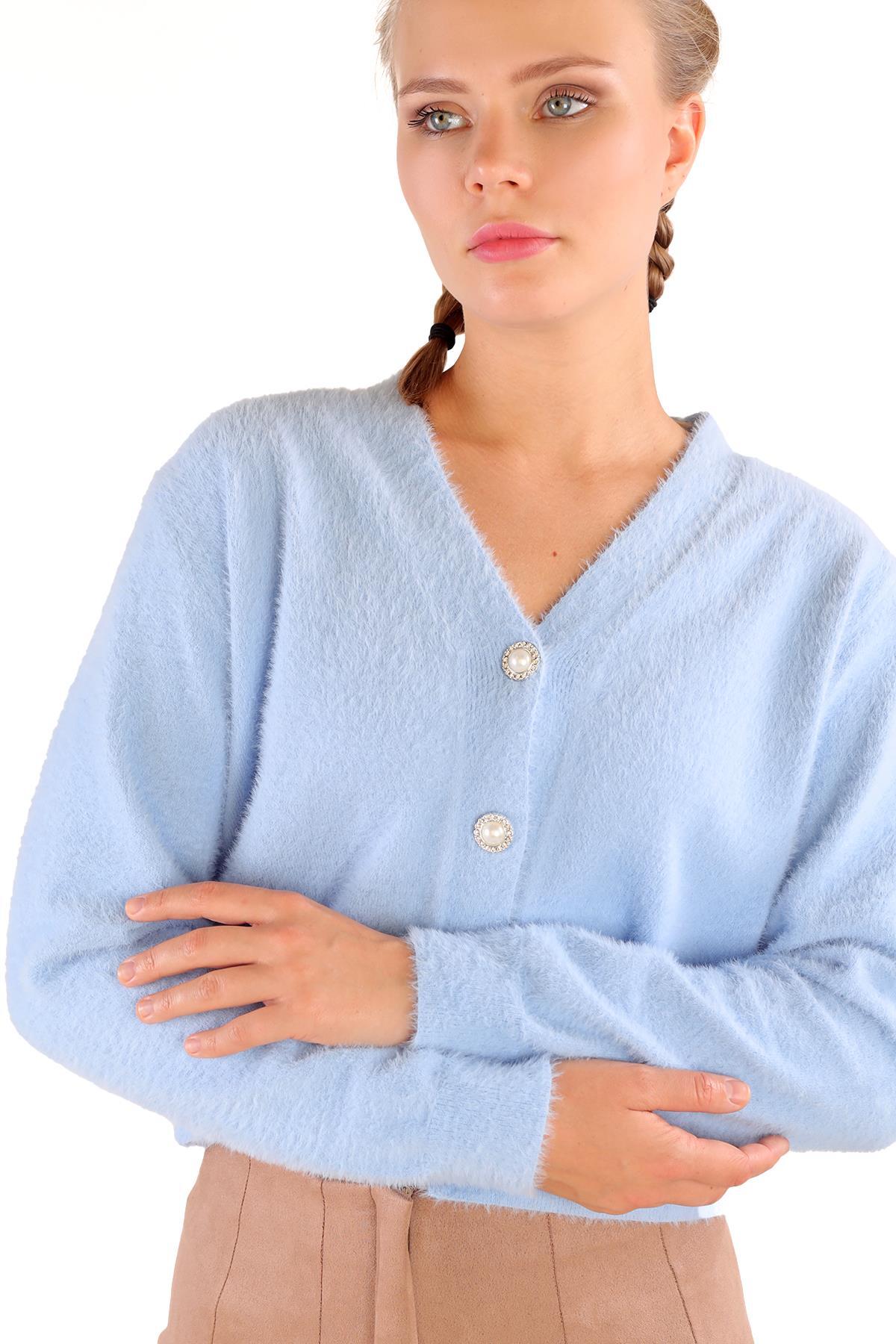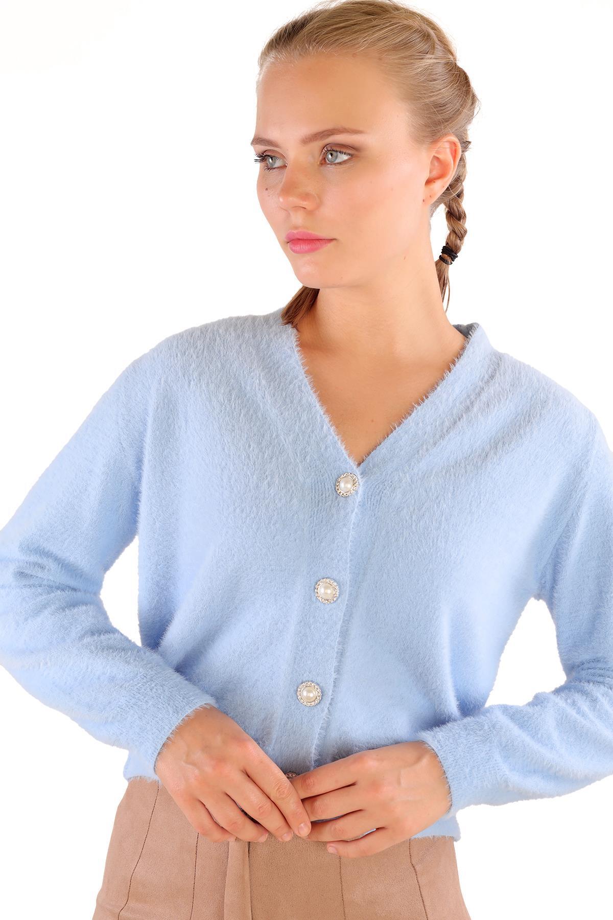 Bebe Mavi Kadın Yumoş Dokulu Düğmeli Triko Hırka 2241