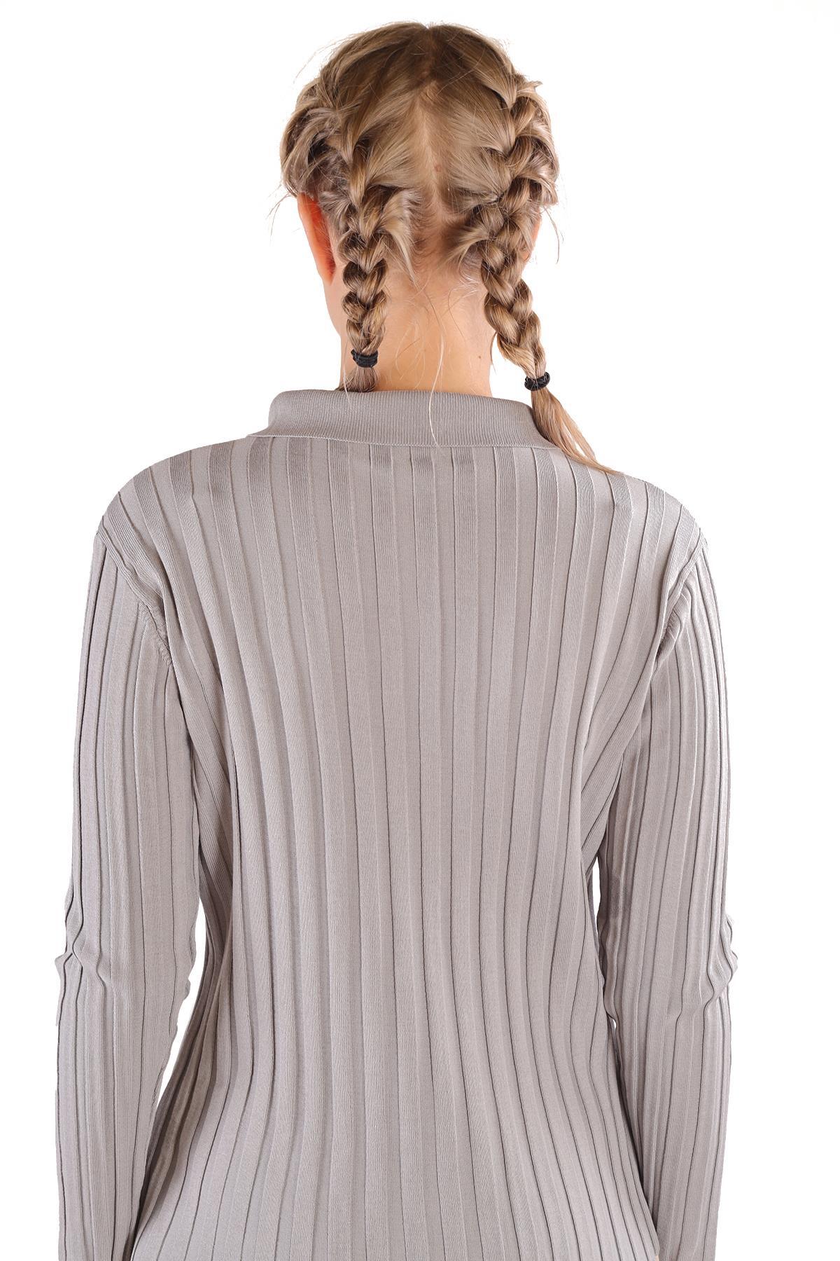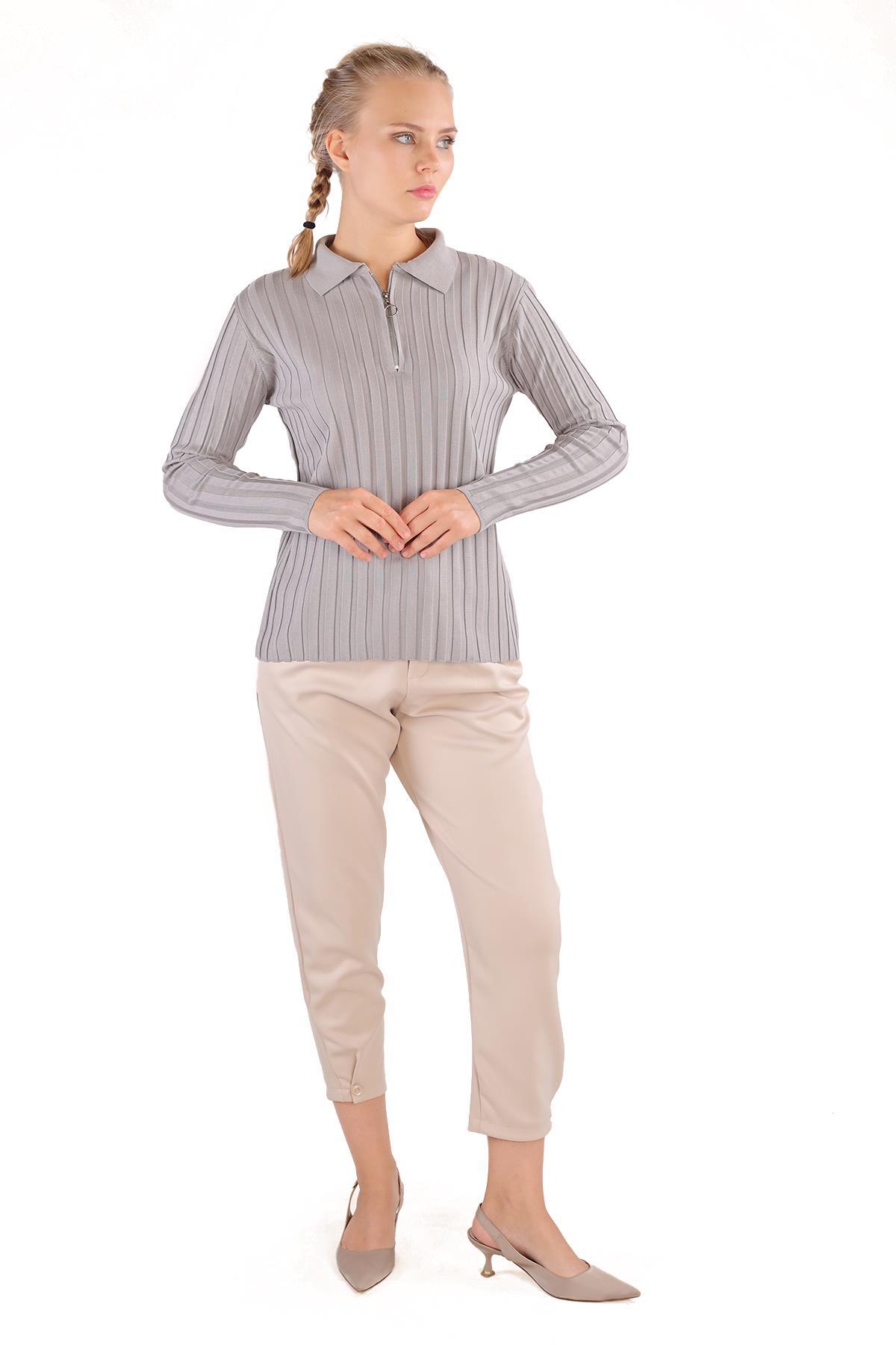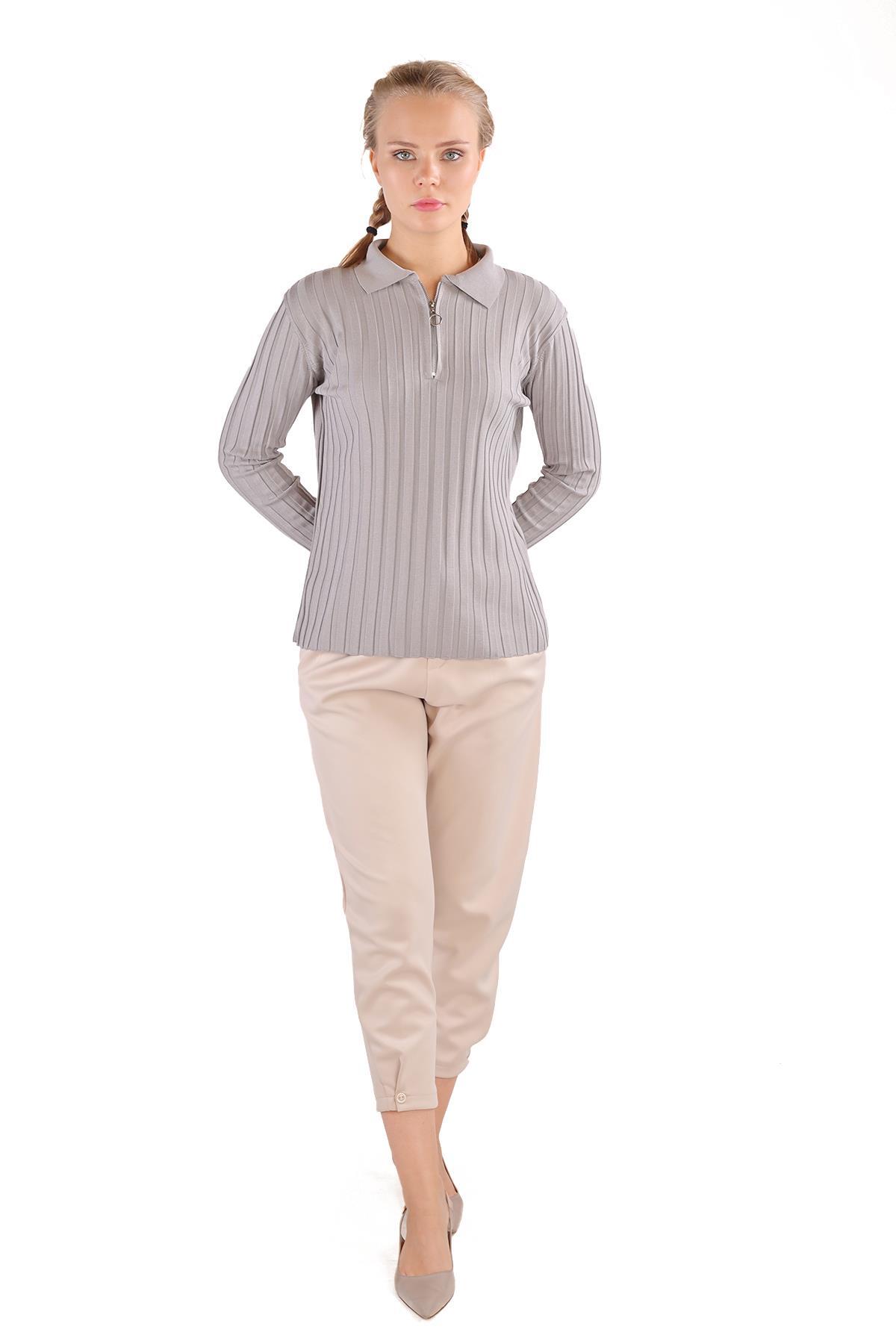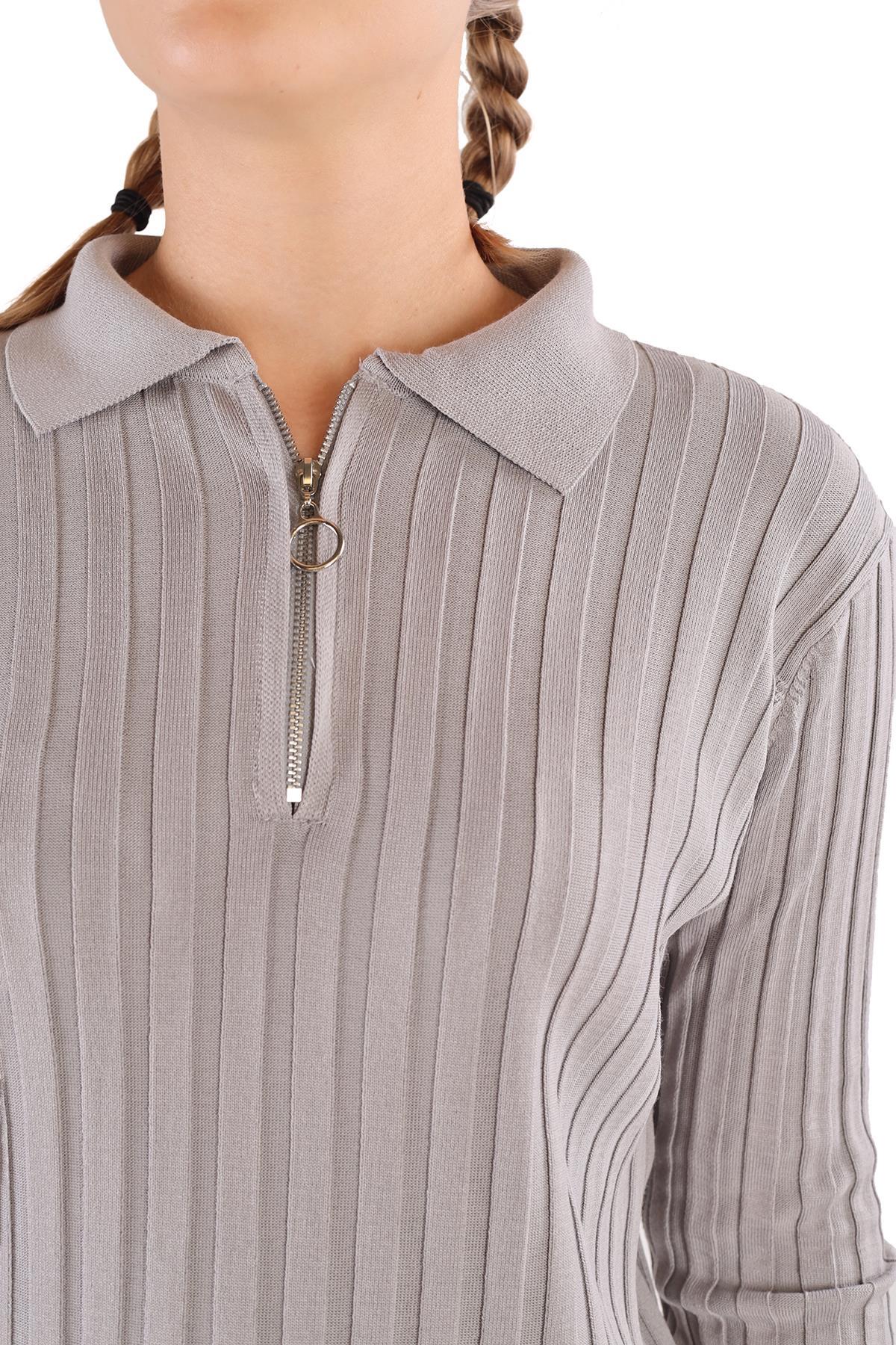 Gri Fermuar Detay Fitilli Kazak 24199