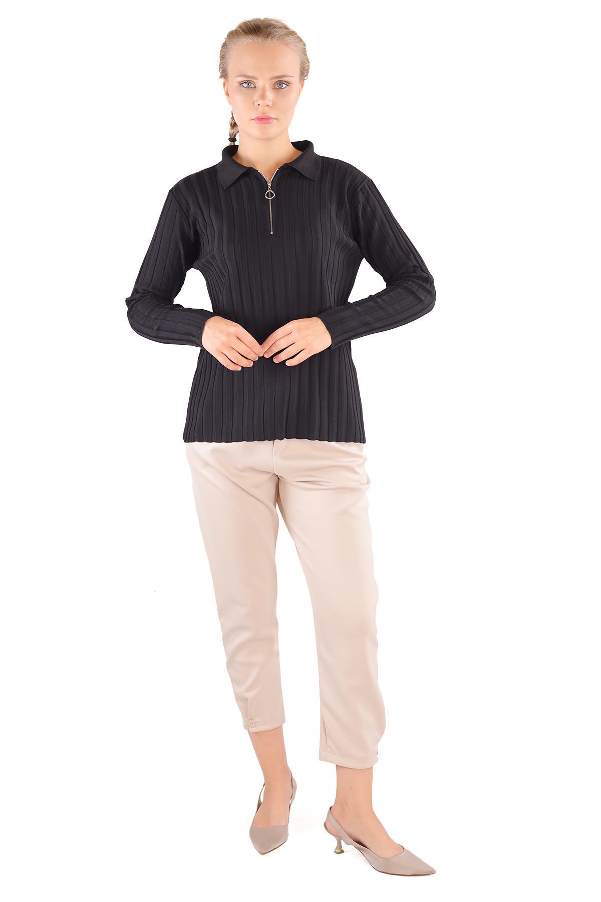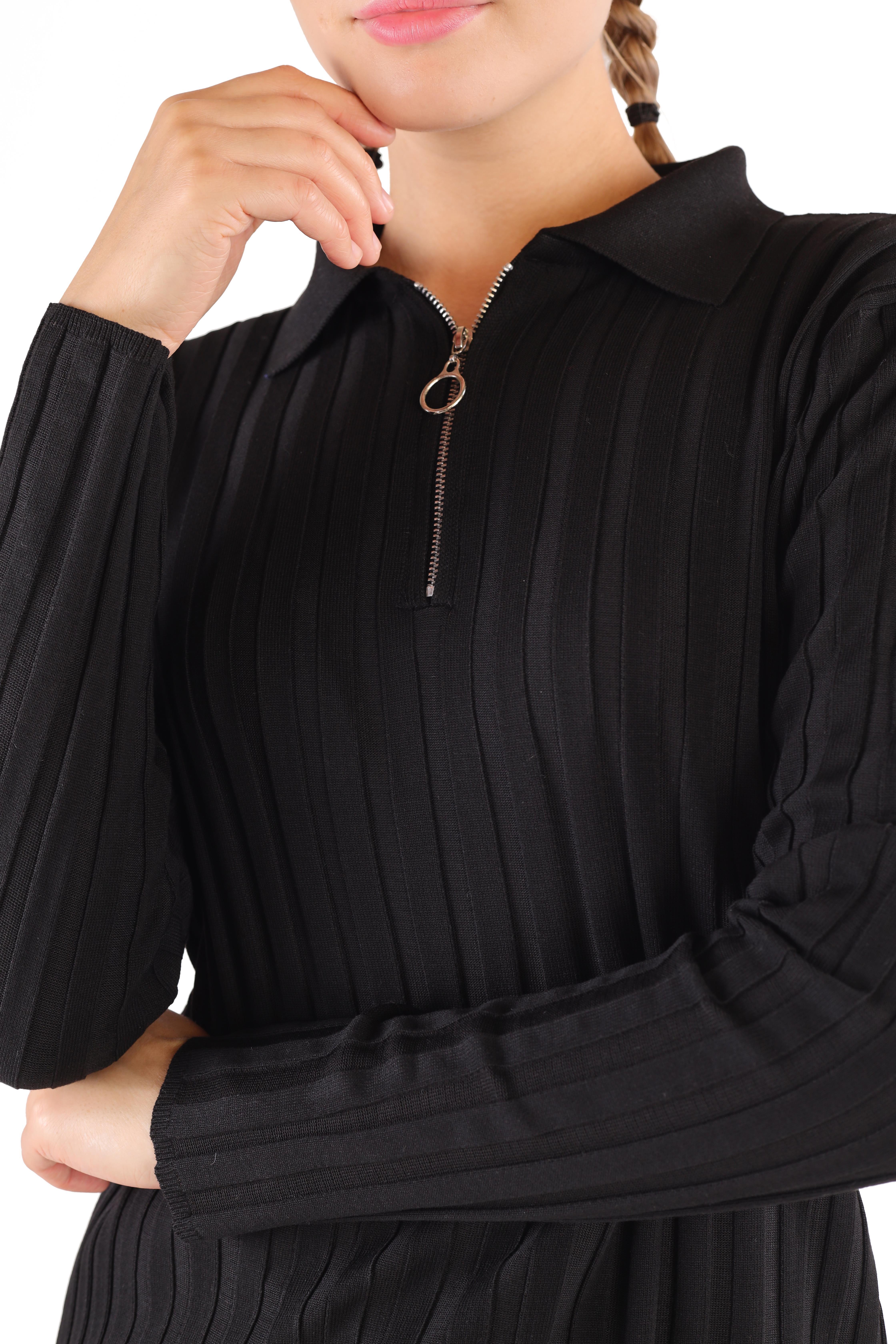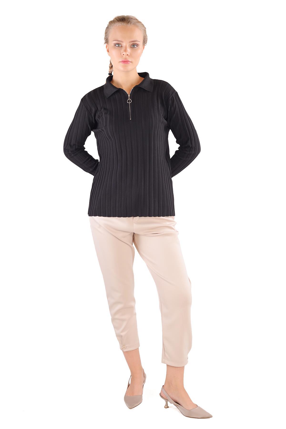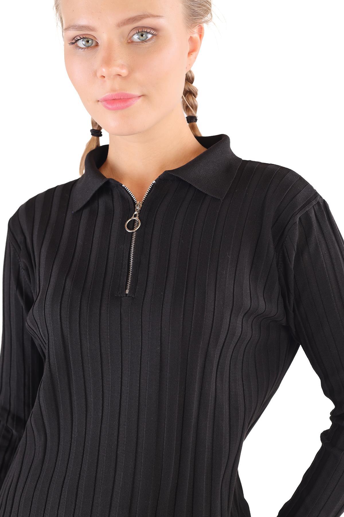 Siyah Fermuar Detay Fitilli Kazak 24199